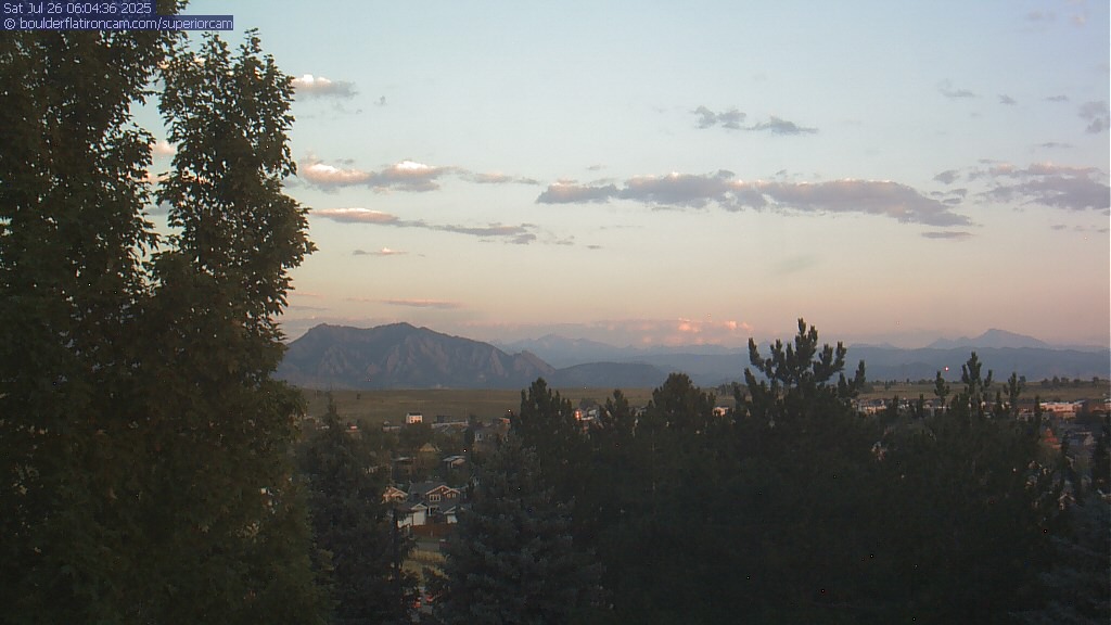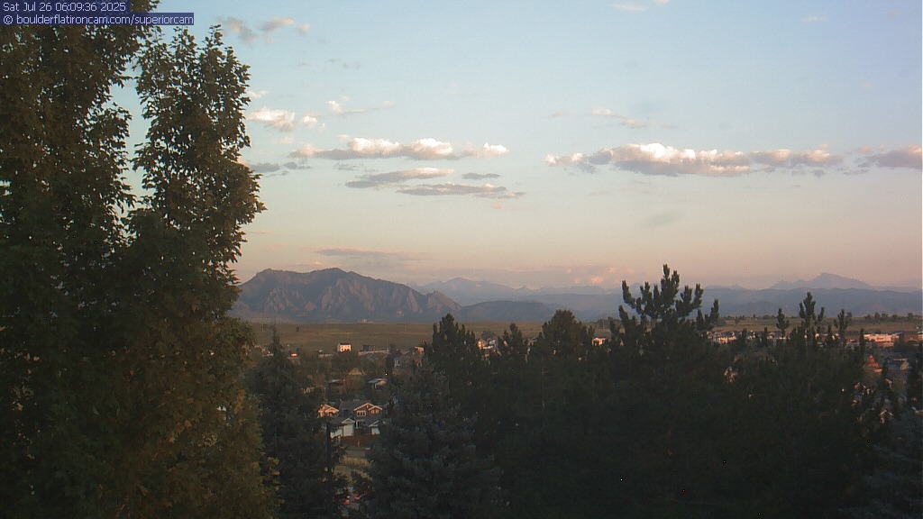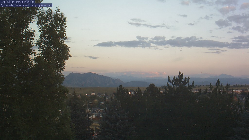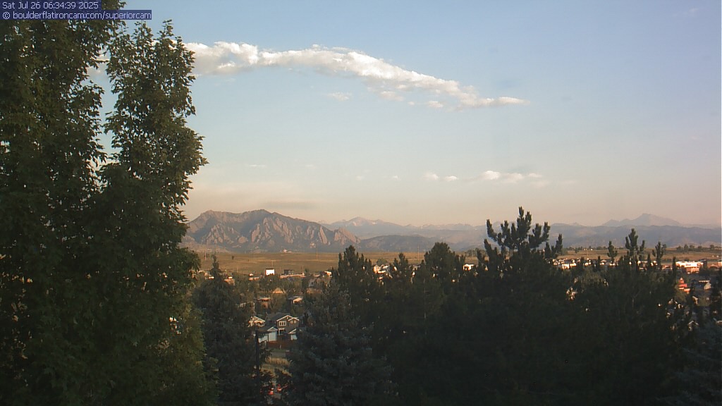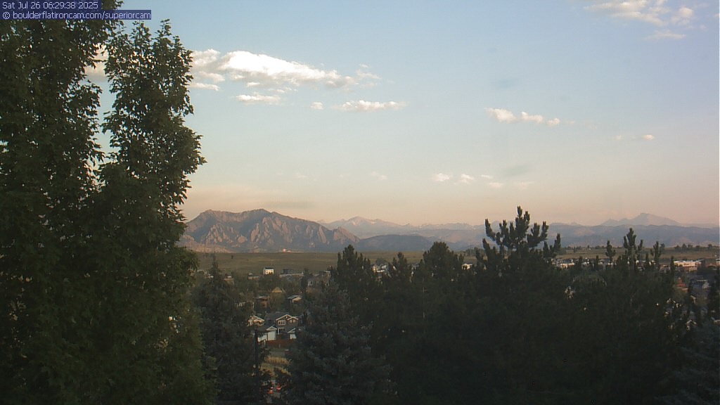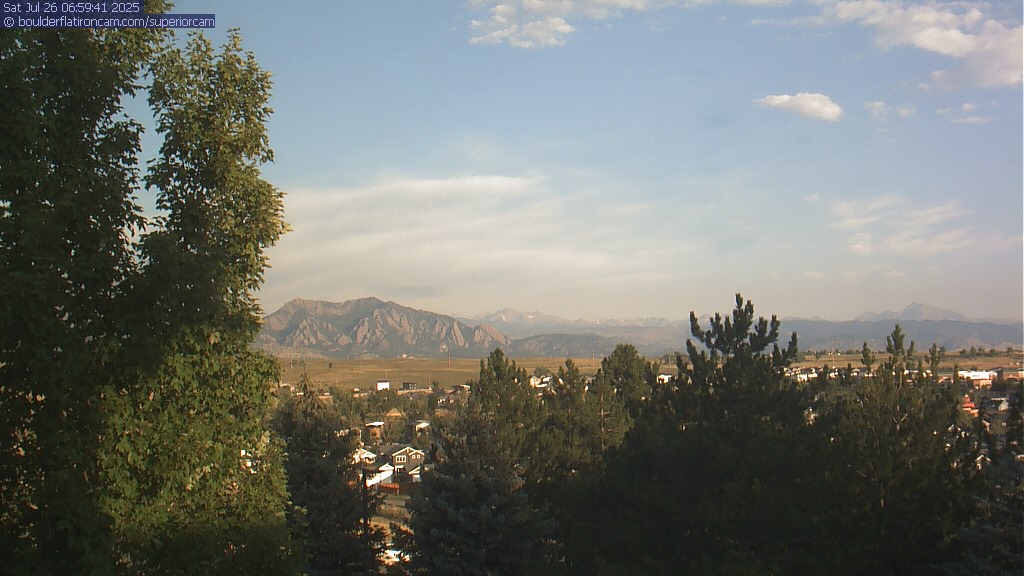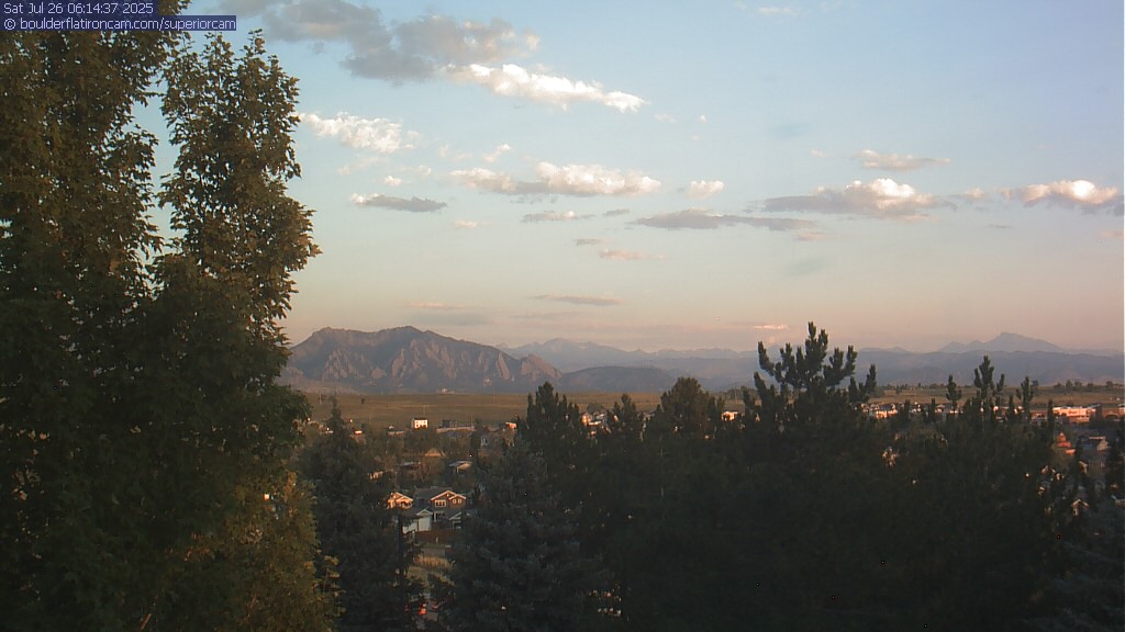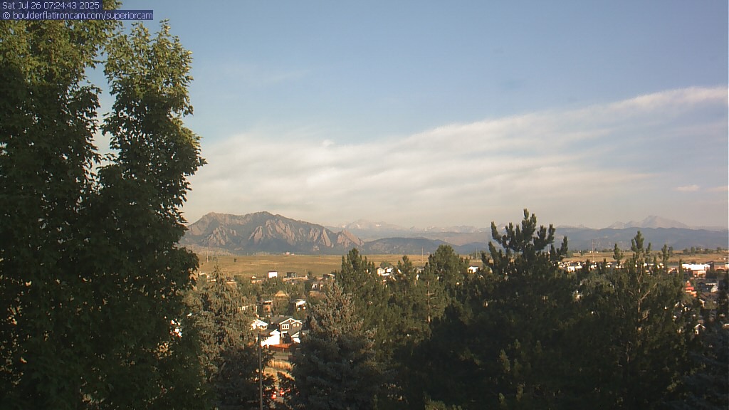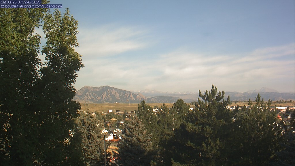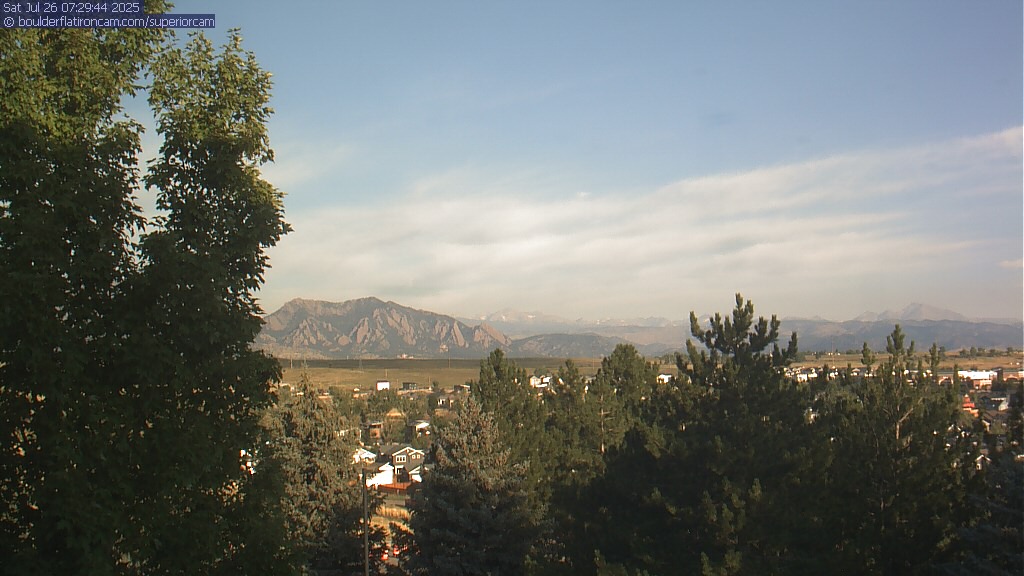 The Superior cam has a great view to the northwest over Boulder, the Flatirons, Indian Peaks and Long’s Peak.   The Coal Creek trail is visible in the foreground with old town Superior.  Thanks to Aweida Venture Partners management for the great view.