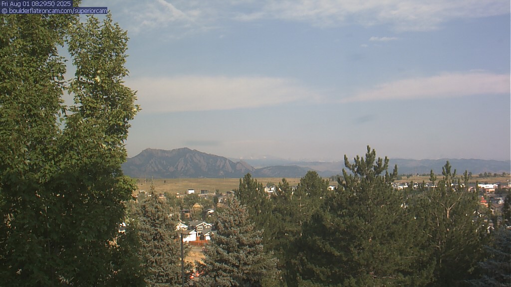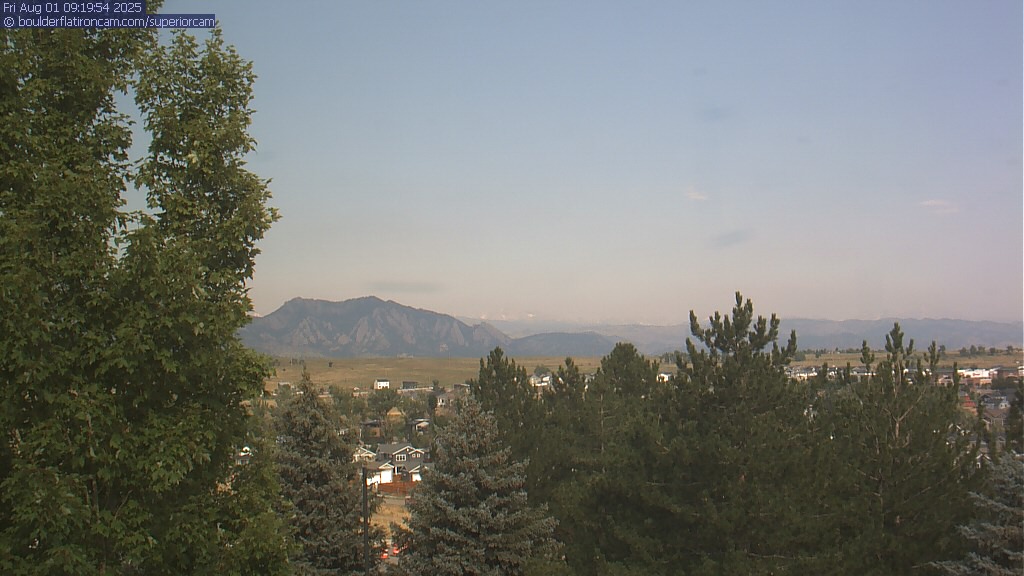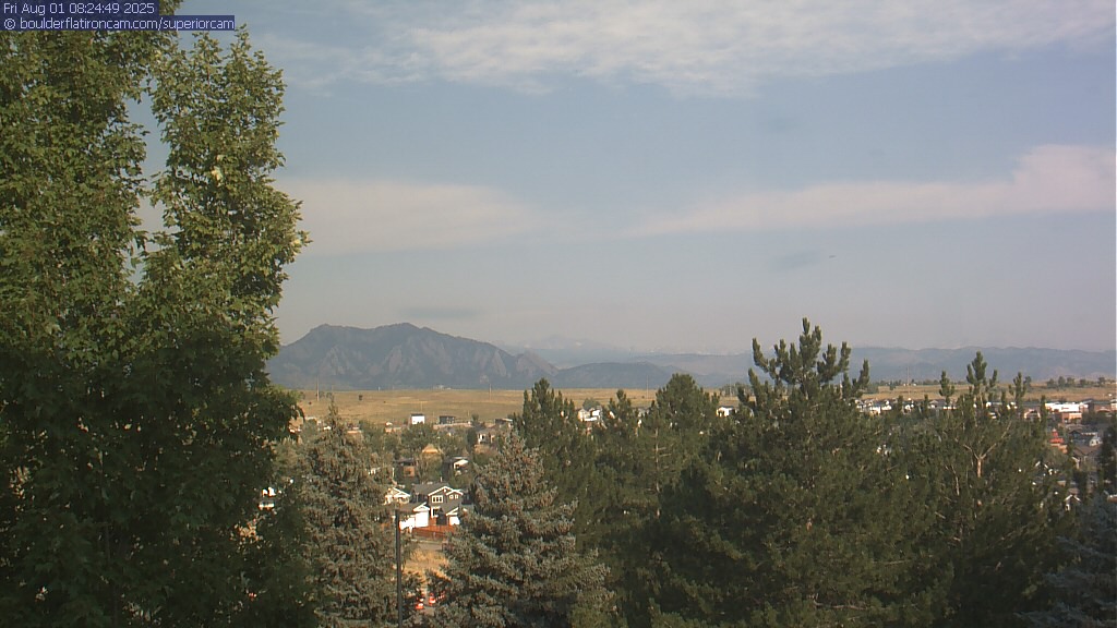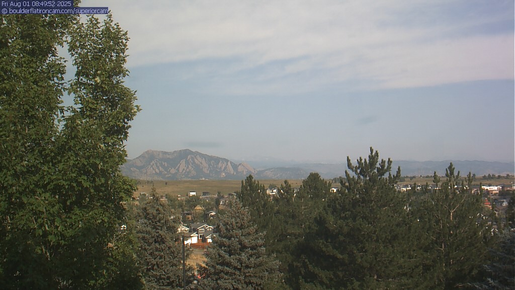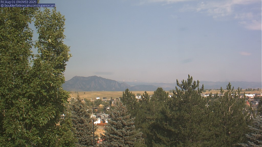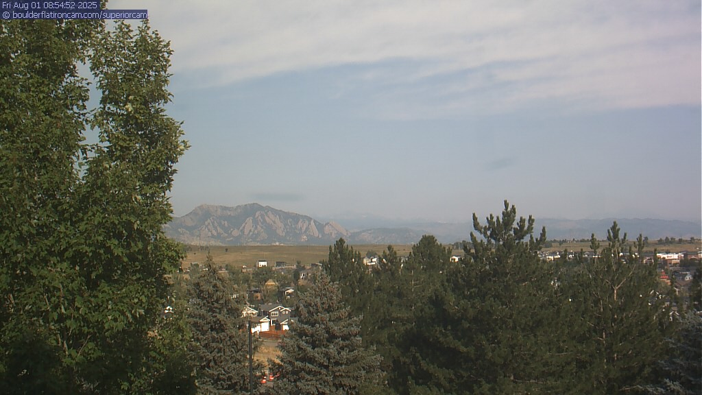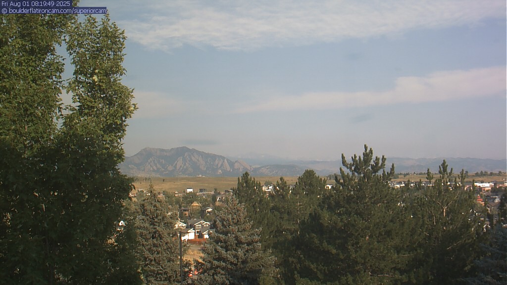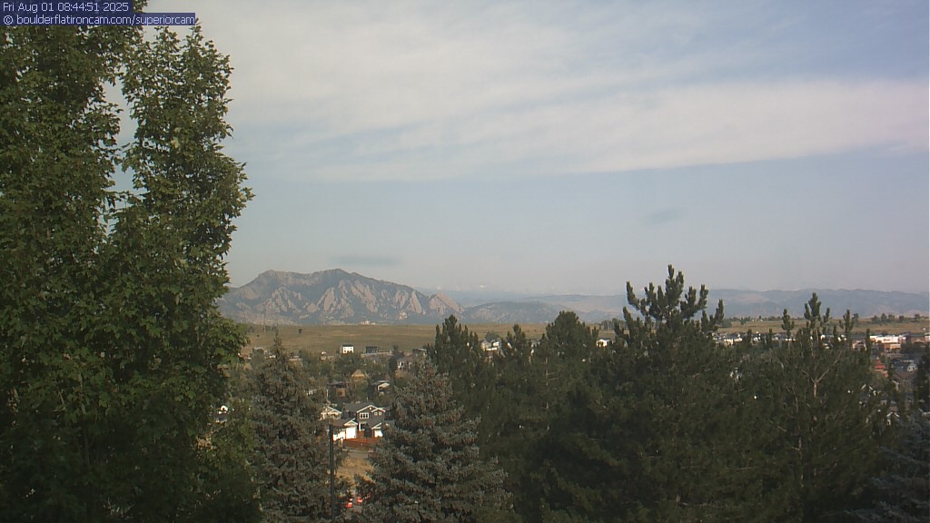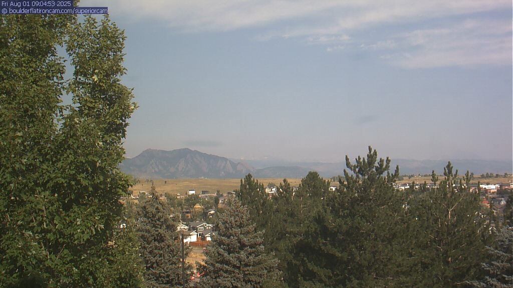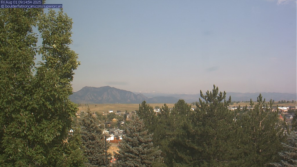 The Superior cam has a great view to the northwest over Boulder, the Flatirons, Indian Peaks and Long’s Peak.   The Coal Creek trail is visible in the foreground with old town Superior.  Thanks to Aweida Venture Partners management for the great view.