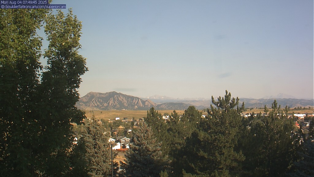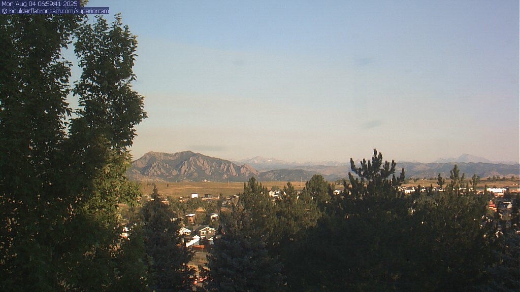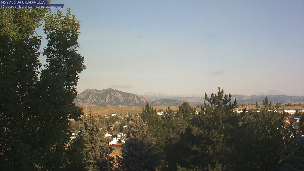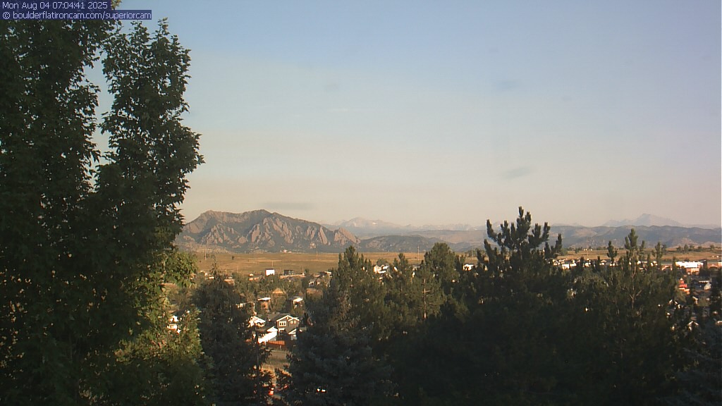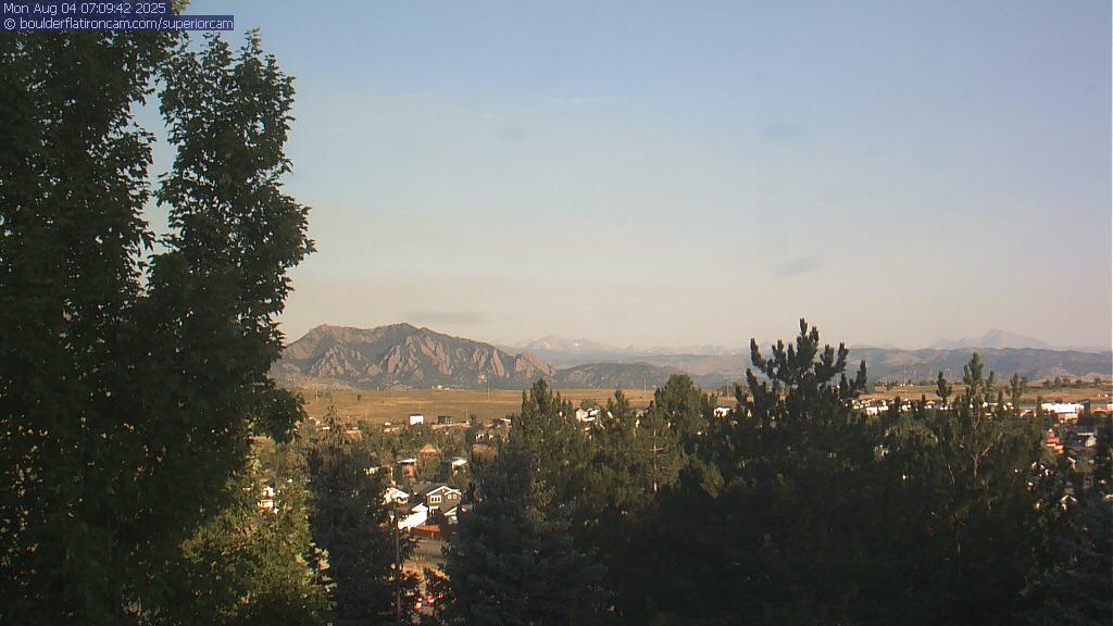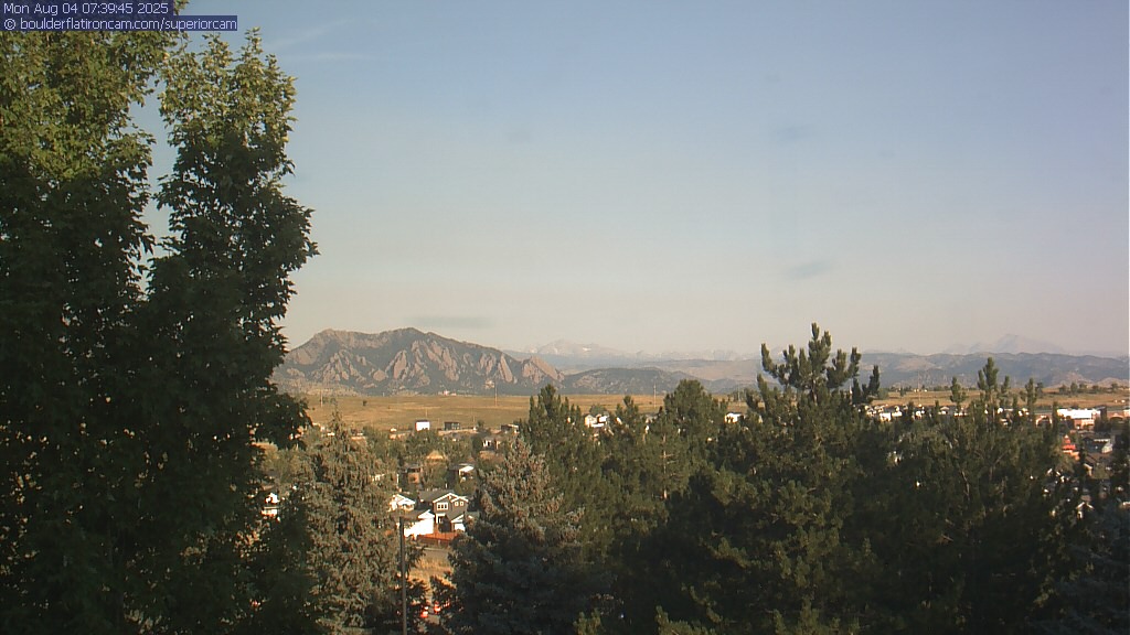 The Superior cam has a great view to the northwest over Boulder, the Flatirons, Indian Peaks and Long’s Peak.   The Coal Creek trail is visible in the foreground with old town Superior.  Thanks to Aweida Venture Partners management for the great view.
