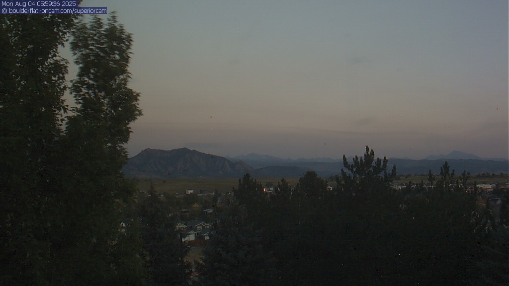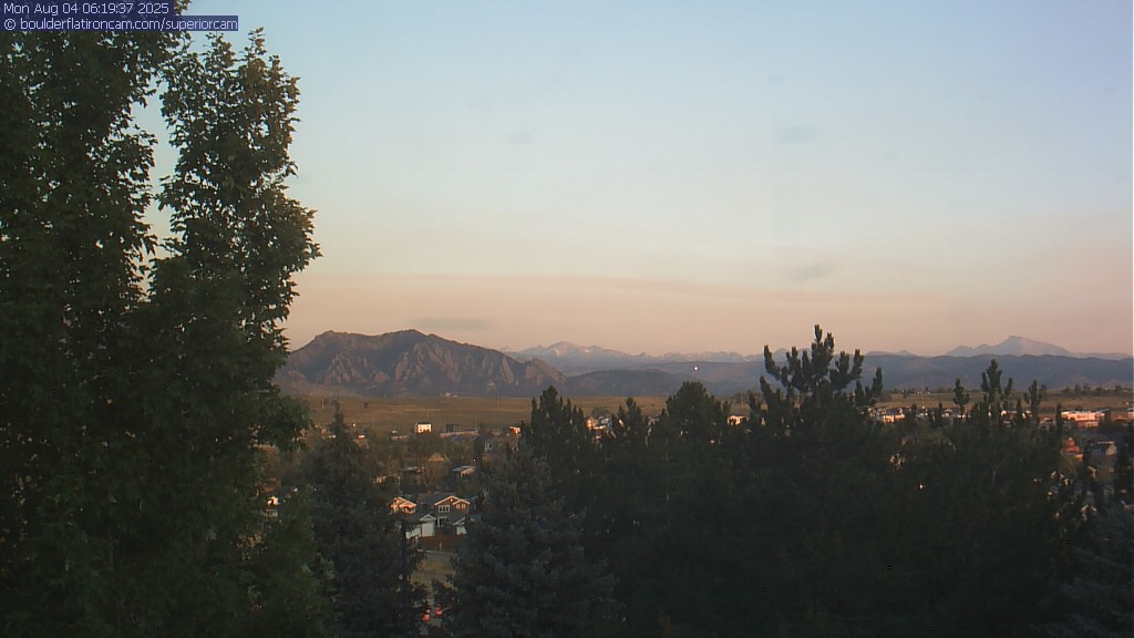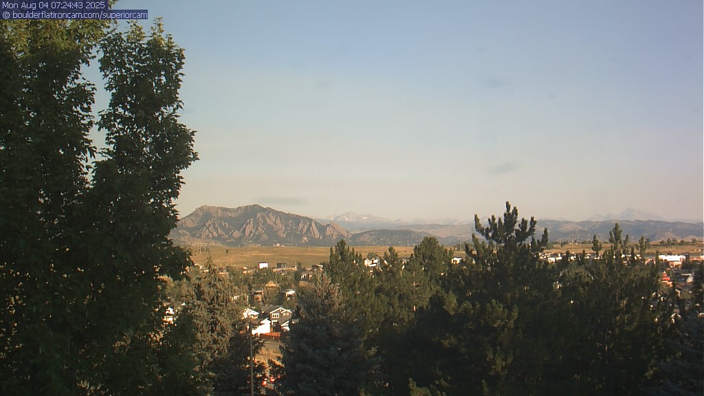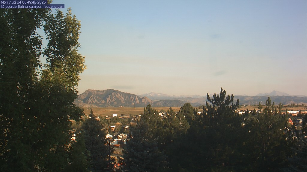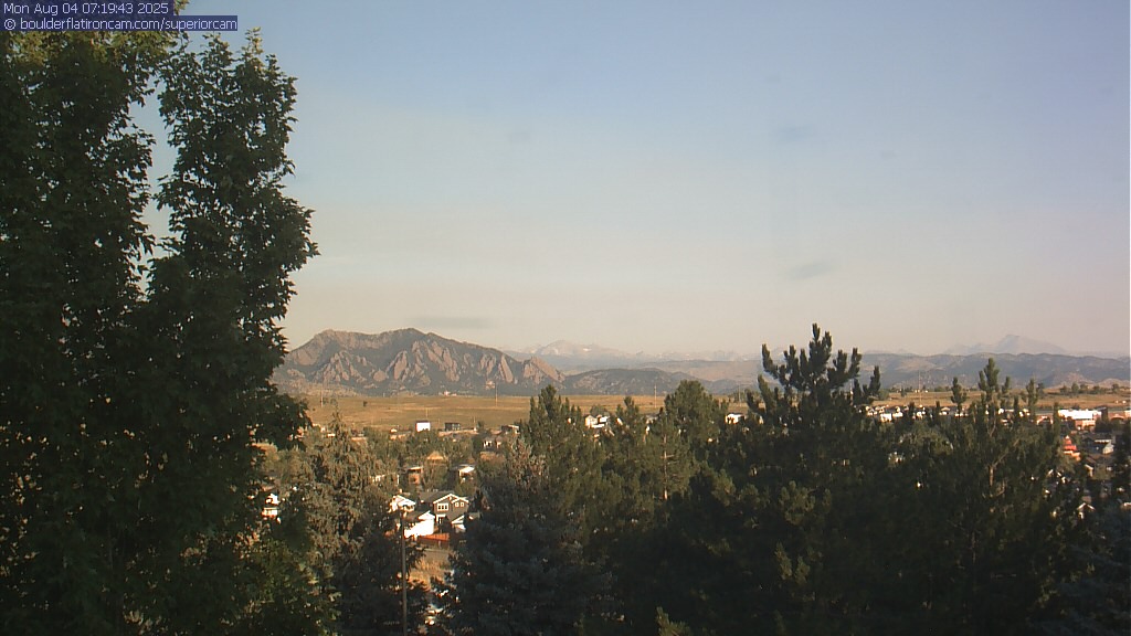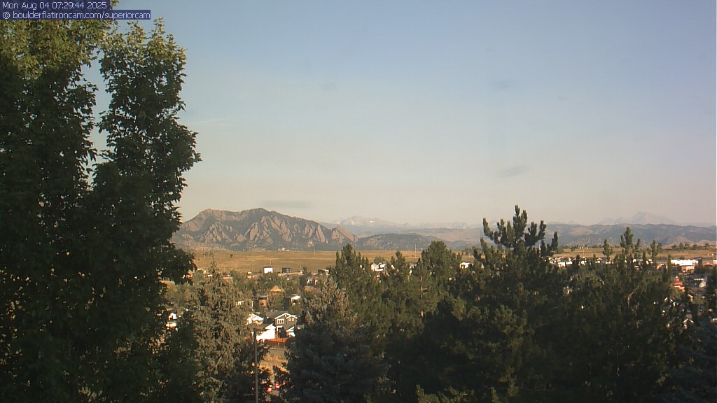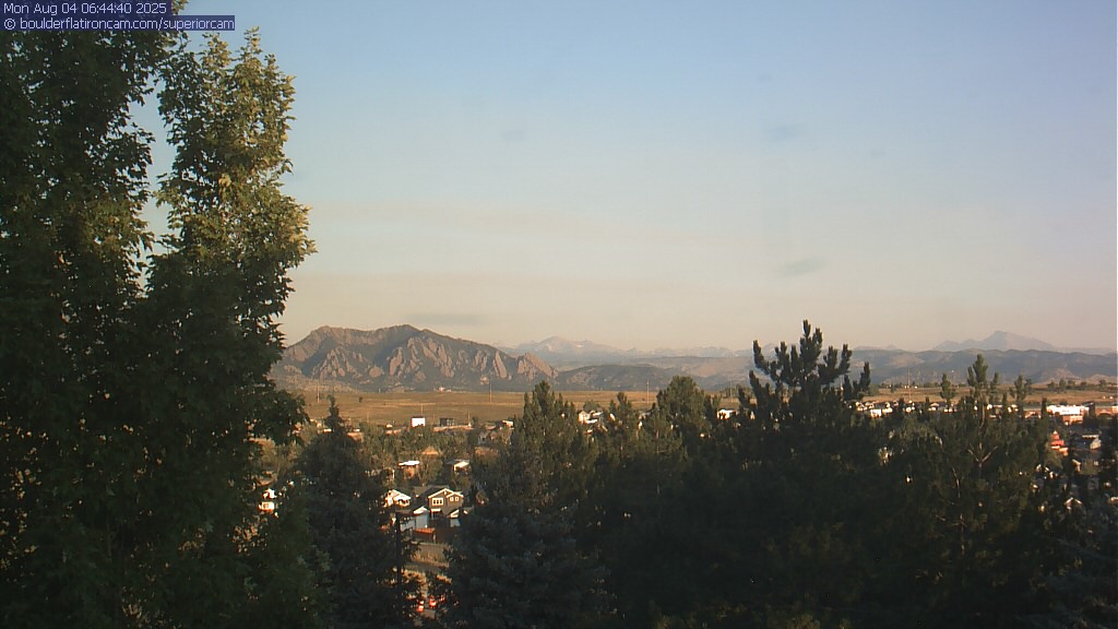 The Superior cam has a great view to the northwest over Boulder, the Flatirons, Indian Peaks and Long’s Peak.   The Coal Creek trail is visible in the foreground with old town Superior.  Thanks to Aweida Venture Partners management for the great view.