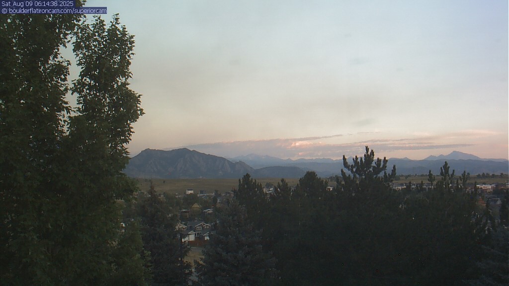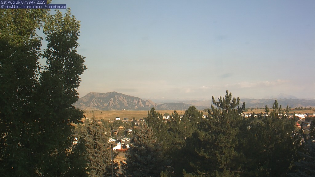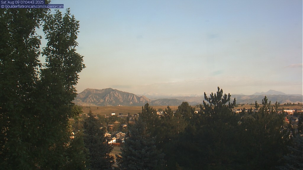 The Superior cam has a great view to the northwest over Boulder, the Flatirons, Indian Peaks and Long’s Peak.   The Coal Creek trail is visible in the foreground with old town Superior.  Thanks to Aweida Venture Partners management for the great view.