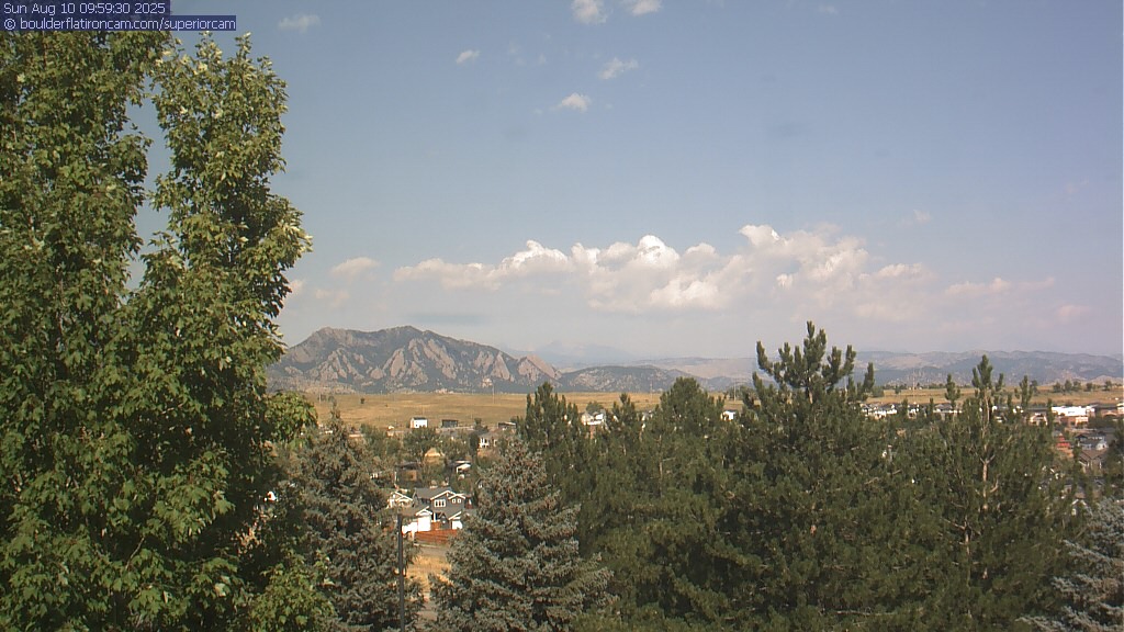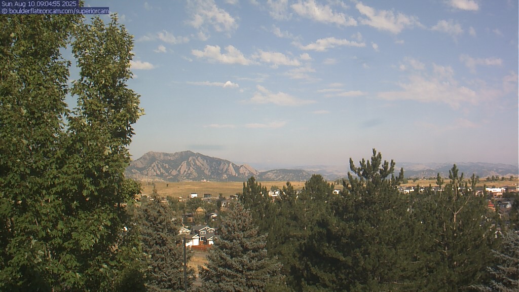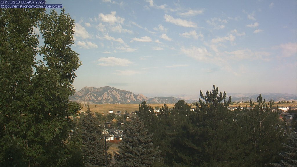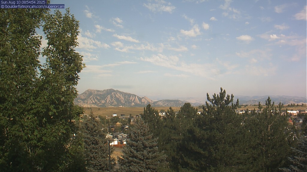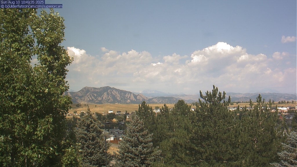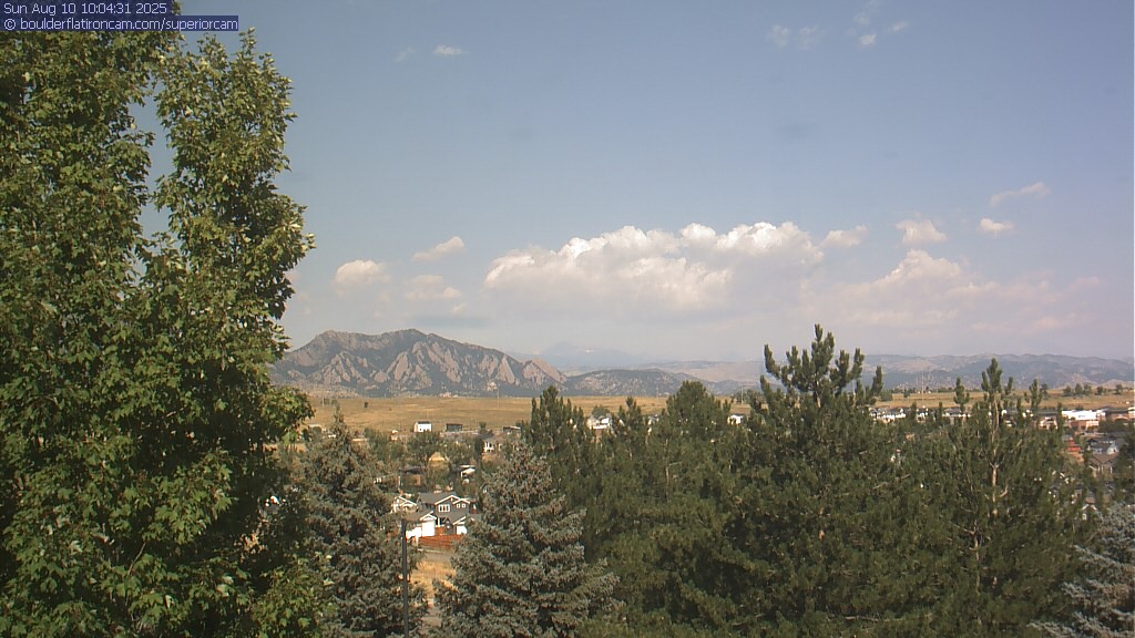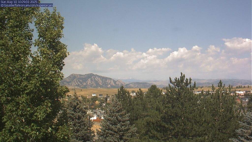 The Superior cam has a great view to the northwest over Boulder, the Flatirons, Indian Peaks and Long’s Peak.   The Coal Creek trail is visible in the foreground with old town Superior.  Thanks to Aweida Venture Partners management for the great view.