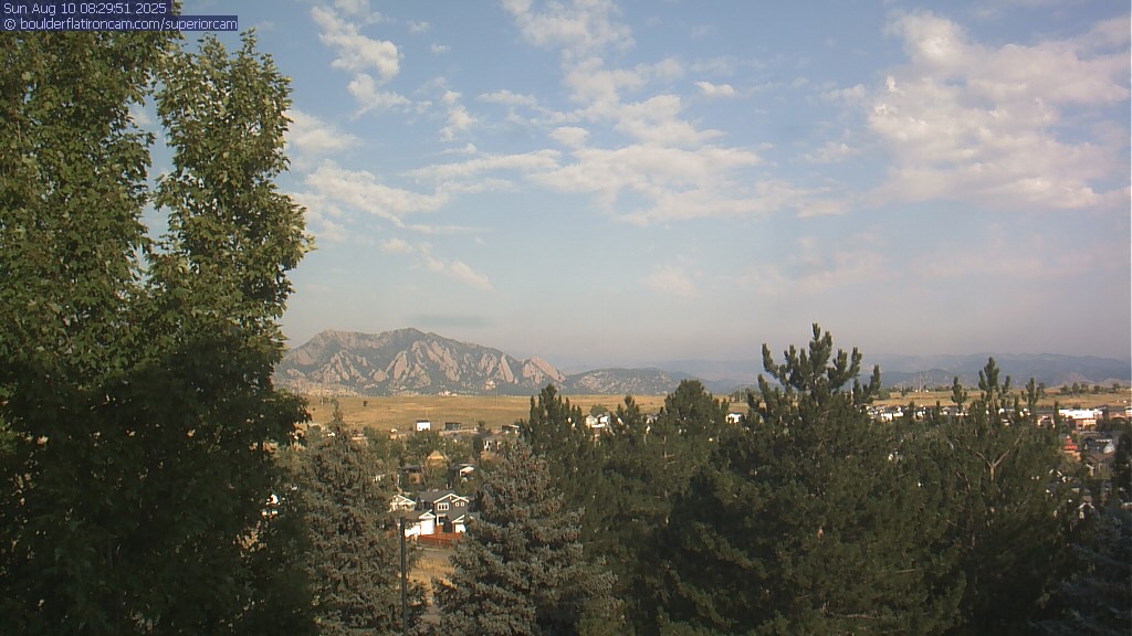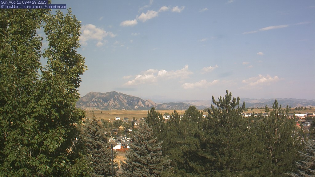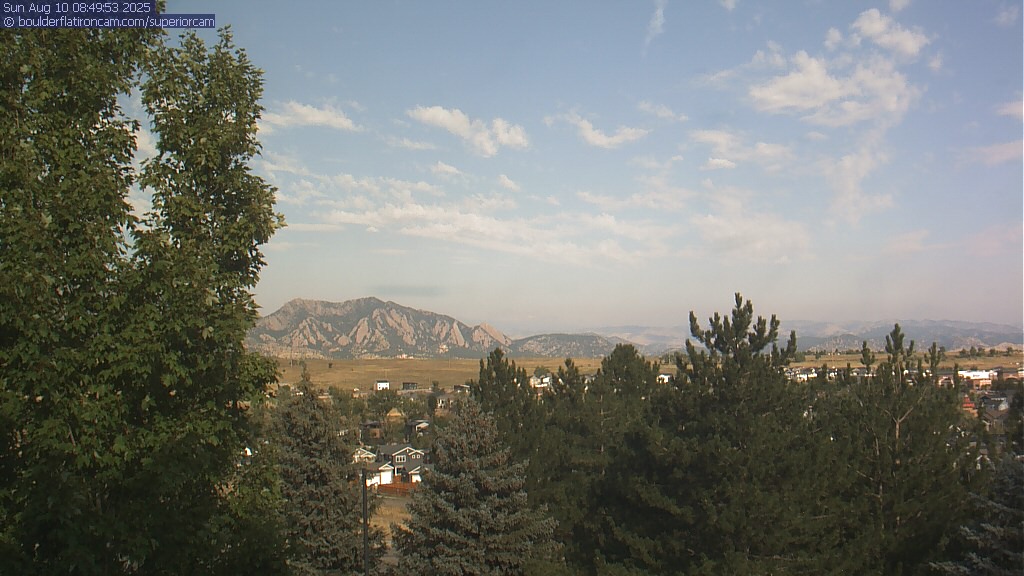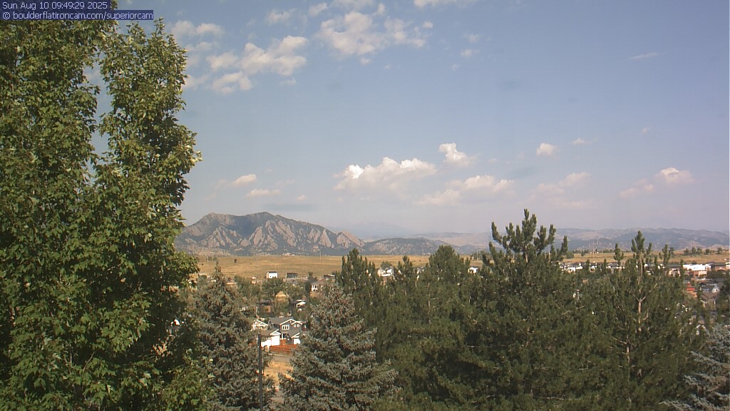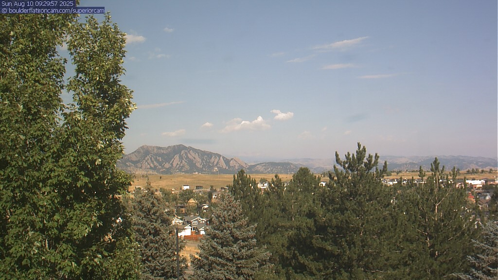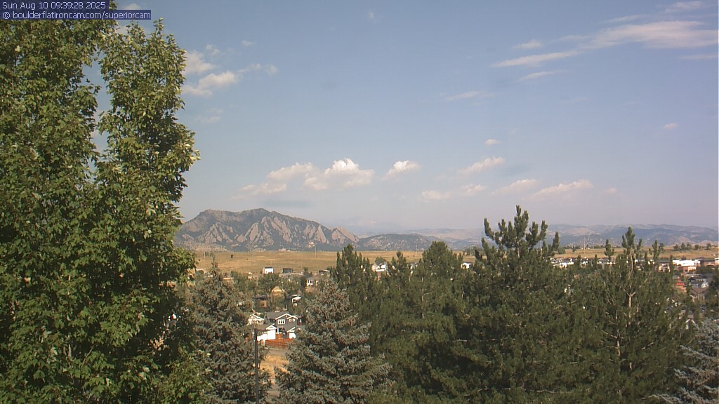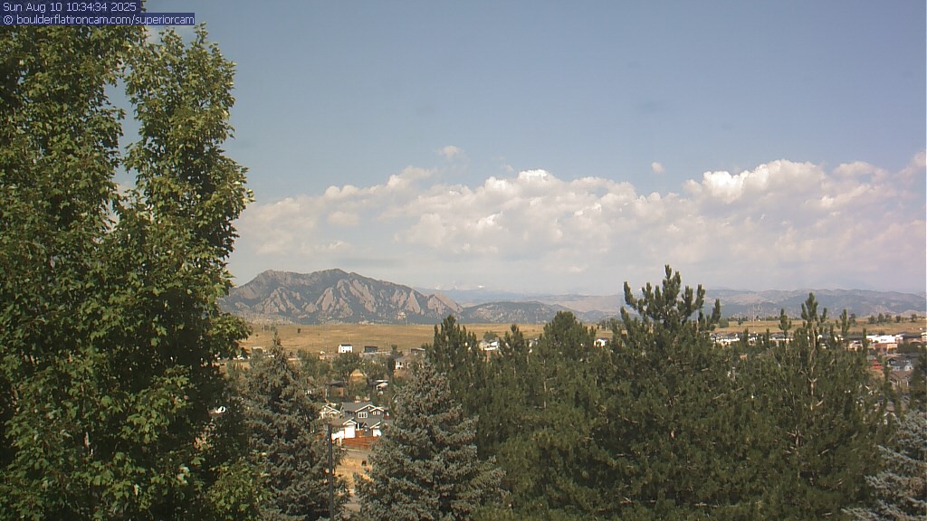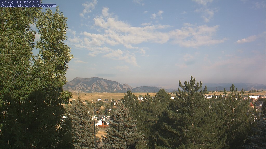 The Superior cam has a great view to the northwest over Boulder, the Flatirons, Indian Peaks and Long’s Peak.   The Coal Creek trail is visible in the foreground with old town Superior.  Thanks to Aweida Venture Partners management for the great view.
