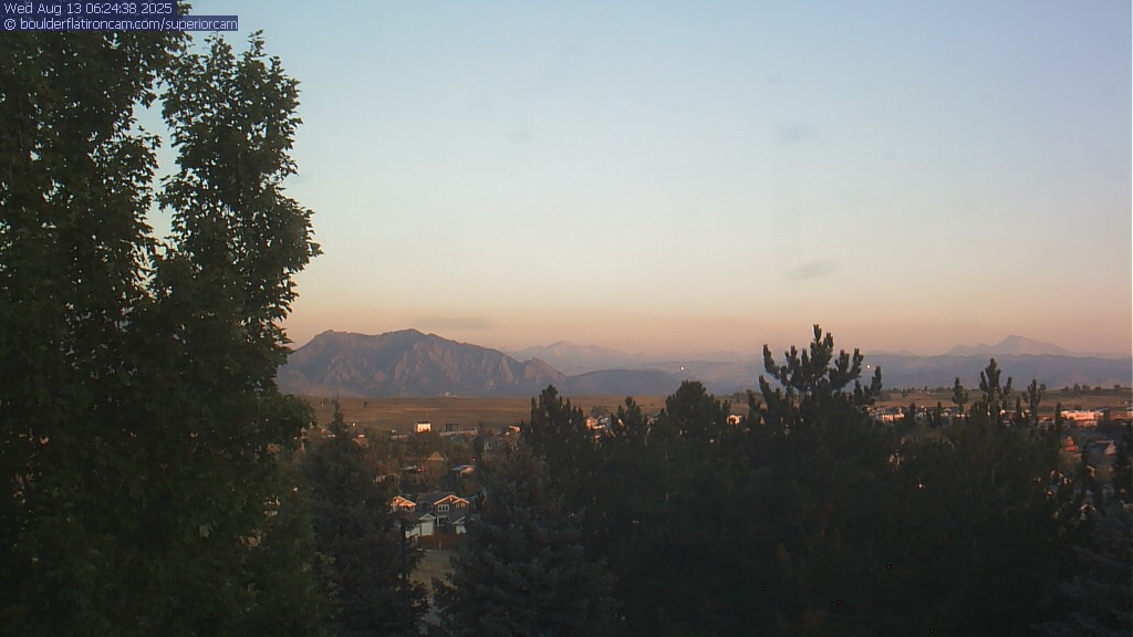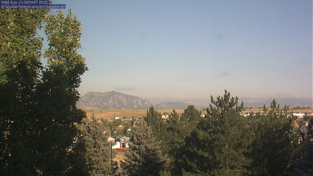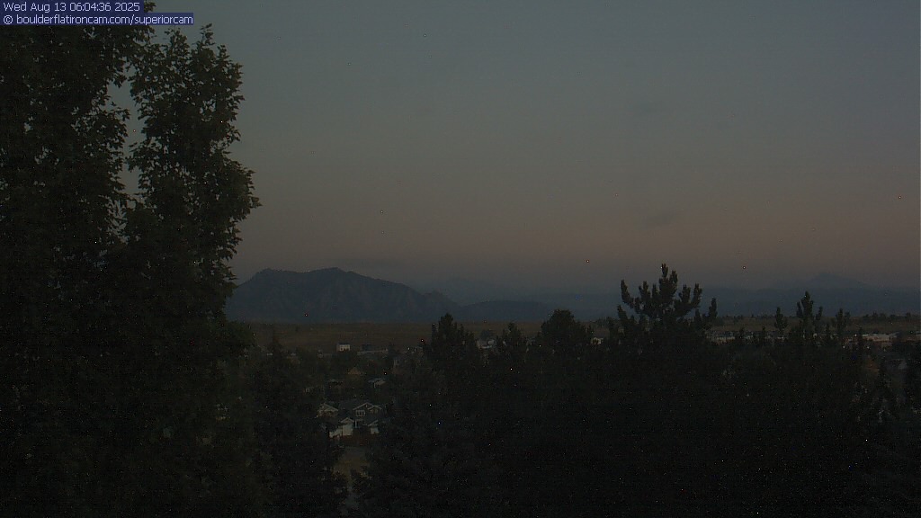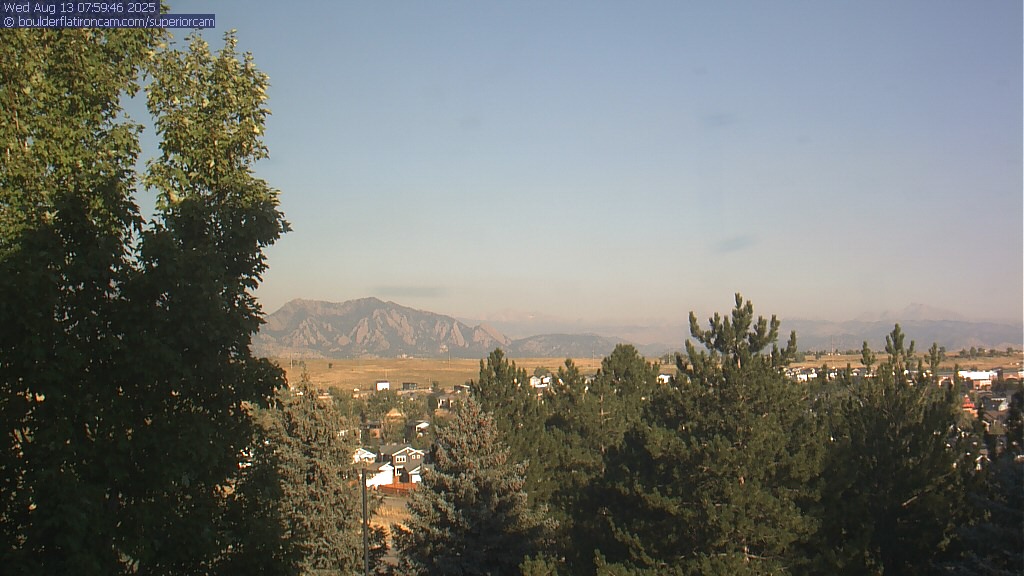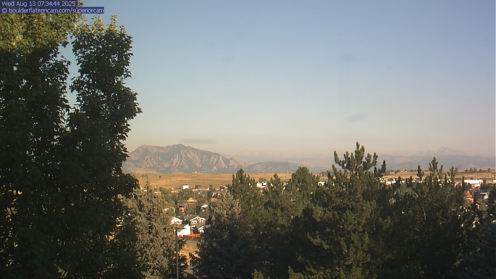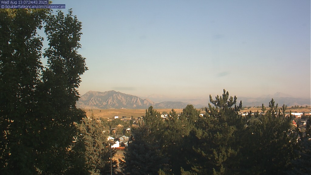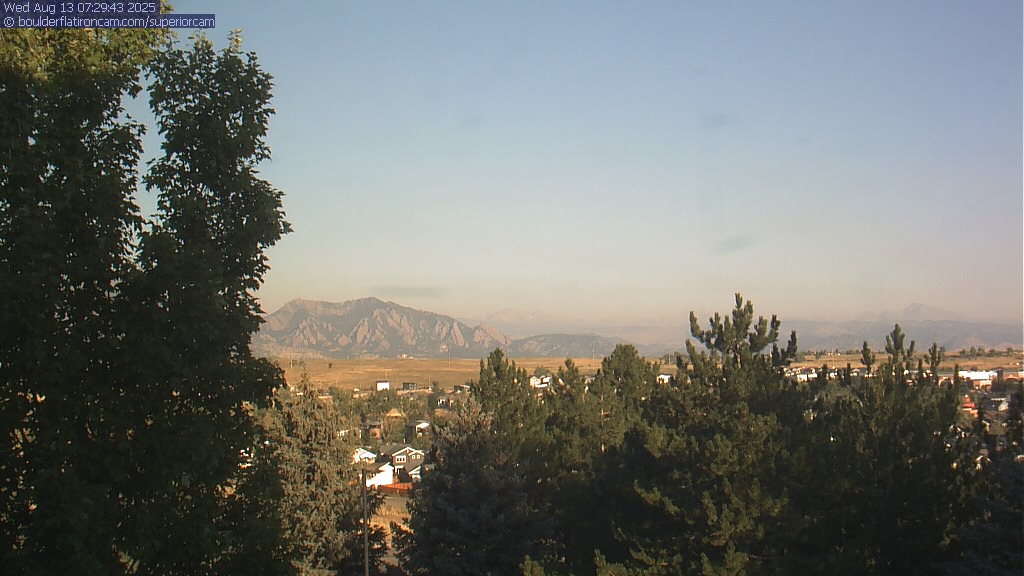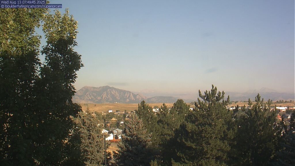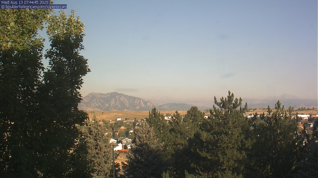 The Superior cam has a great view to the northwest over Boulder, the Flatirons, Indian Peaks and Long’s Peak.   The Coal Creek trail is visible in the foreground with old town Superior.  Thanks to Aweida Venture Partners management for the great view.
