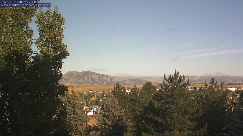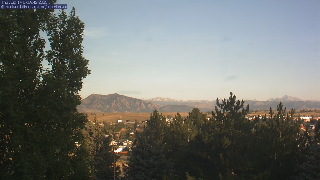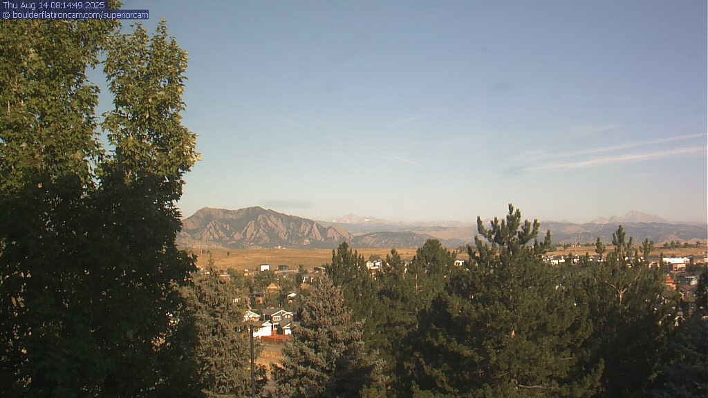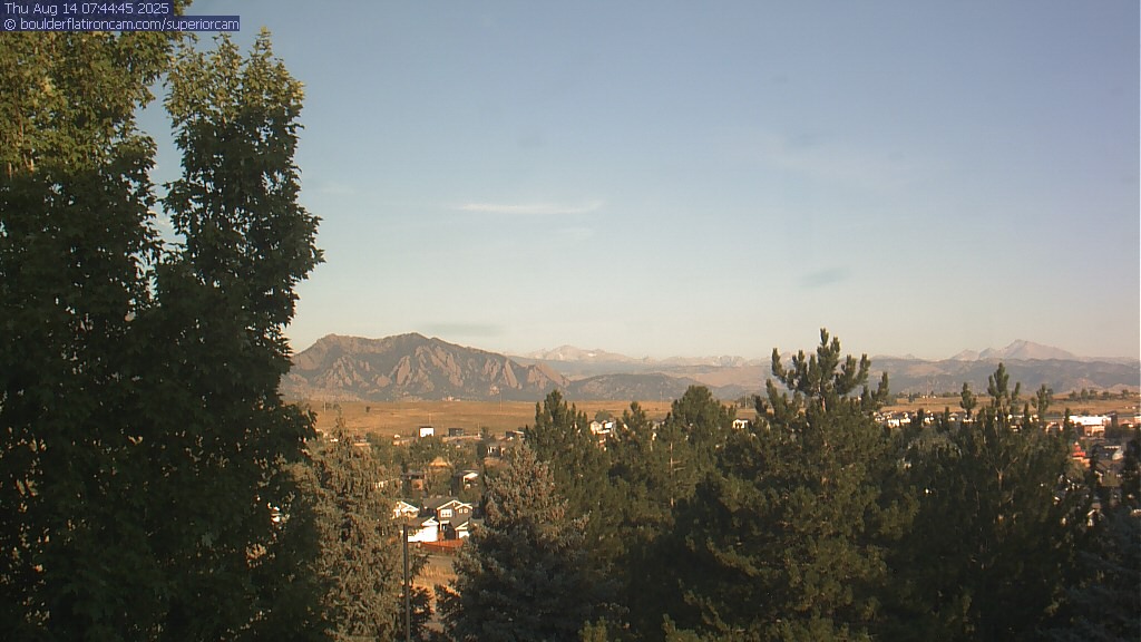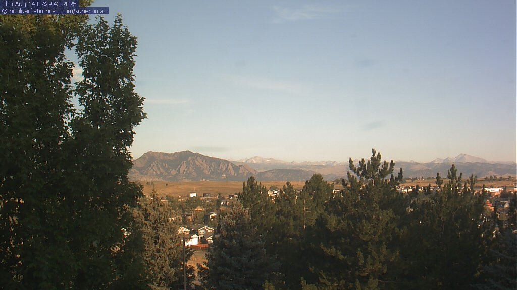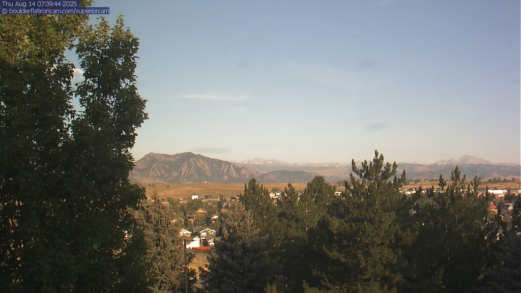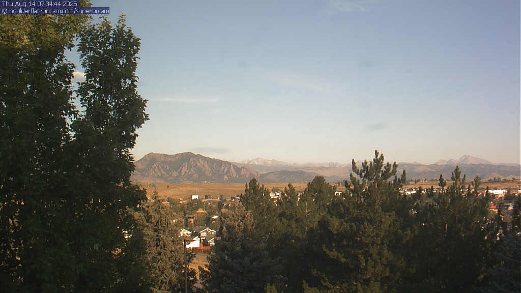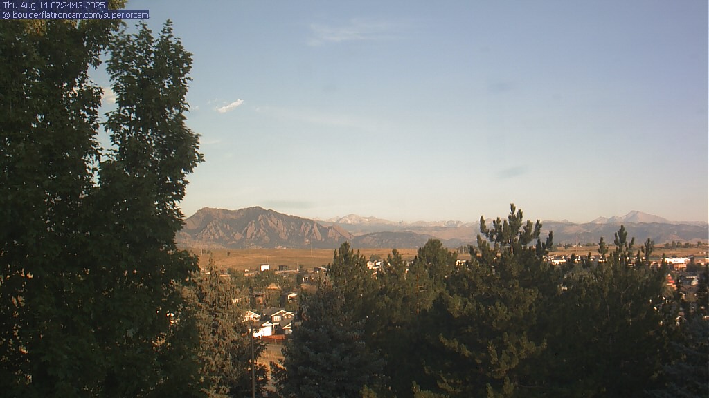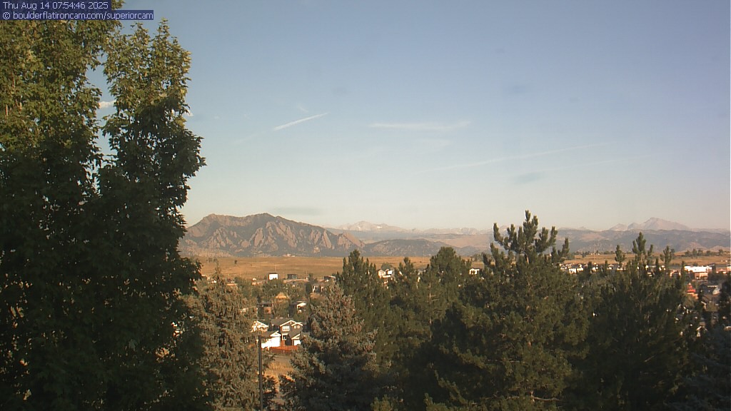 The Superior cam has a great view to the northwest over Boulder, the Flatirons, Indian Peaks and Long’s Peak.   The Coal Creek trail is visible in the foreground with old town Superior.  Thanks to Aweida Venture Partners management for the great view.