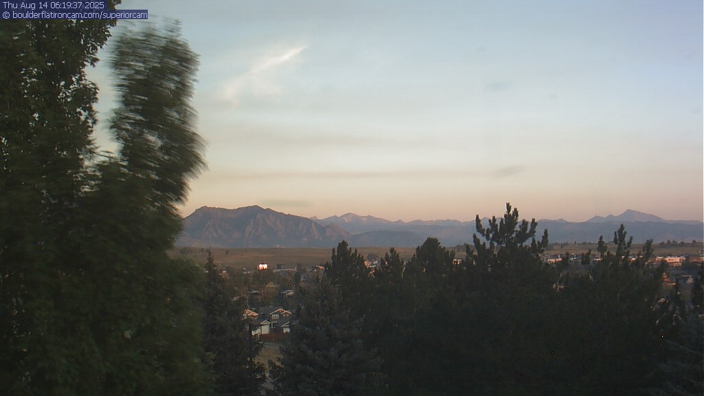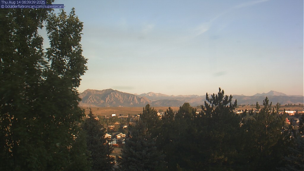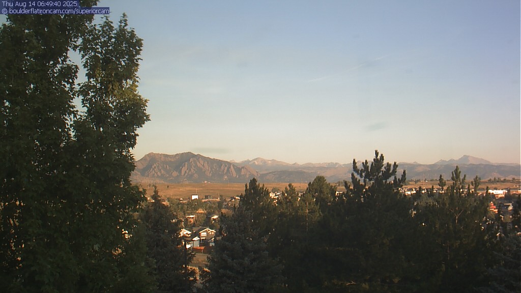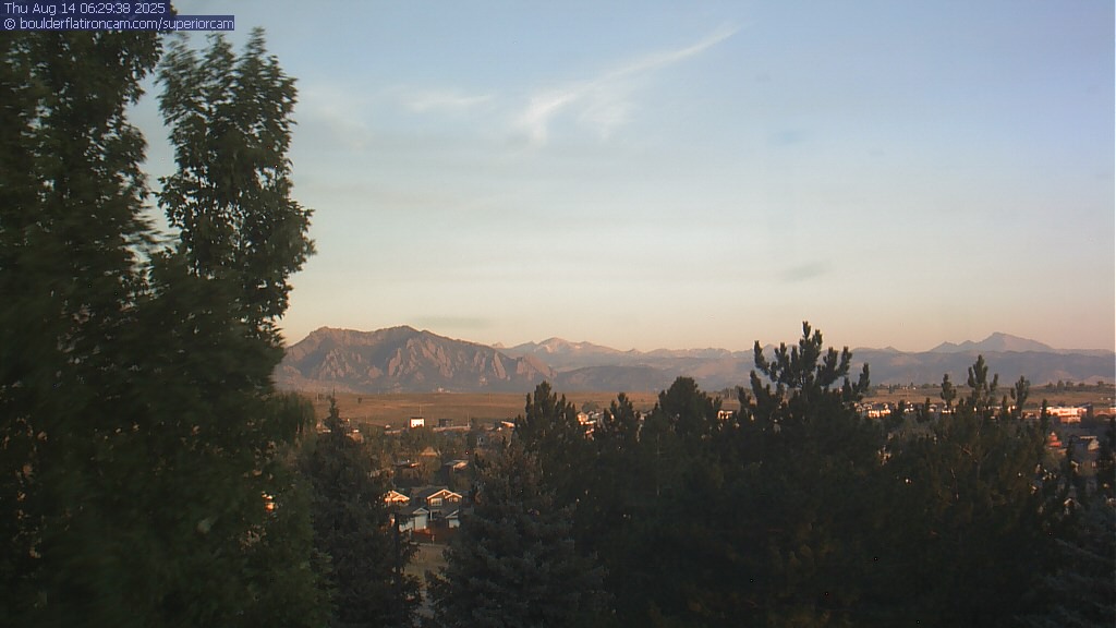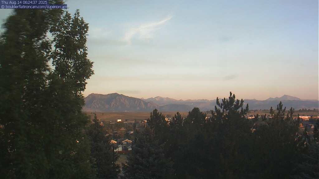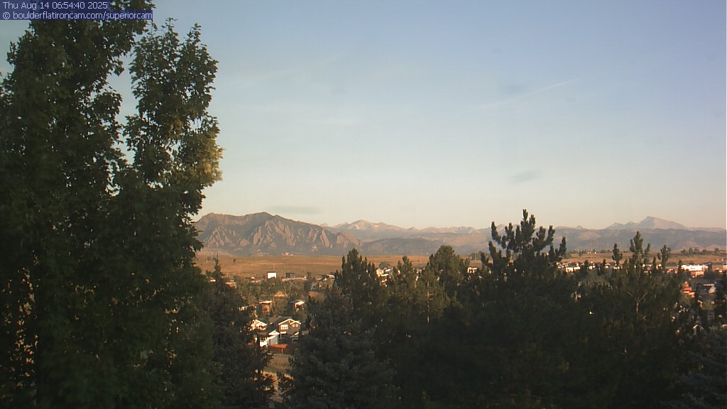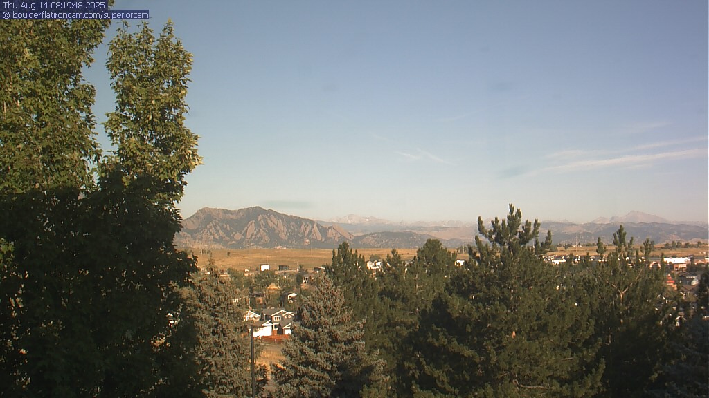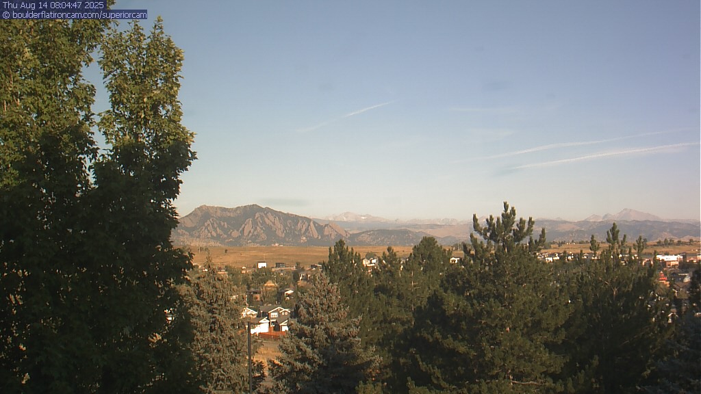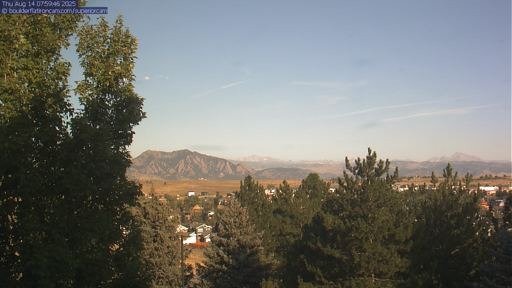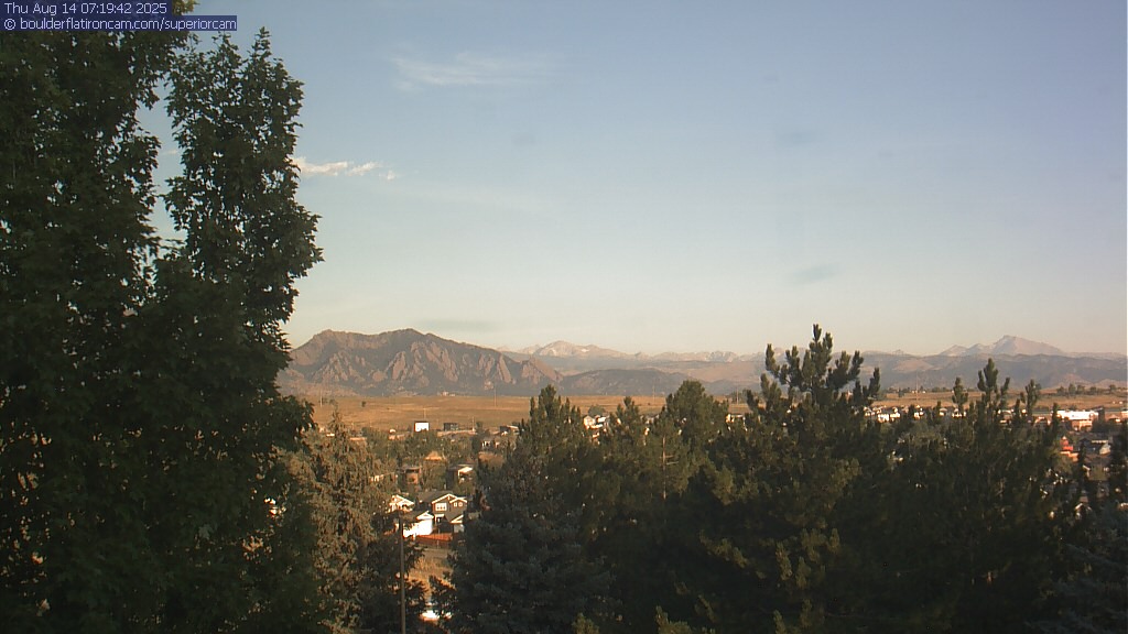 The Superior cam has a great view to the northwest over Boulder, the Flatirons, Indian Peaks and Long’s Peak.   The Coal Creek trail is visible in the foreground with old town Superior.  Thanks to Aweida Venture Partners management for the great view.