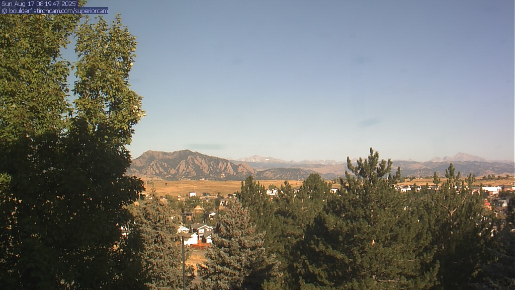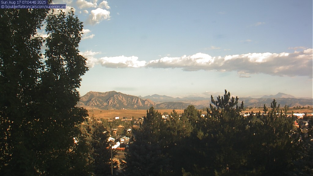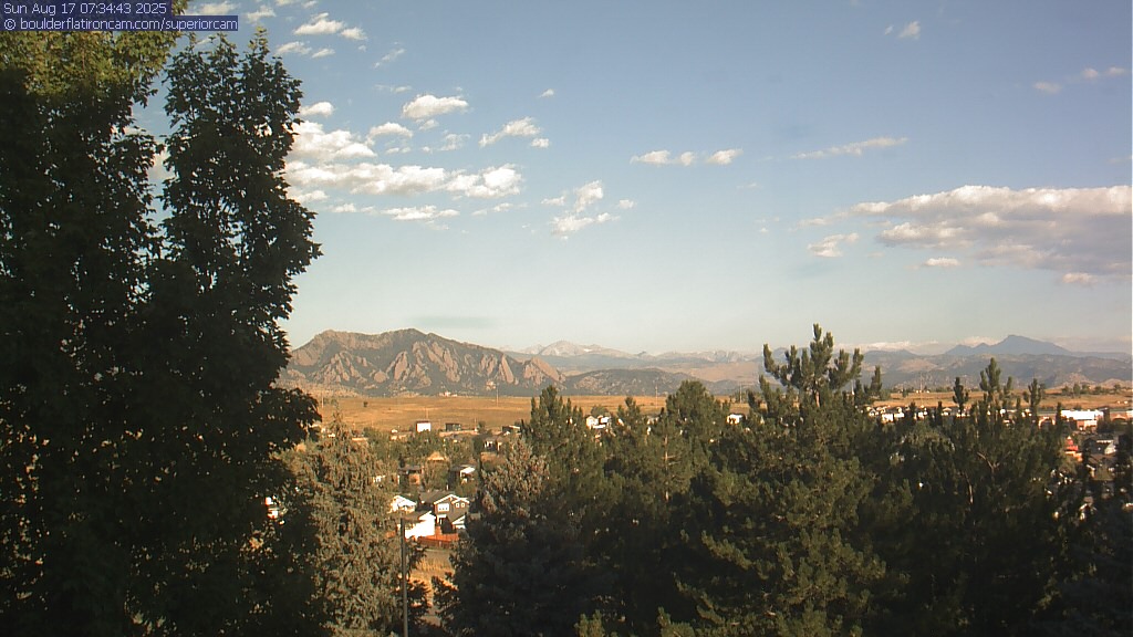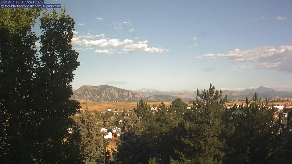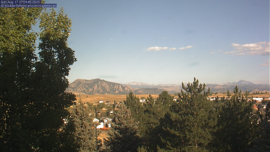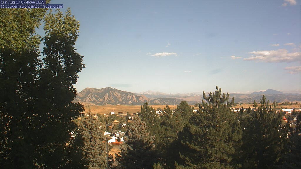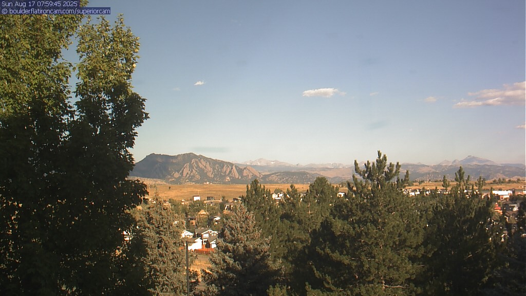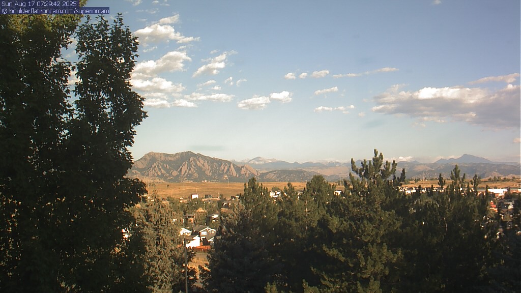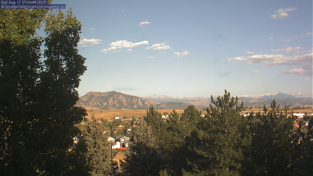 The Superior cam has a great view to the northwest over Boulder, the Flatirons, Indian Peaks and Long’s Peak.   The Coal Creek trail is visible in the foreground with old town Superior.  Thanks to Aweida Venture Partners management for the great view.