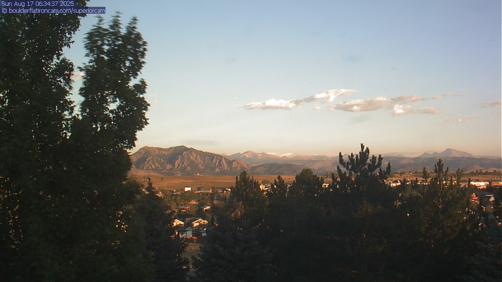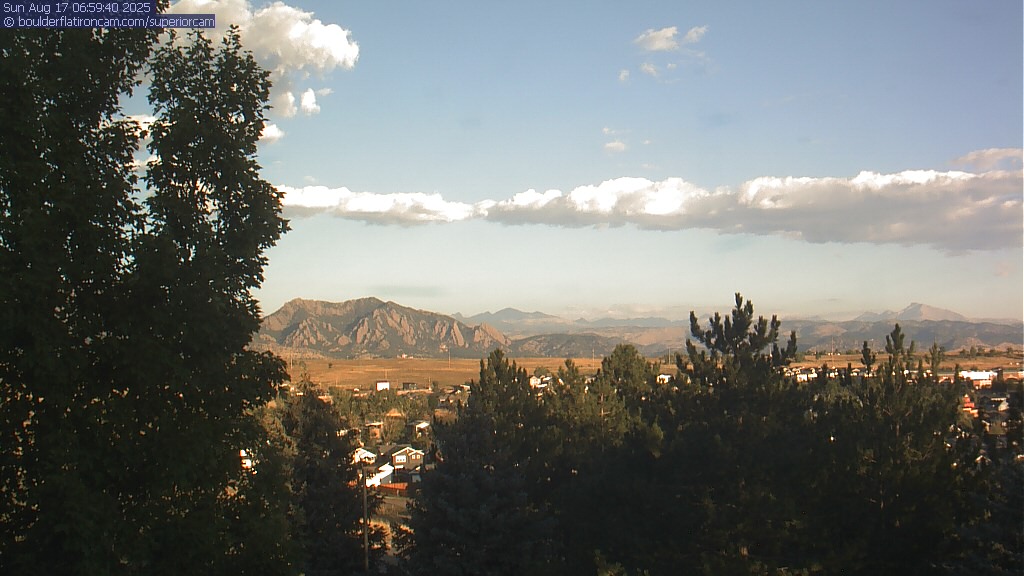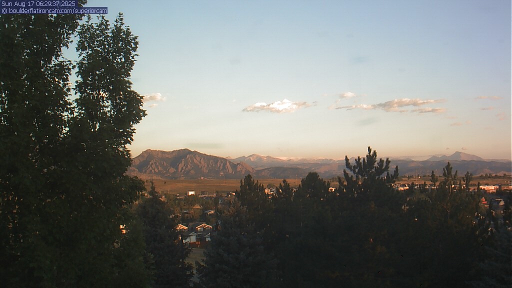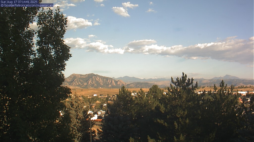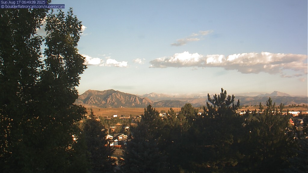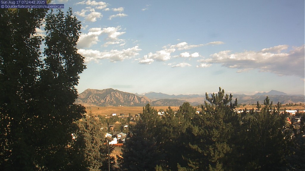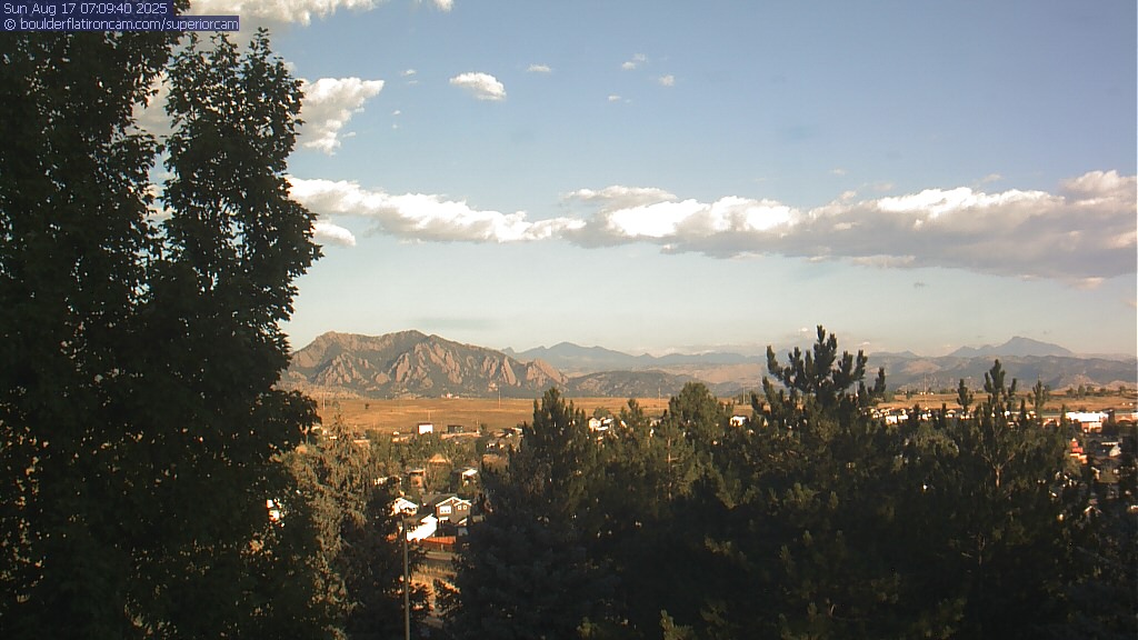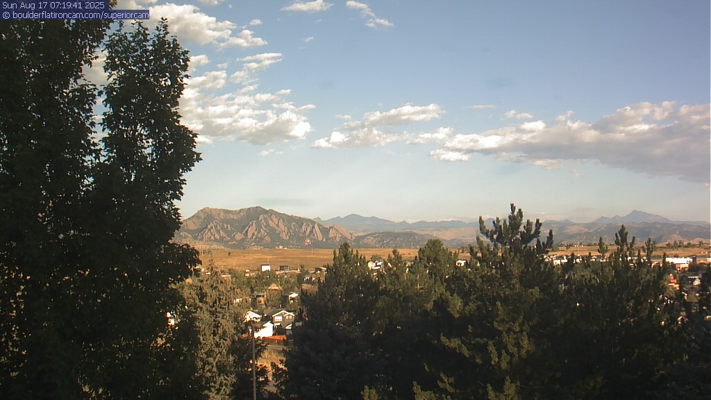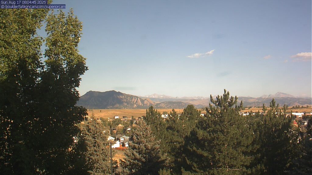 The Superior cam has a great view to the northwest over Boulder, the Flatirons, Indian Peaks and Long’s Peak.   The Coal Creek trail is visible in the foreground with old town Superior.  Thanks to Aweida Venture Partners management for the great view.