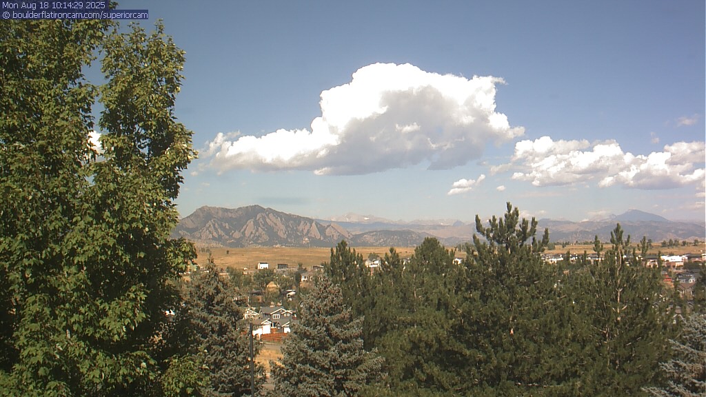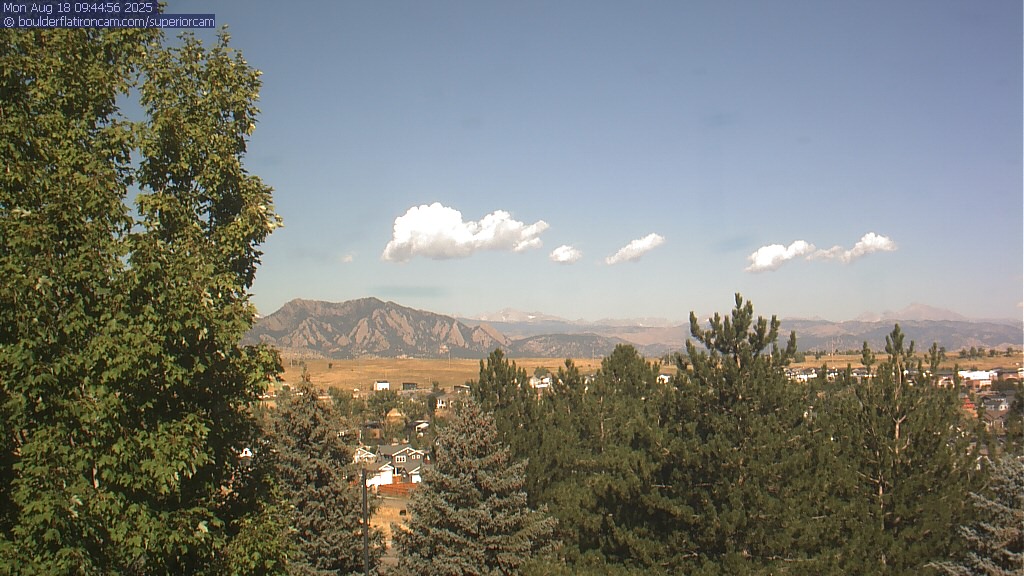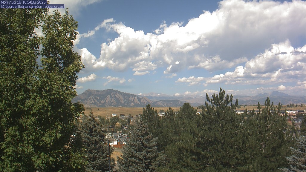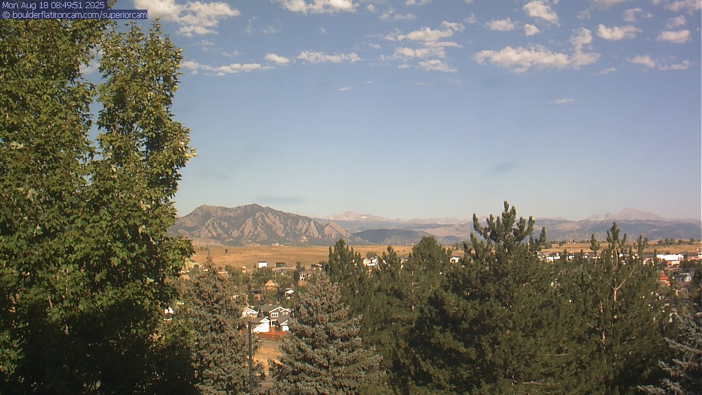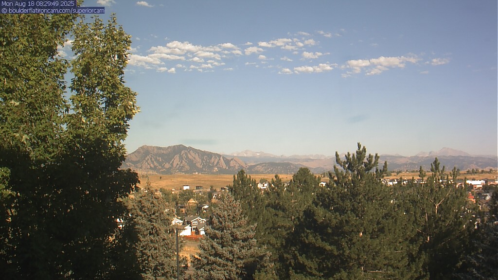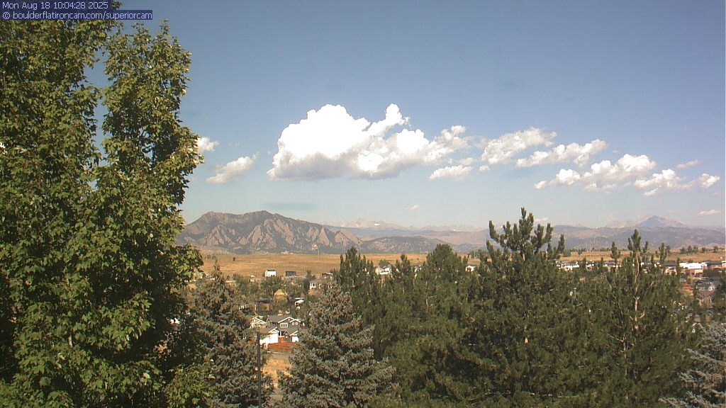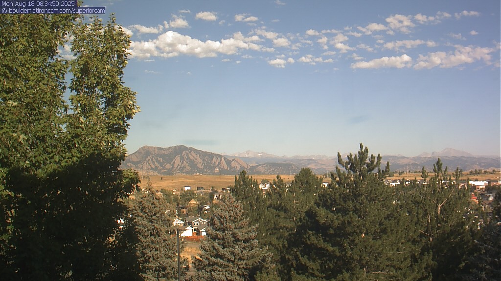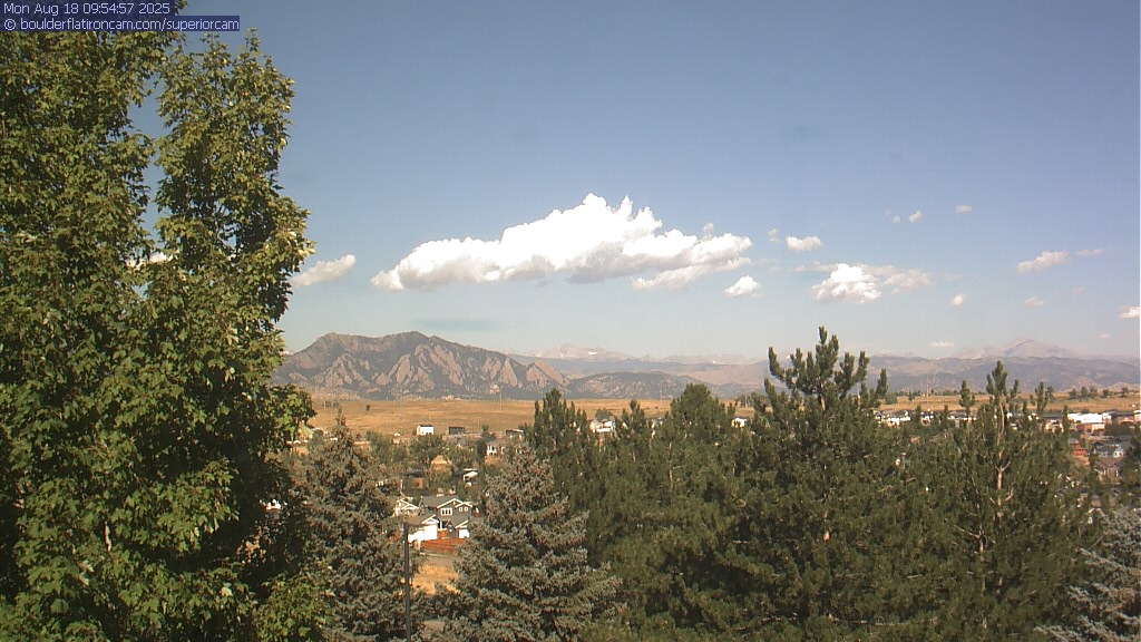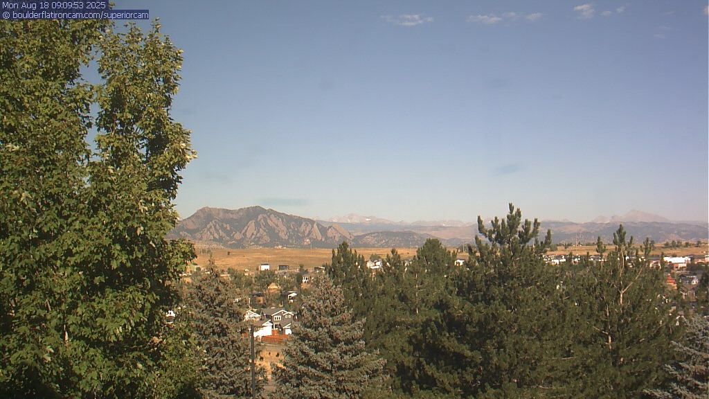 The Superior cam has a great view to the northwest over Boulder, the Flatirons, Indian Peaks and Long’s Peak.   The Coal Creek trail is visible in the foreground with old town Superior.  Thanks to Aweida Venture Partners management for the great view.