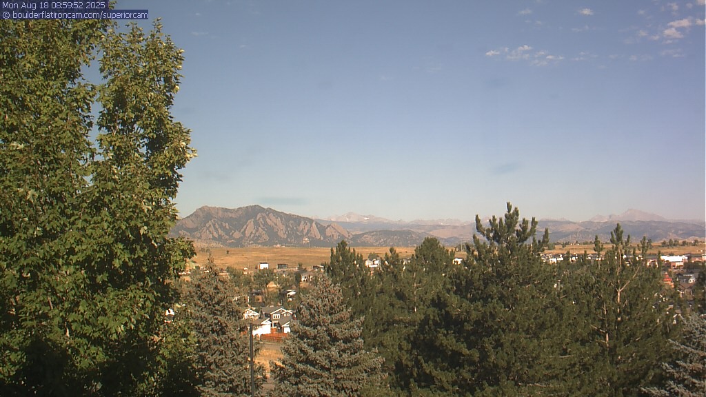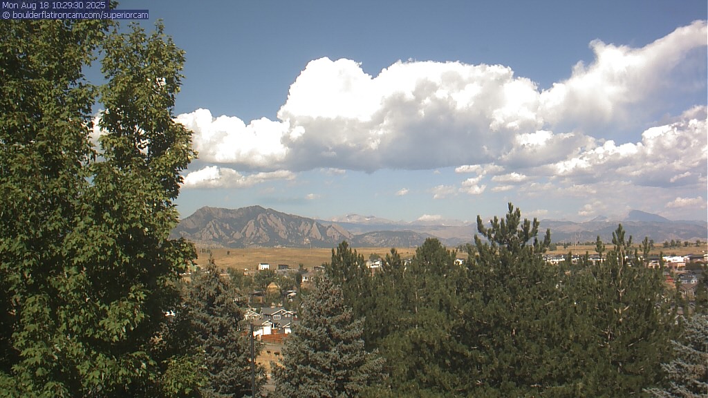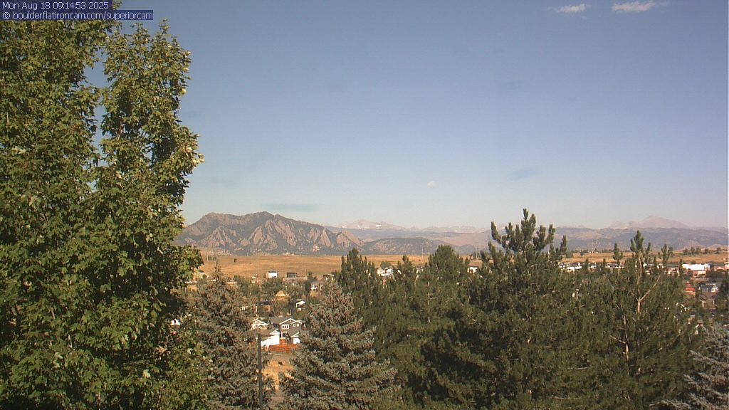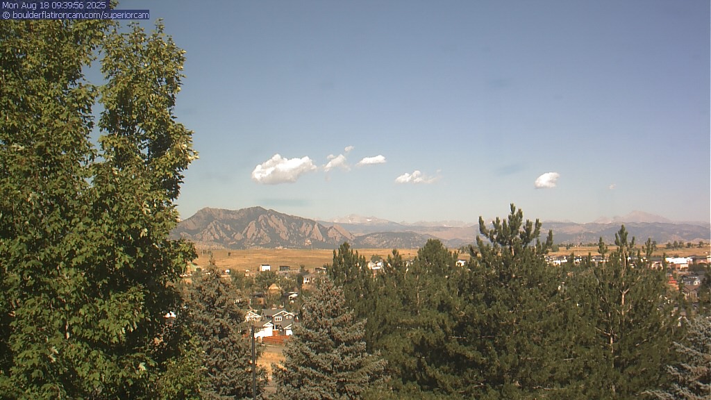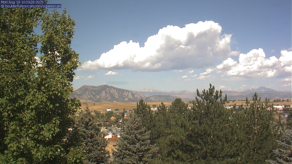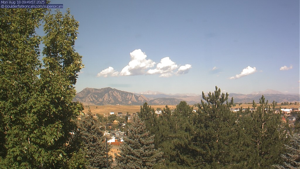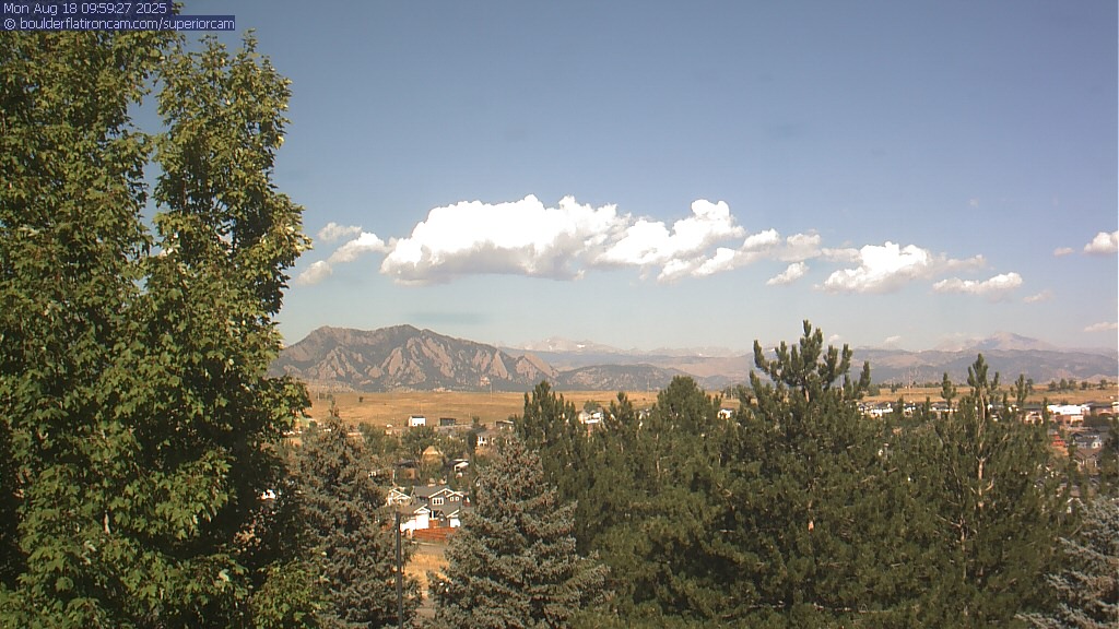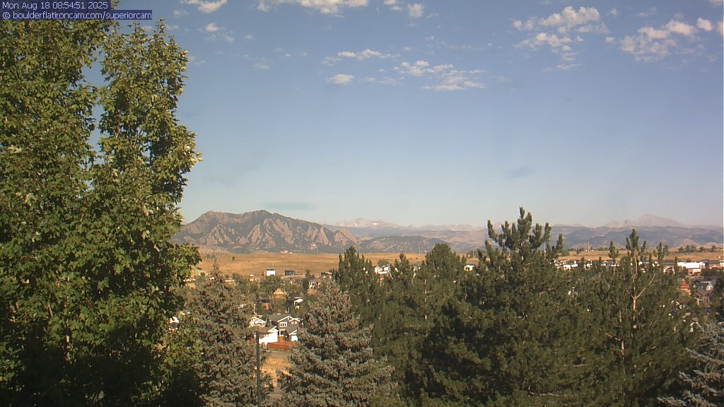 The Superior cam has a great view to the northwest over Boulder, the Flatirons, Indian Peaks and Long’s Peak.   The Coal Creek trail is visible in the foreground with old town Superior.  Thanks to Aweida Venture Partners management for the great view.