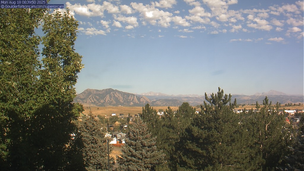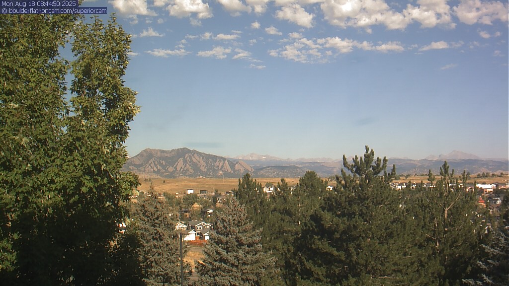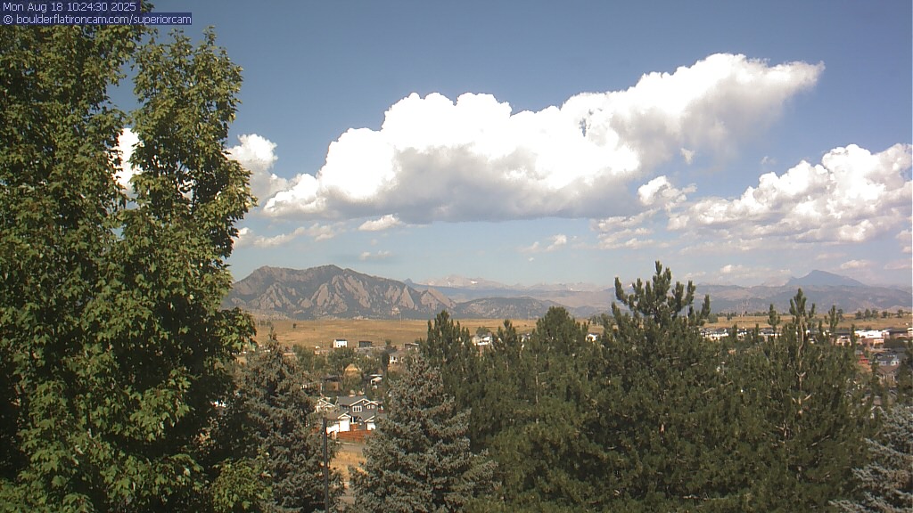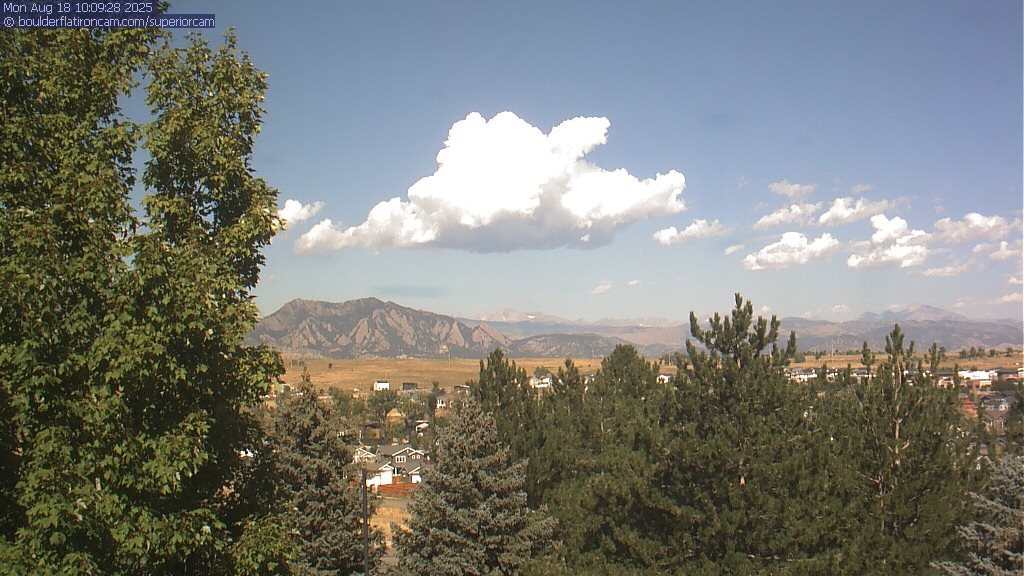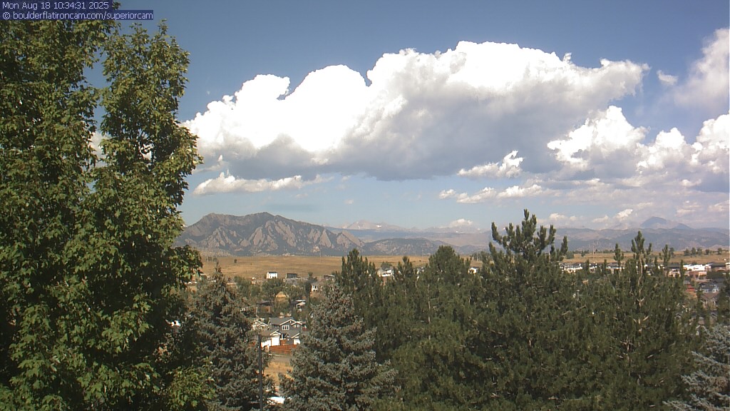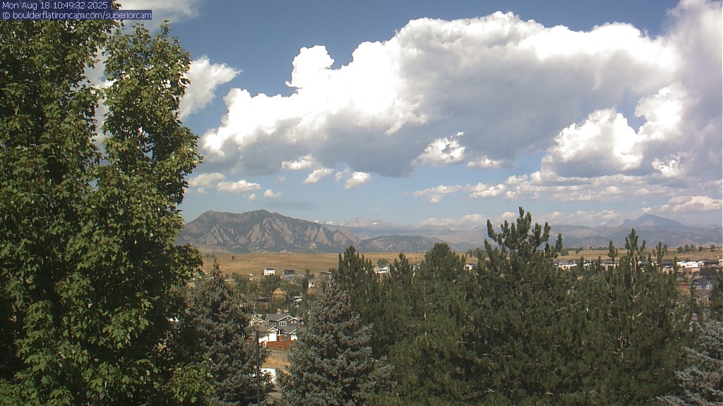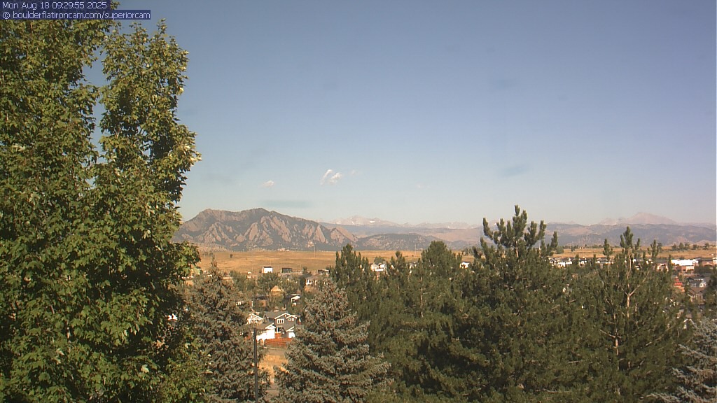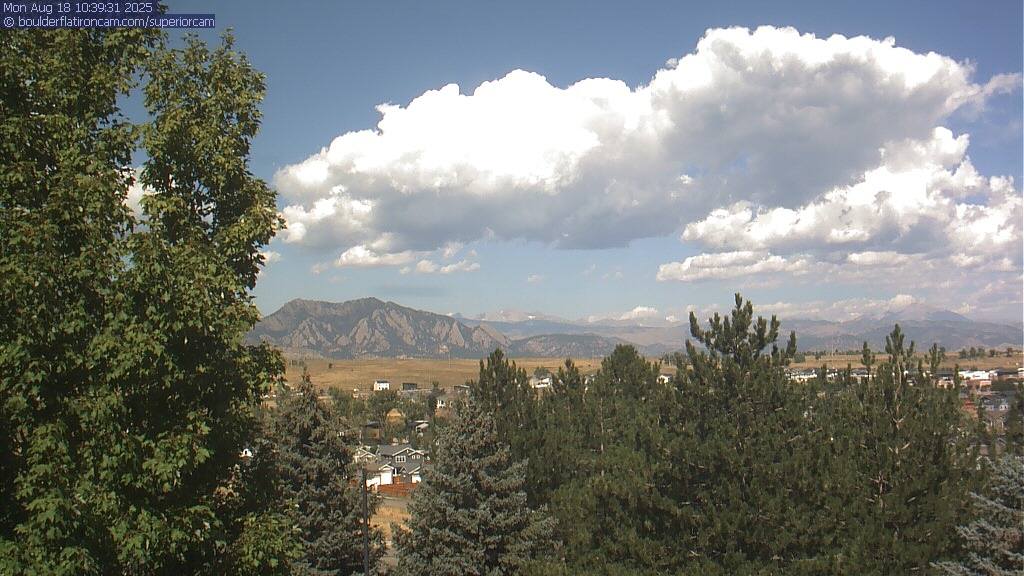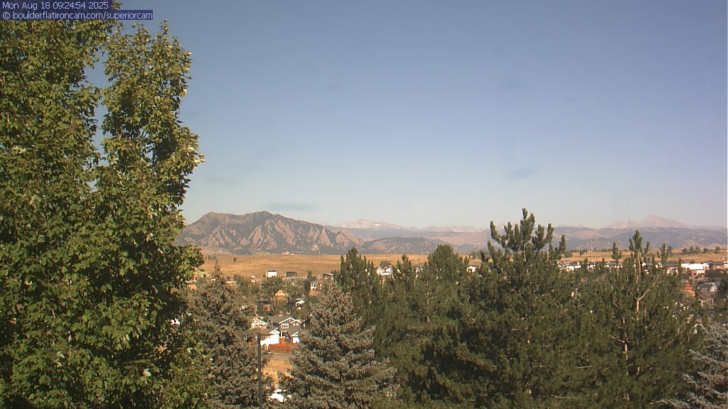 The Superior cam has a great view to the northwest over Boulder, the Flatirons, Indian Peaks and Long’s Peak.   The Coal Creek trail is visible in the foreground with old town Superior.  Thanks to Aweida Venture Partners management for the great view.