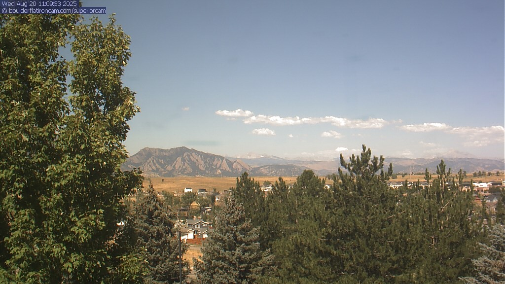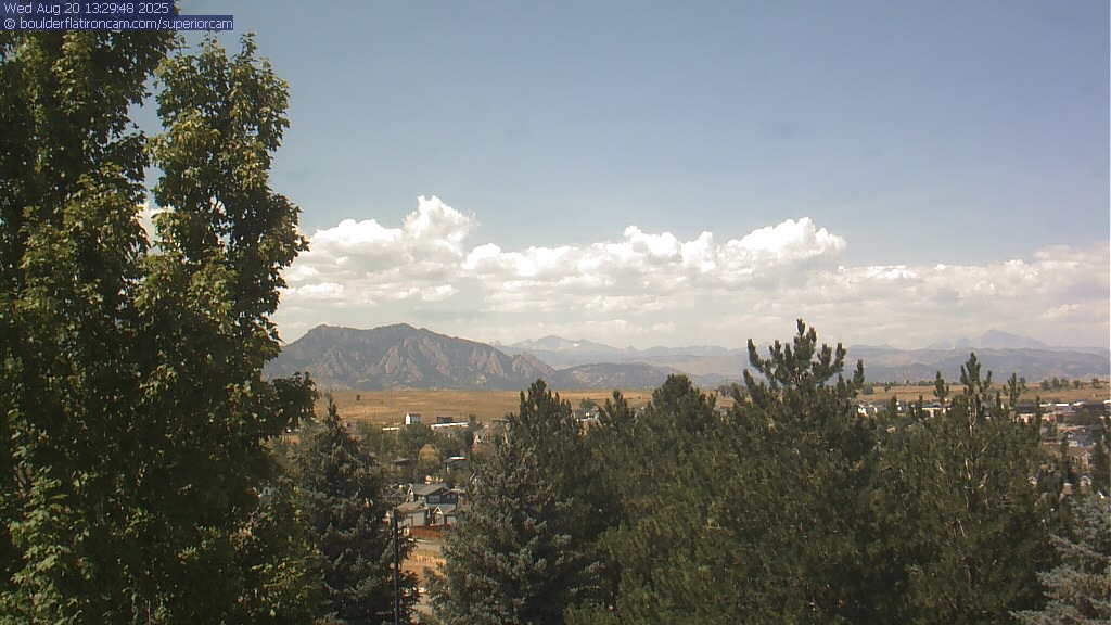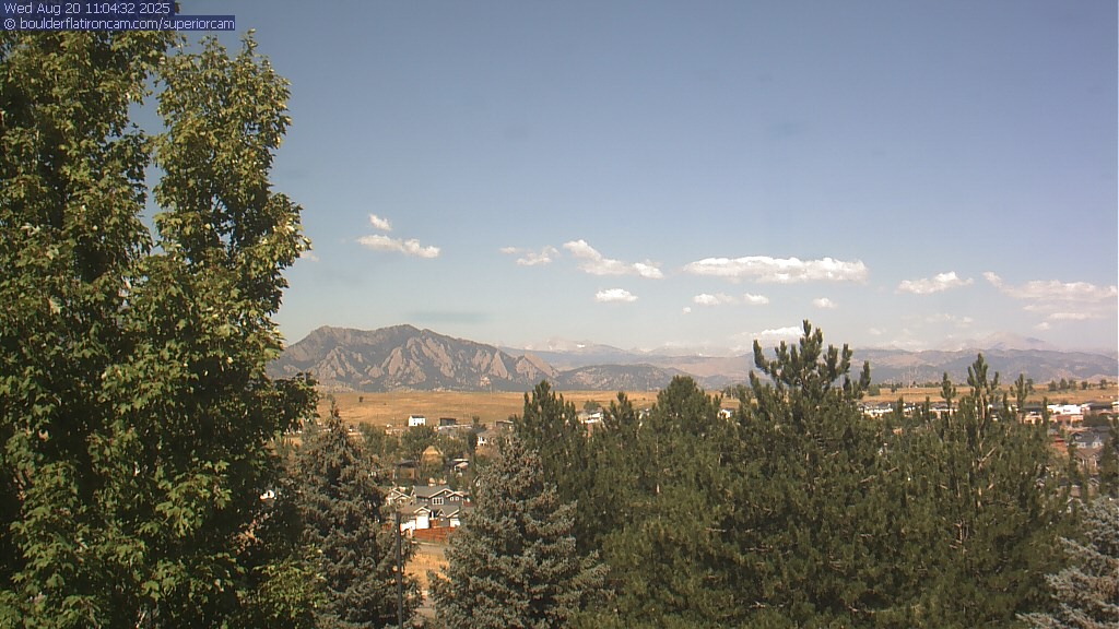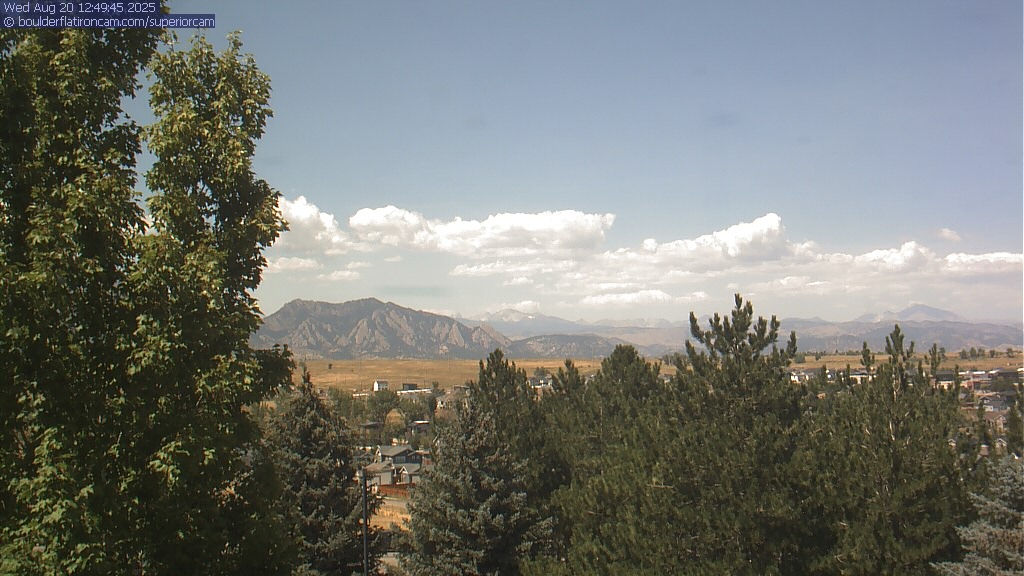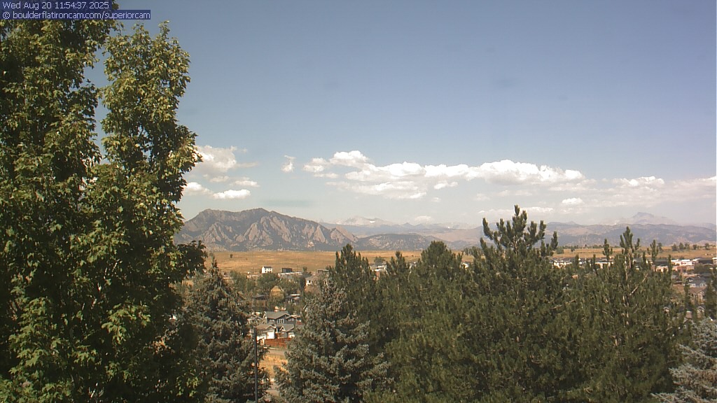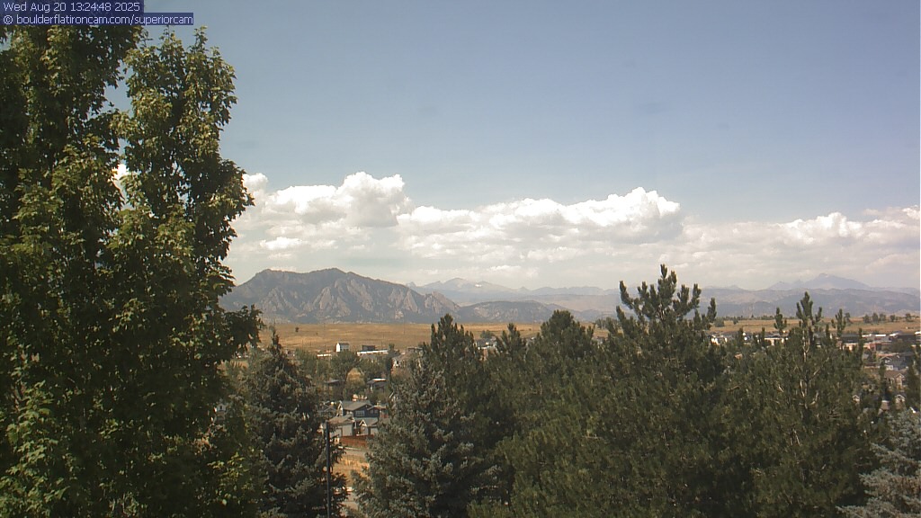 The Superior cam has a great view to the northwest over Boulder, the Flatirons, Indian Peaks and Long’s Peak.   The Coal Creek trail is visible in the foreground with old town Superior.  Thanks to Aweida Venture Partners management for the great view.