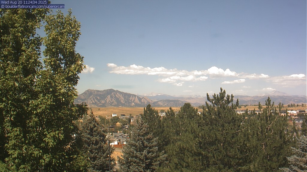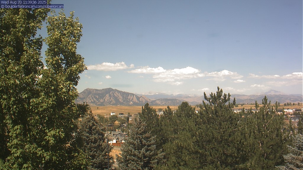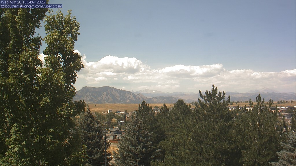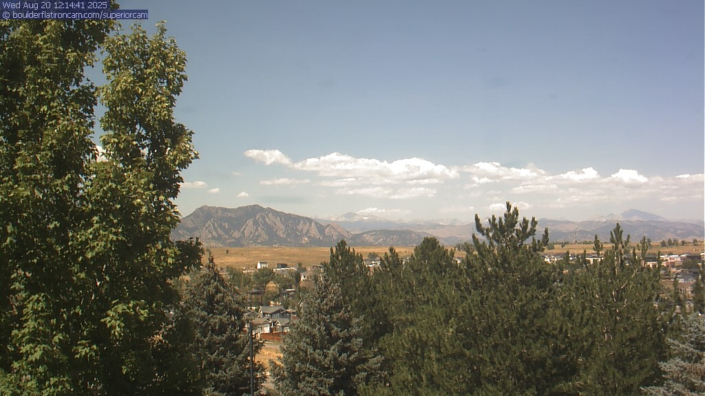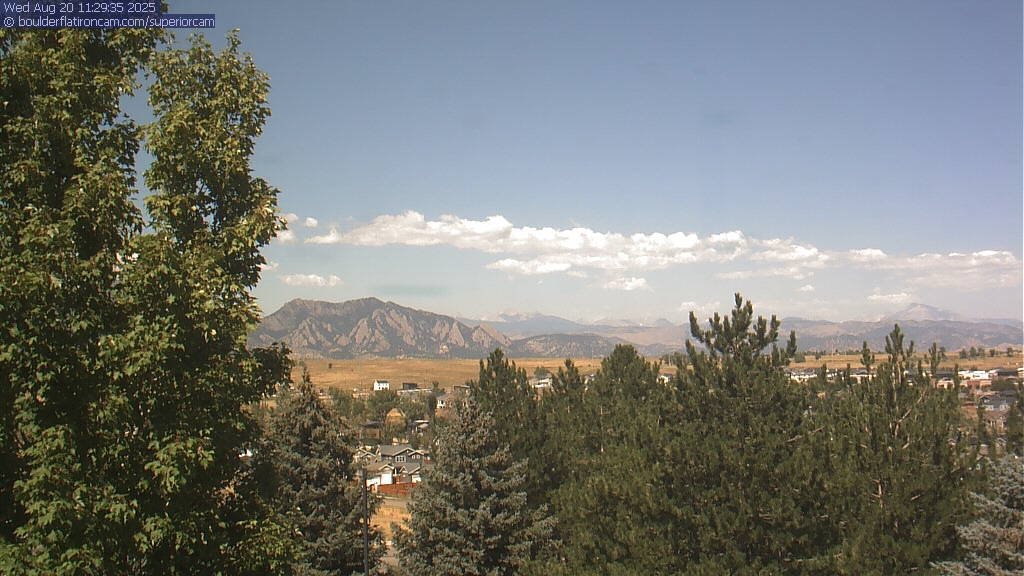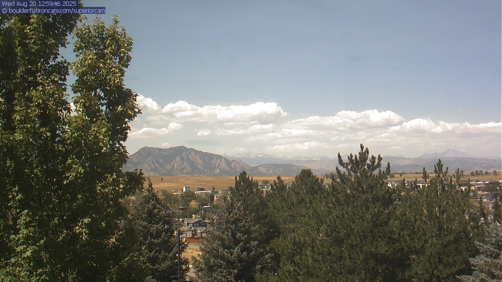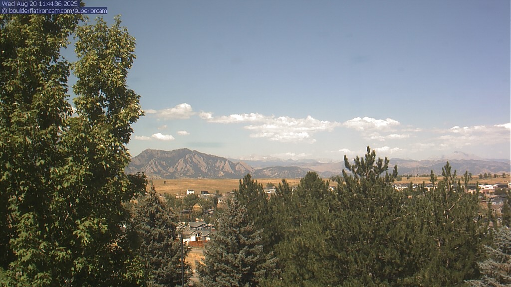 The Superior cam has a great view to the northwest over Boulder, the Flatirons, Indian Peaks and Long’s Peak.   The Coal Creek trail is visible in the foreground with old town Superior.  Thanks to Aweida Venture Partners management for the great view.