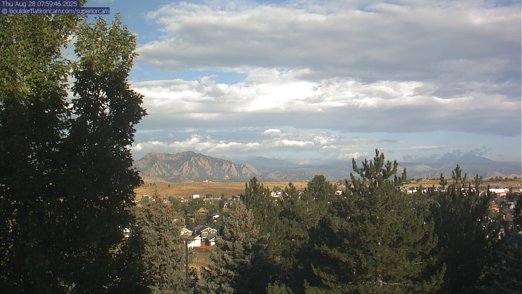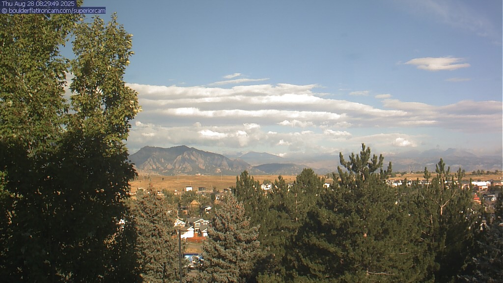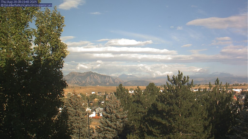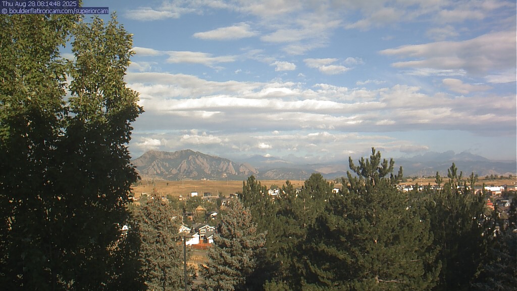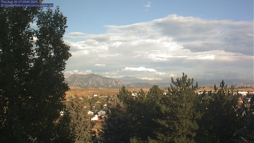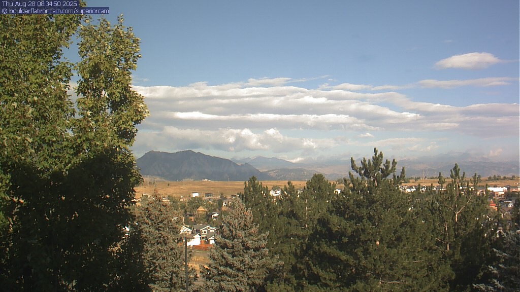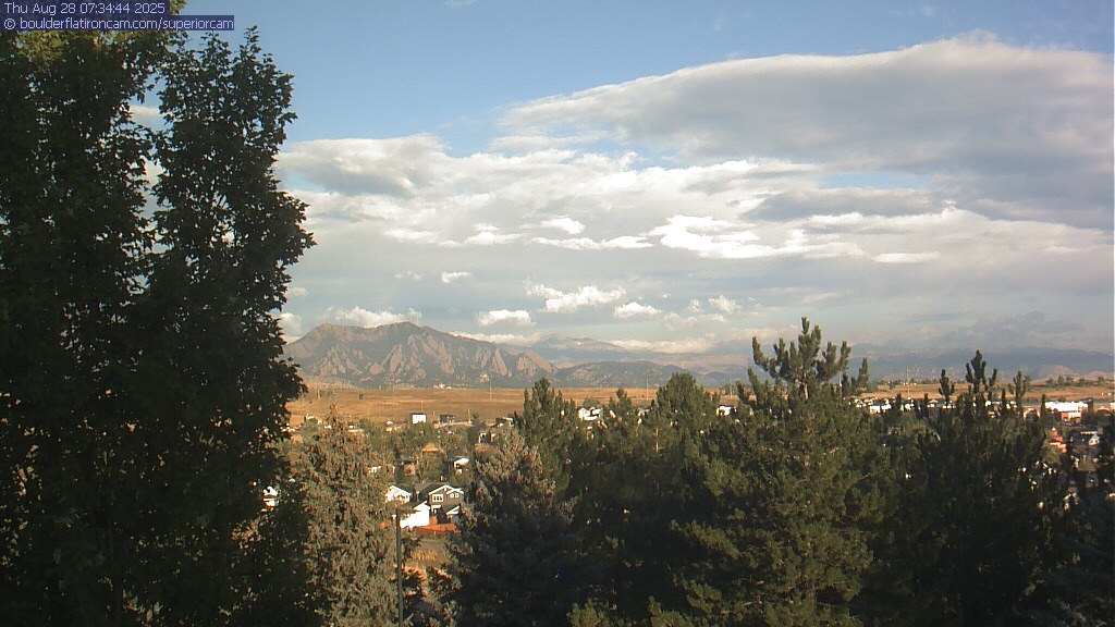 The Superior cam has a great view to the northwest over Boulder, the Flatirons, Indian Peaks and Long’s Peak.   The Coal Creek trail is visible in the foreground with old town Superior.  Thanks to Aweida Venture Partners management for the great view.