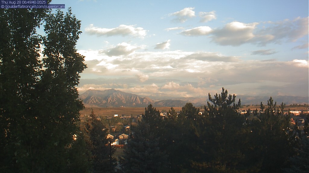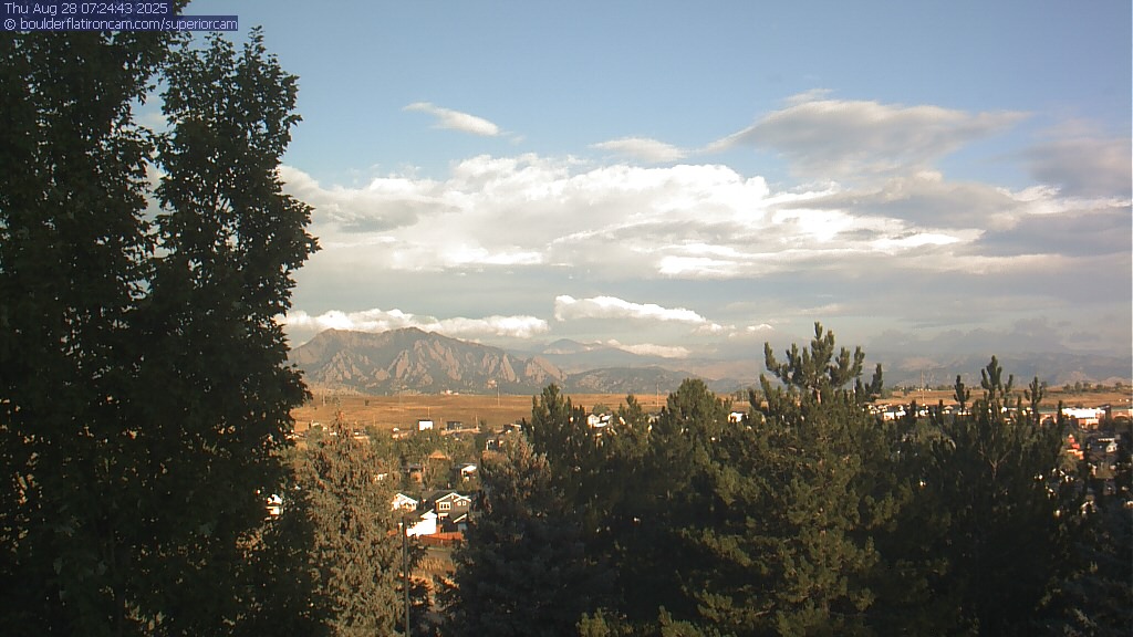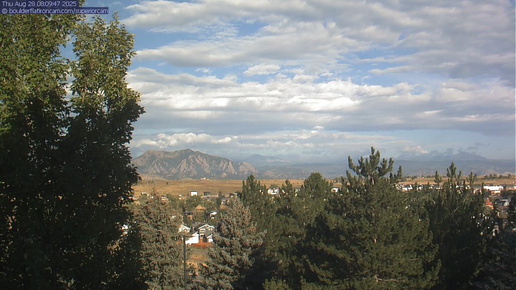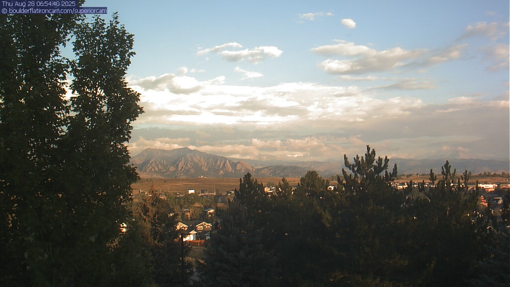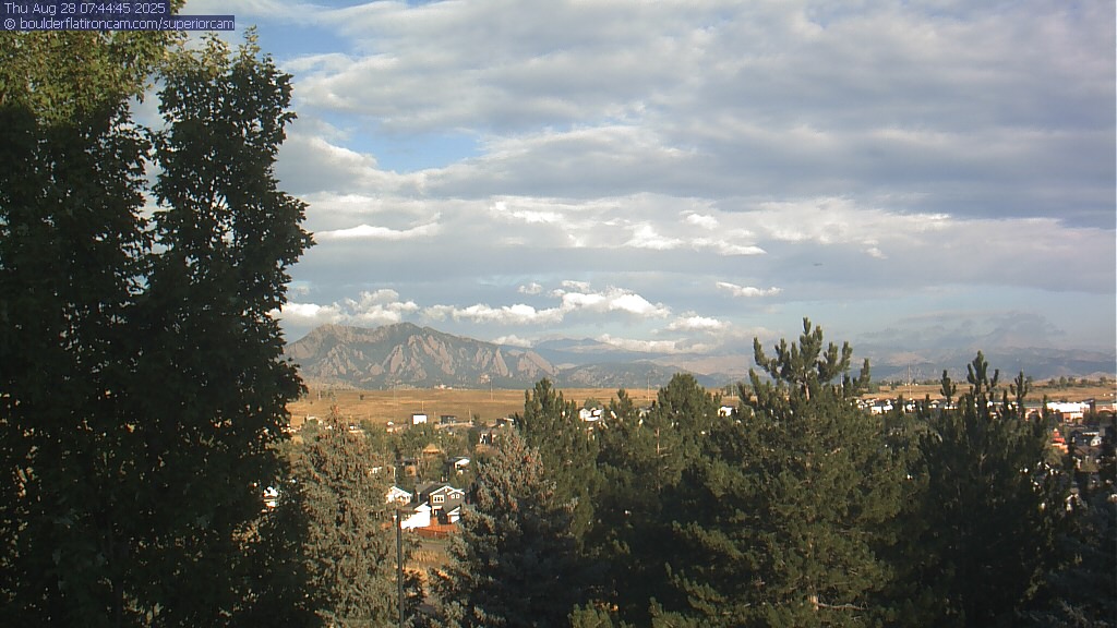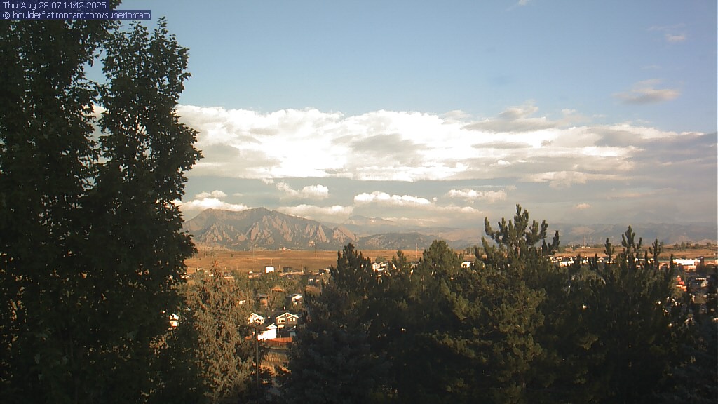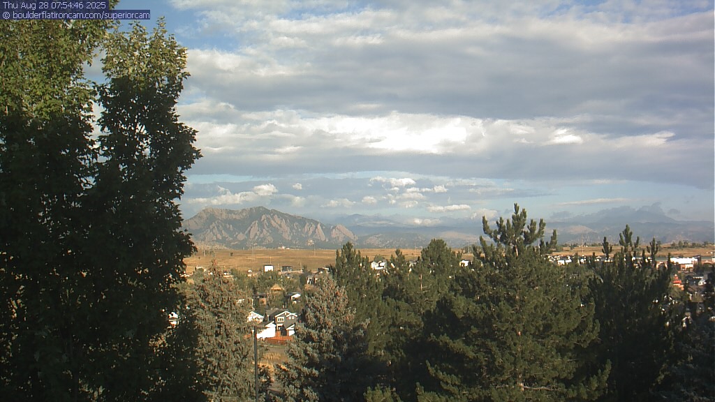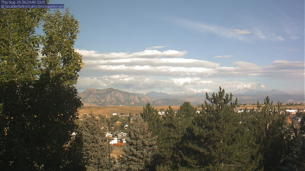 The Superior cam has a great view to the northwest over Boulder, the Flatirons, Indian Peaks and Long’s Peak.   The Coal Creek trail is visible in the foreground with old town Superior.  Thanks to Aweida Venture Partners management for the great view.
