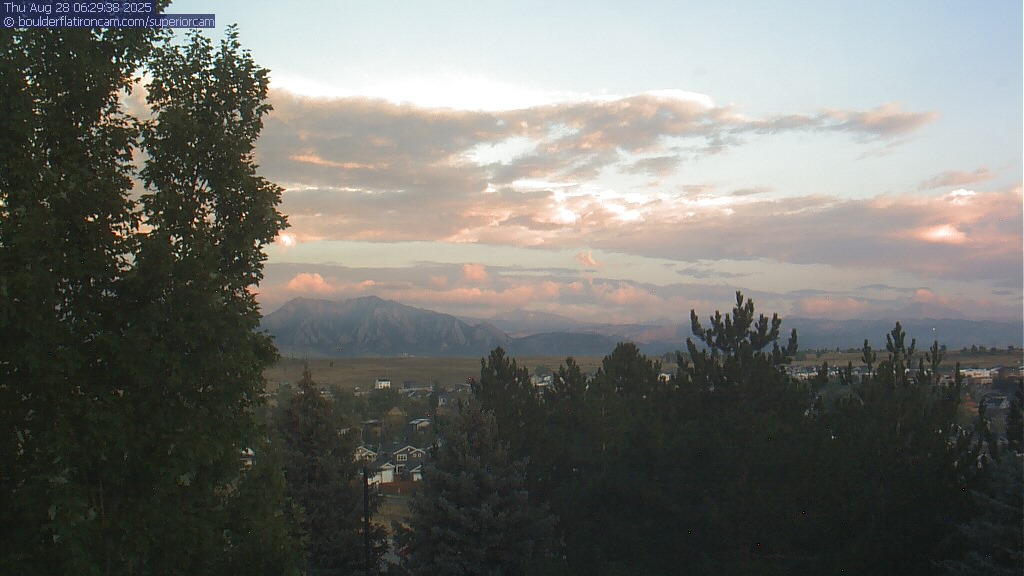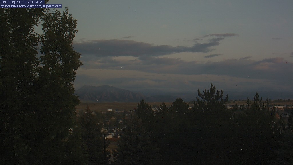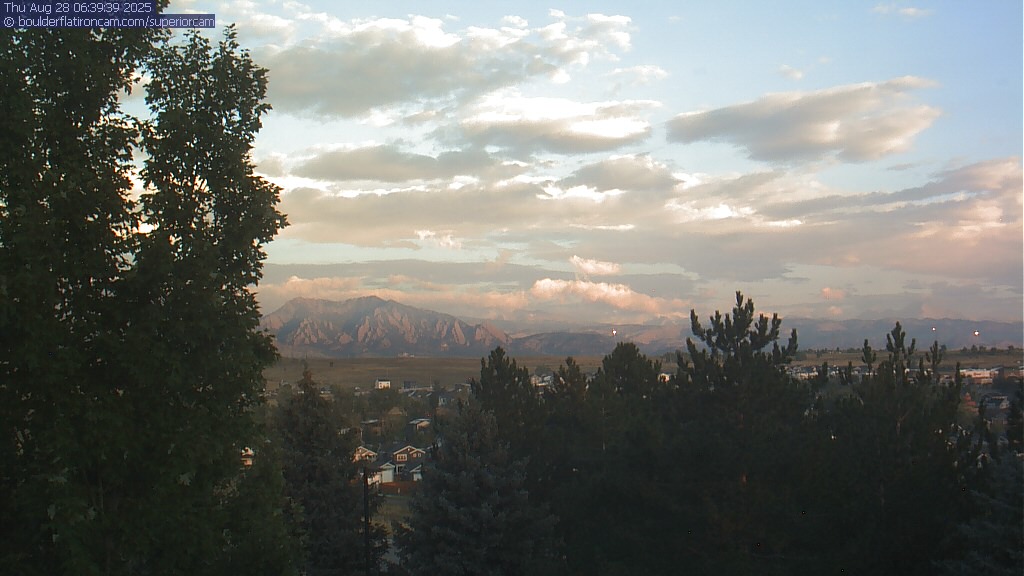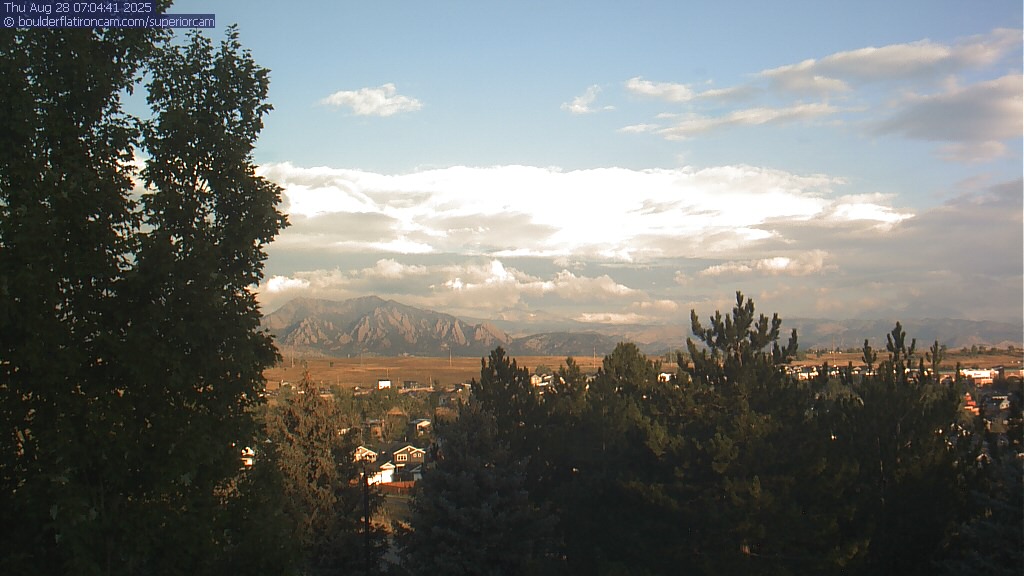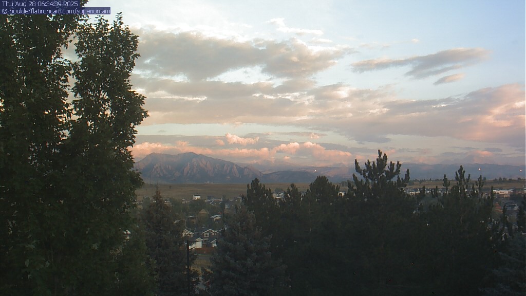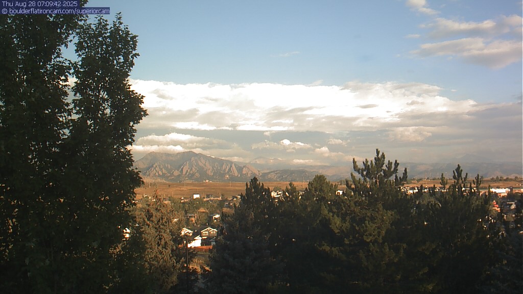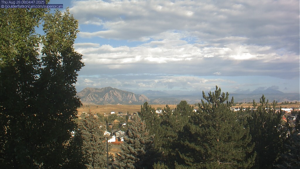 The Superior cam has a great view to the northwest over Boulder, the Flatirons, Indian Peaks and Long’s Peak.   The Coal Creek trail is visible in the foreground with old town Superior.  Thanks to Aweida Venture Partners management for the great view.