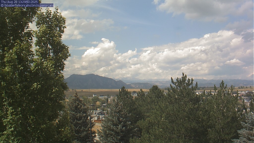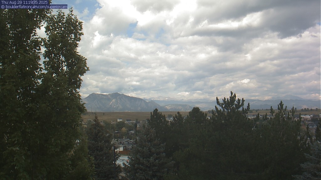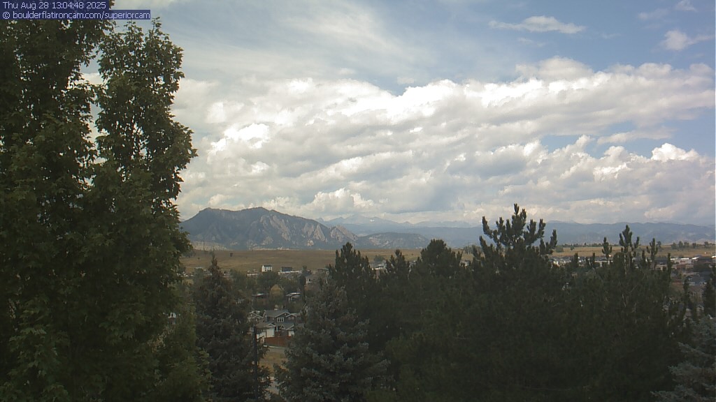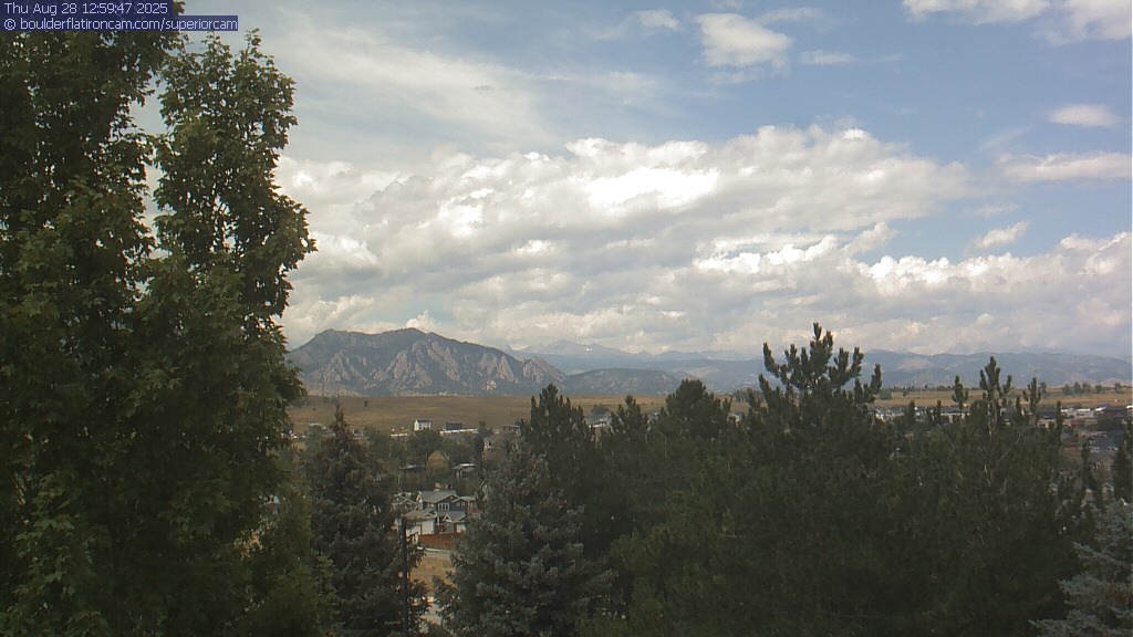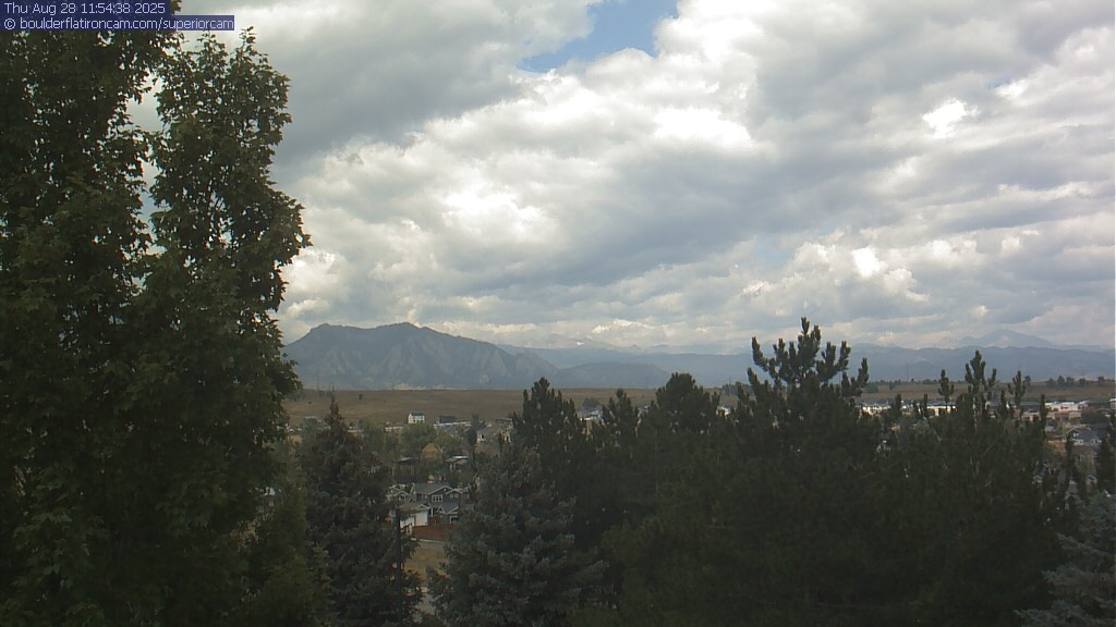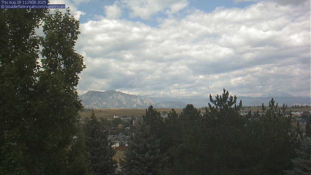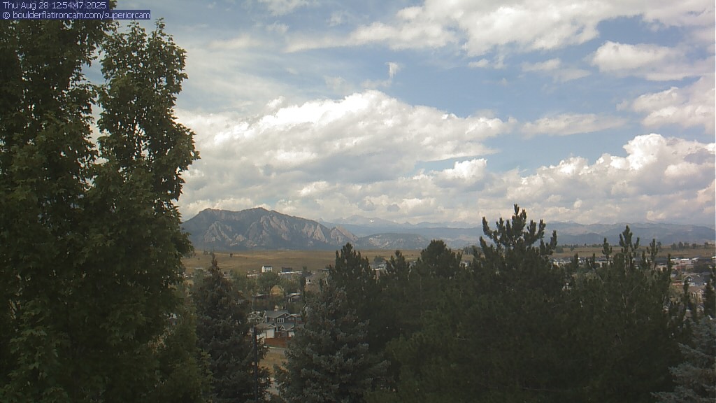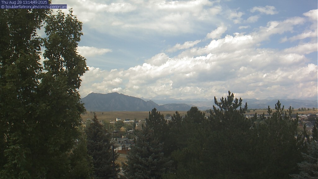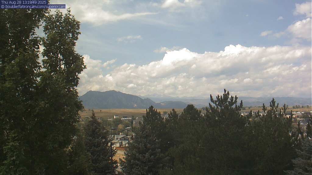 The Superior cam has a great view to the northwest over Boulder, the Flatirons, Indian Peaks and Long’s Peak.   The Coal Creek trail is visible in the foreground with old town Superior.  Thanks to Aweida Venture Partners management for the great view.