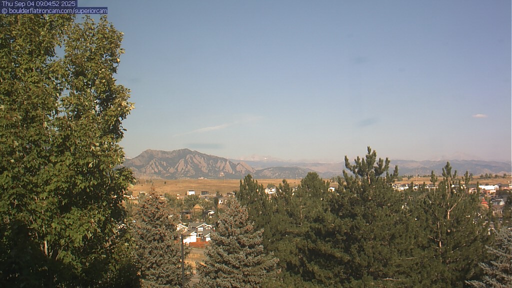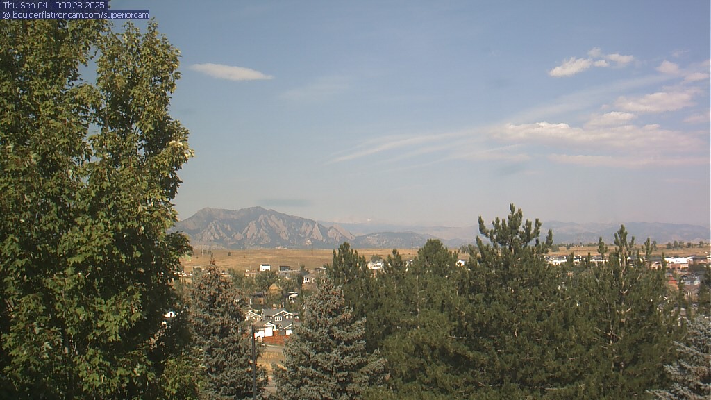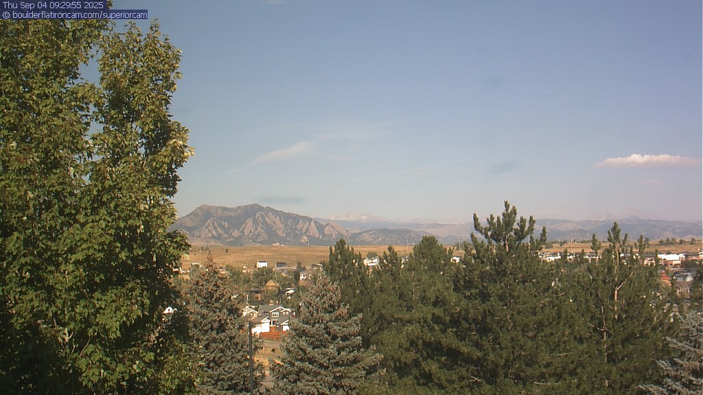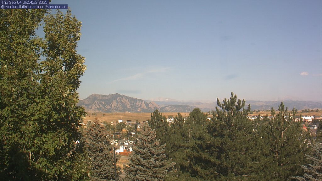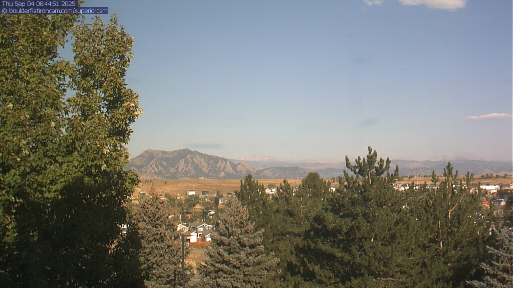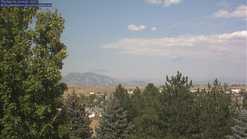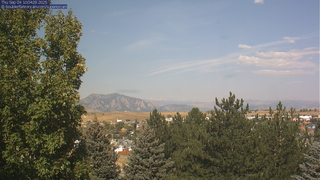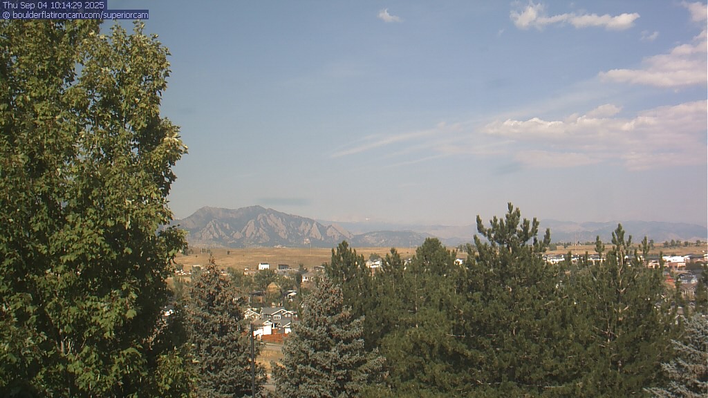 The Superior cam has a great view to the northwest over Boulder, the Flatirons, Indian Peaks and Long’s Peak.   The Coal Creek trail is visible in the foreground with old town Superior.  Thanks to Aweida Venture Partners management for the great view.