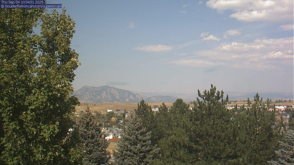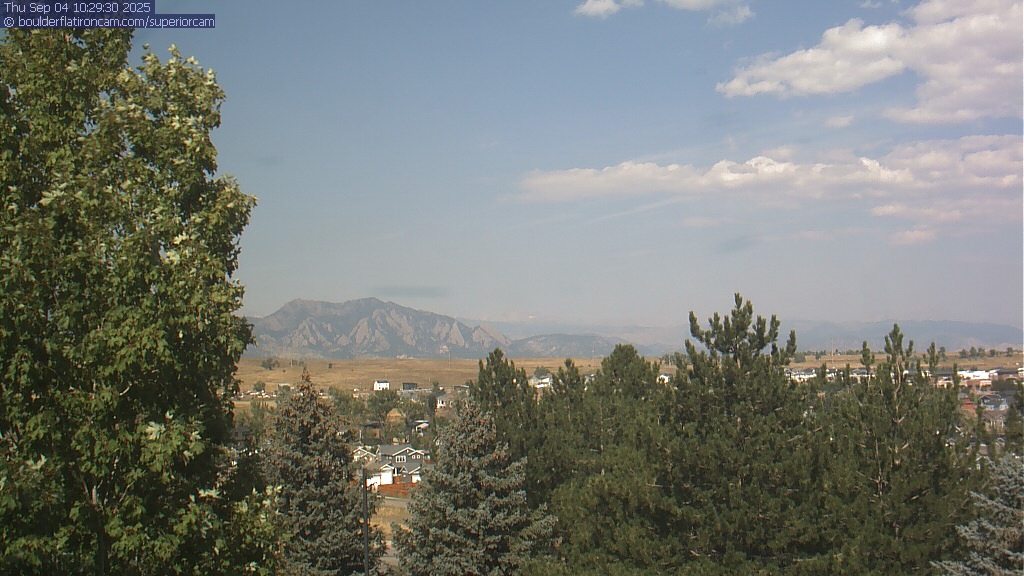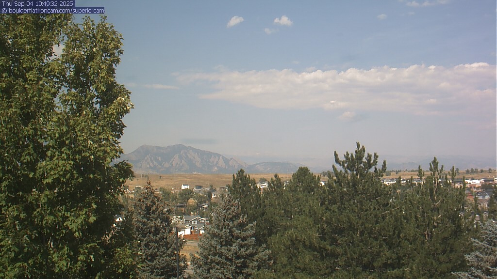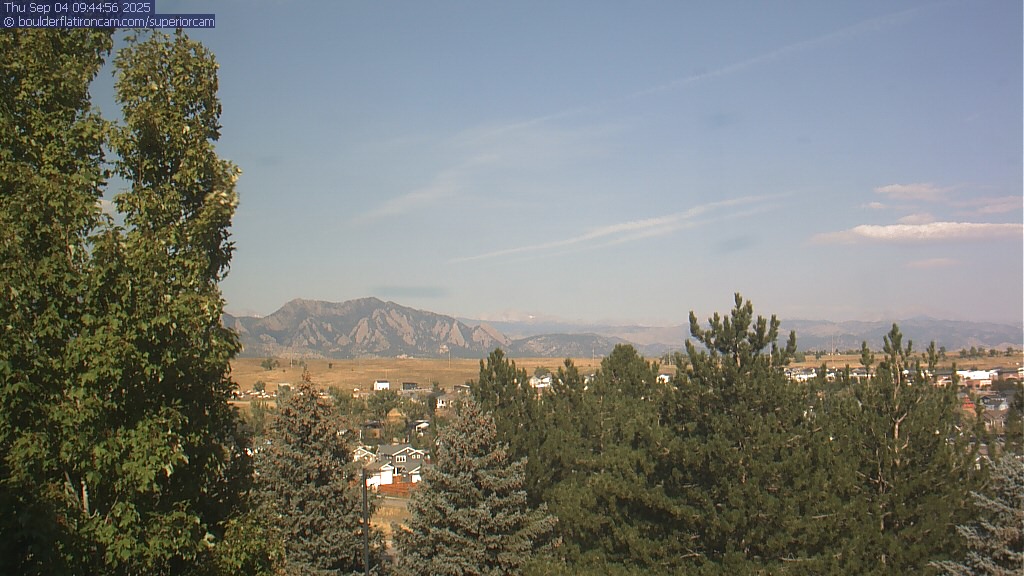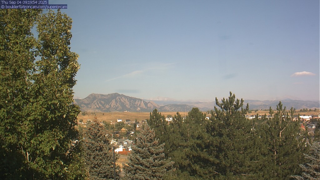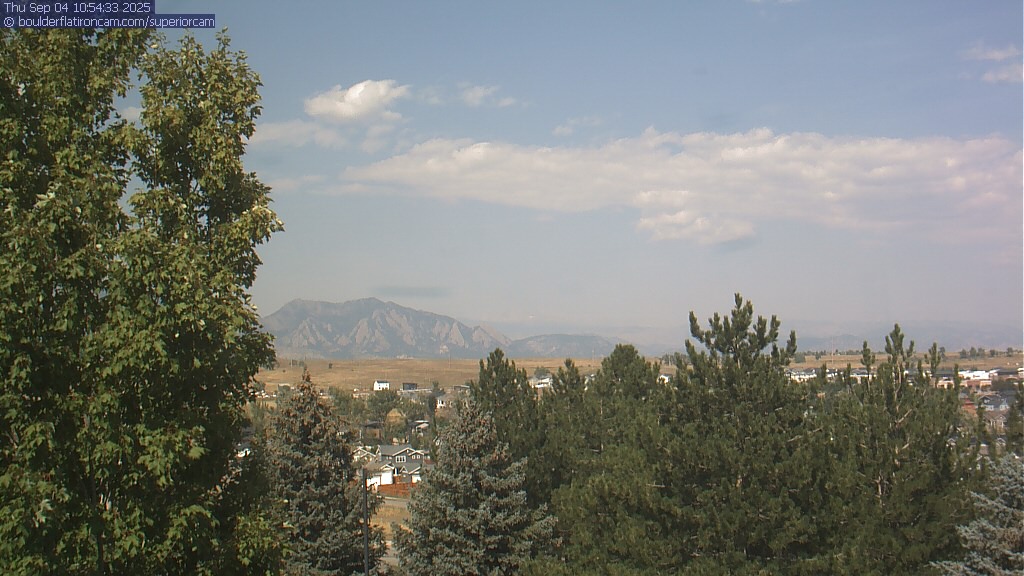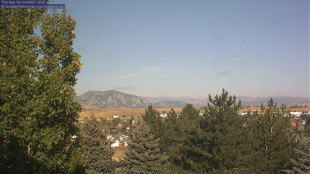 The Superior cam has a great view to the northwest over Boulder, the Flatirons, Indian Peaks and Long’s Peak.   The Coal Creek trail is visible in the foreground with old town Superior.  Thanks to Aweida Venture Partners management for the great view.