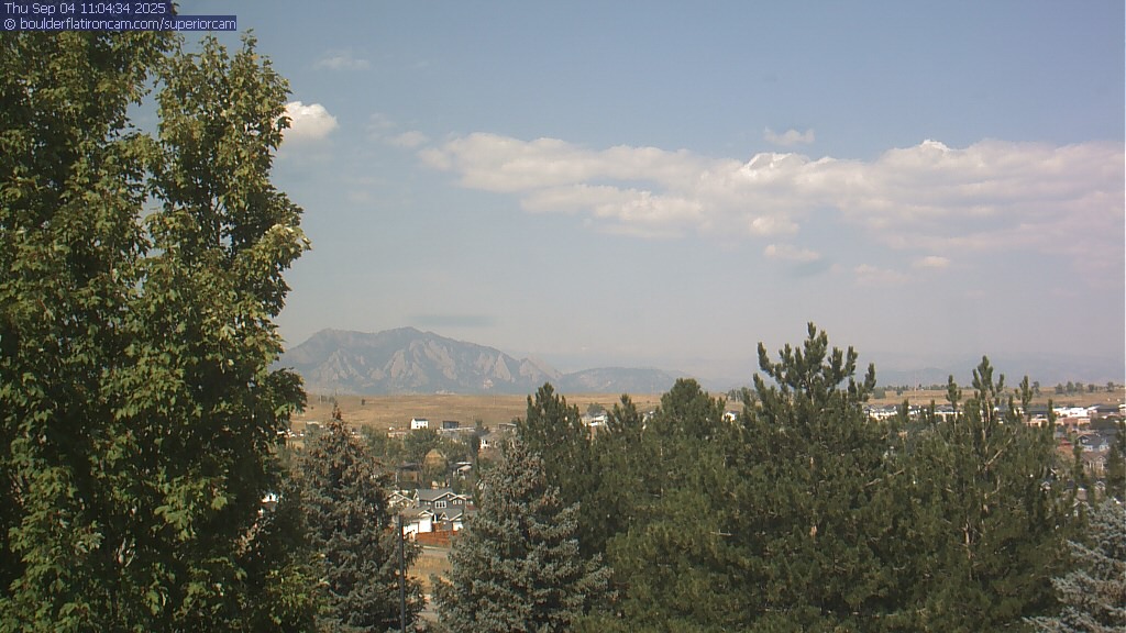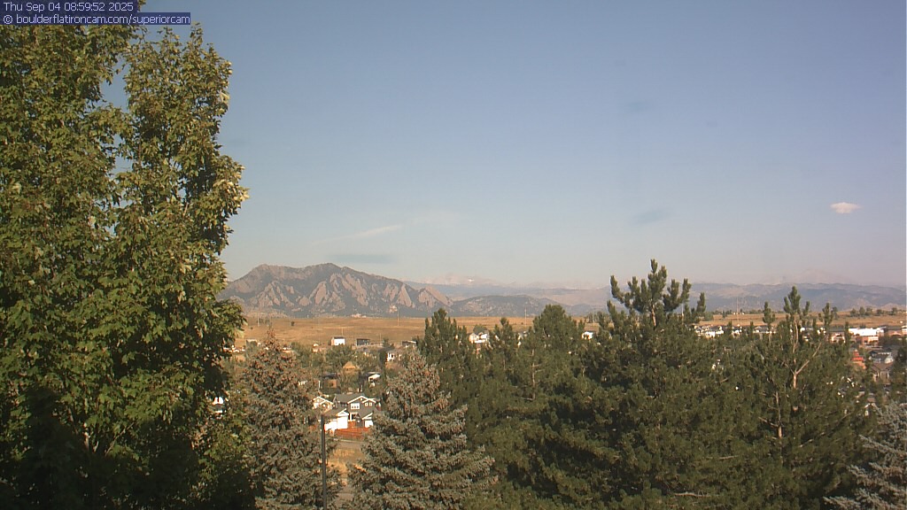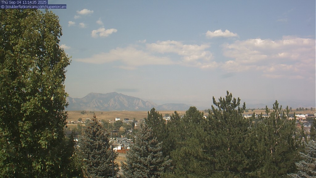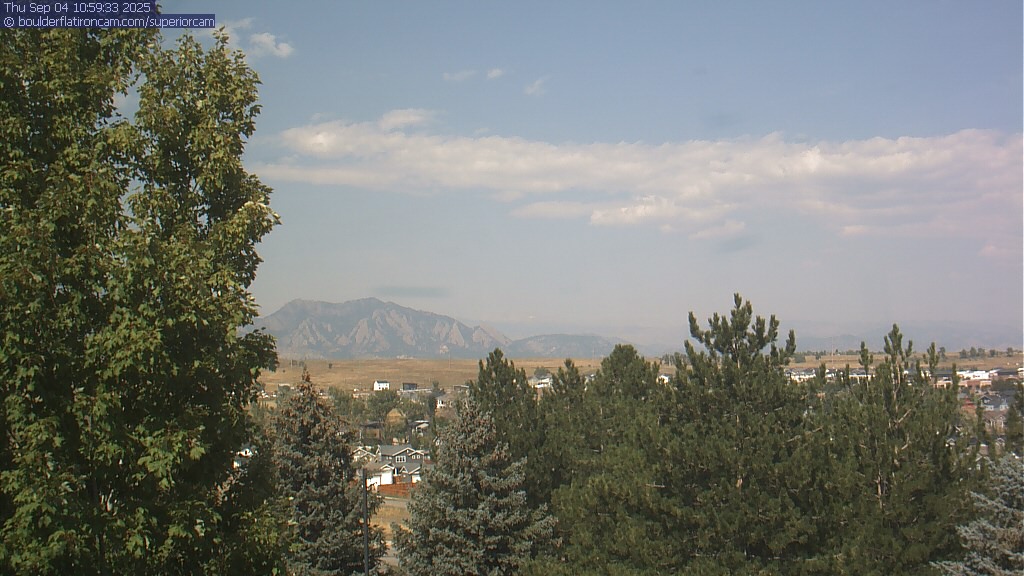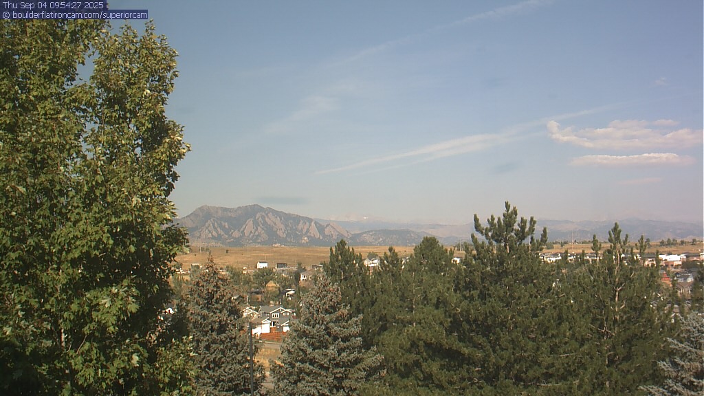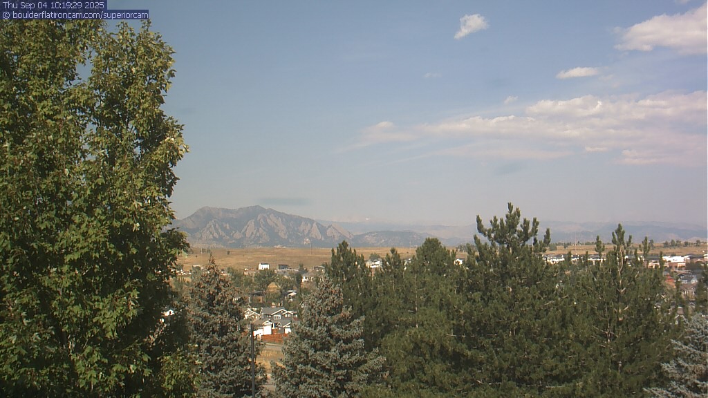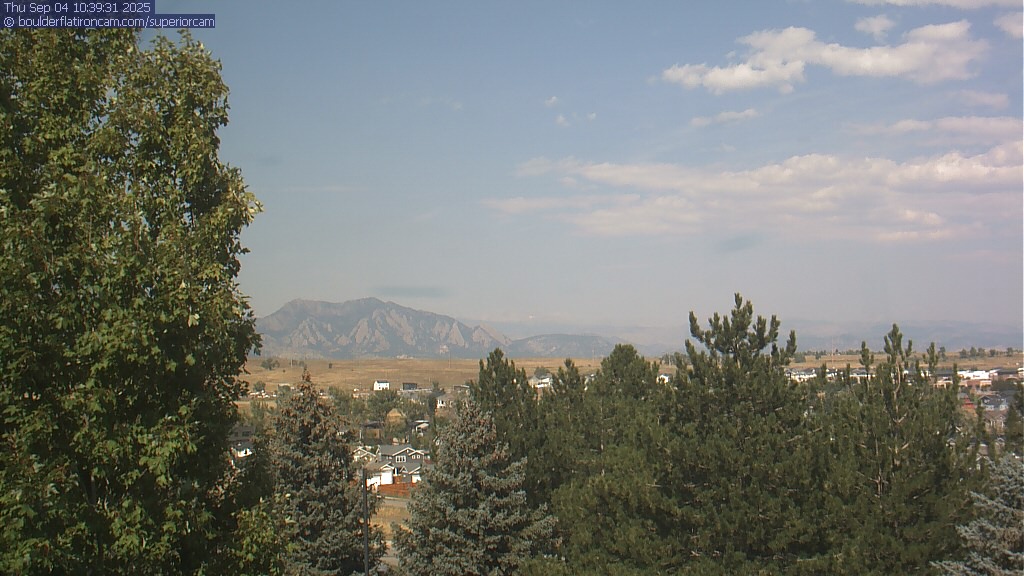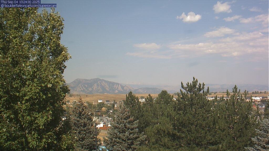 The Superior cam has a great view to the northwest over Boulder, the Flatirons, Indian Peaks and Long’s Peak.   The Coal Creek trail is visible in the foreground with old town Superior.  Thanks to Aweida Venture Partners management for the great view.