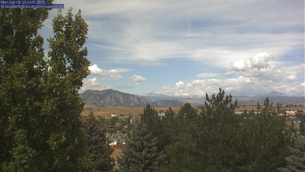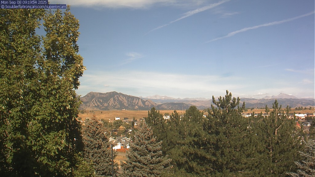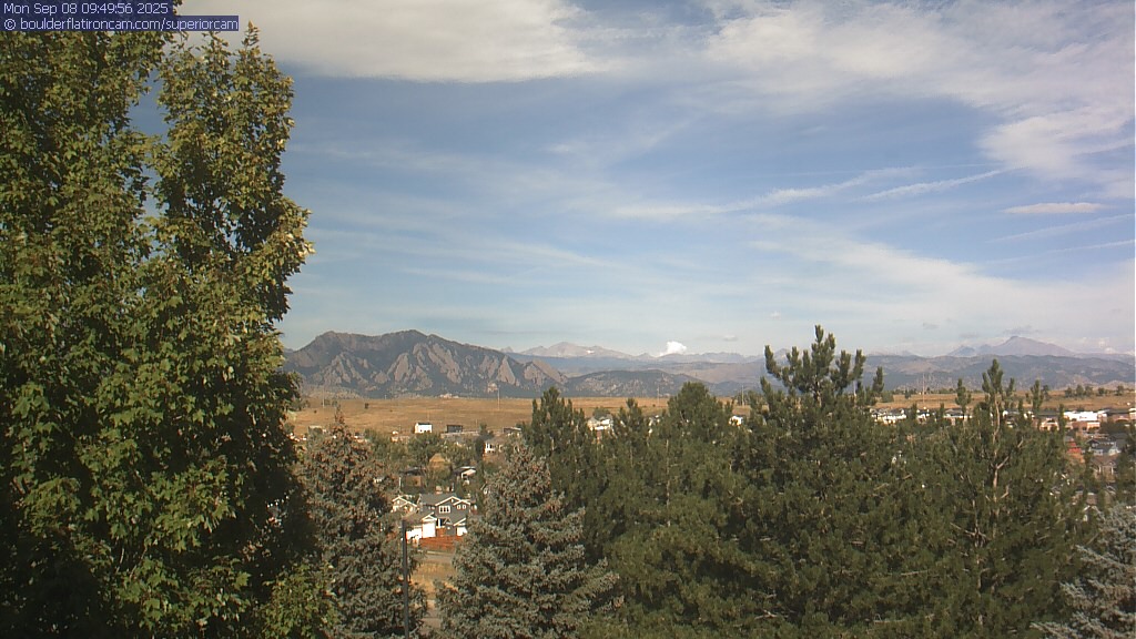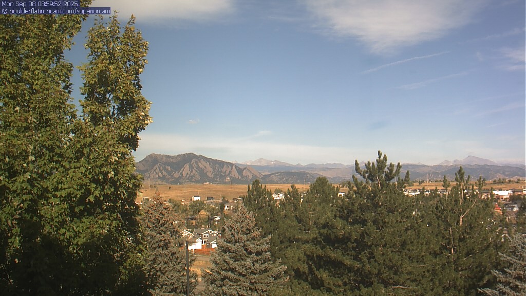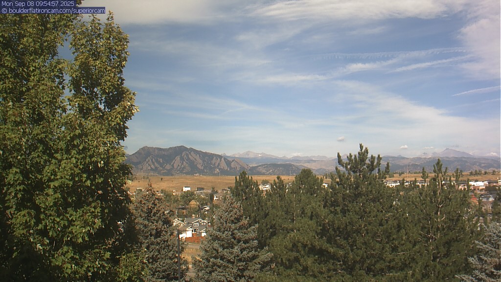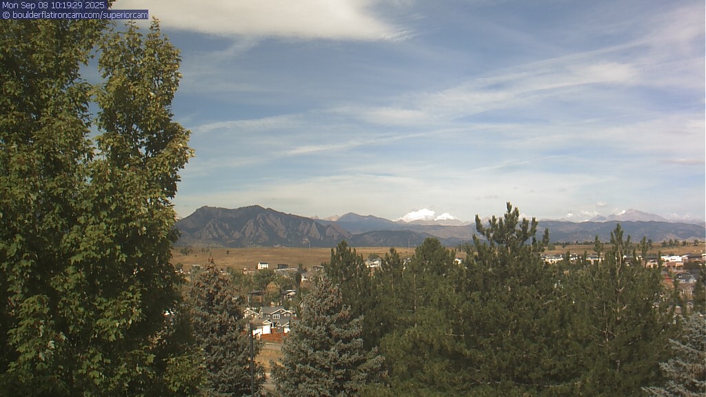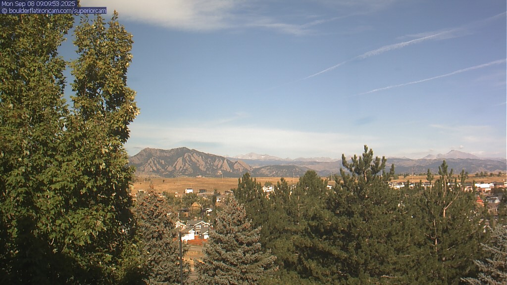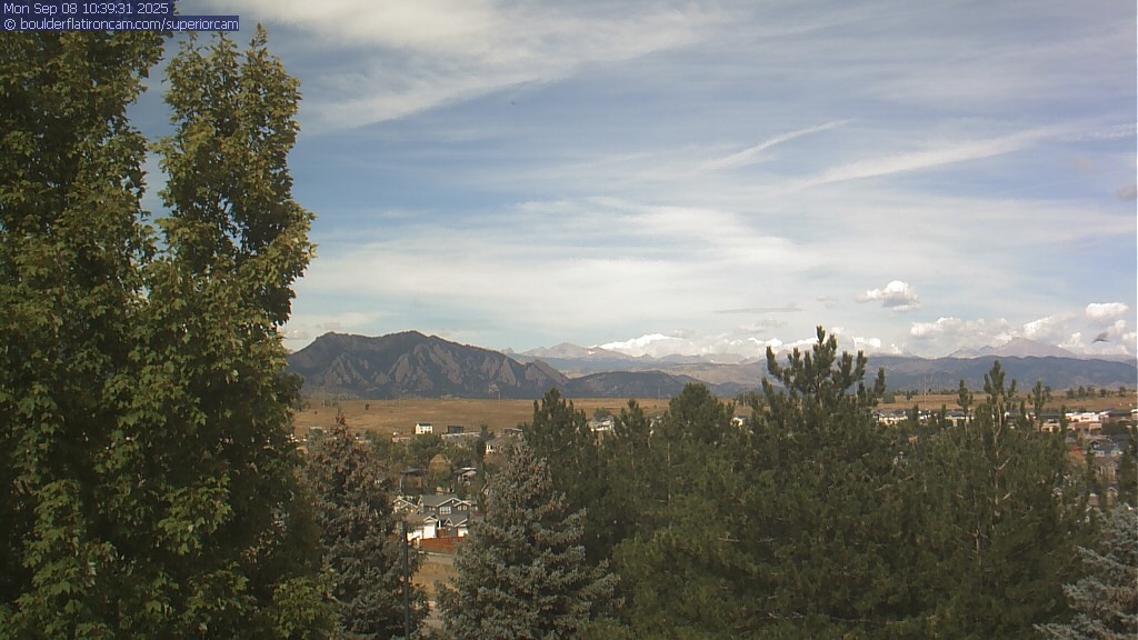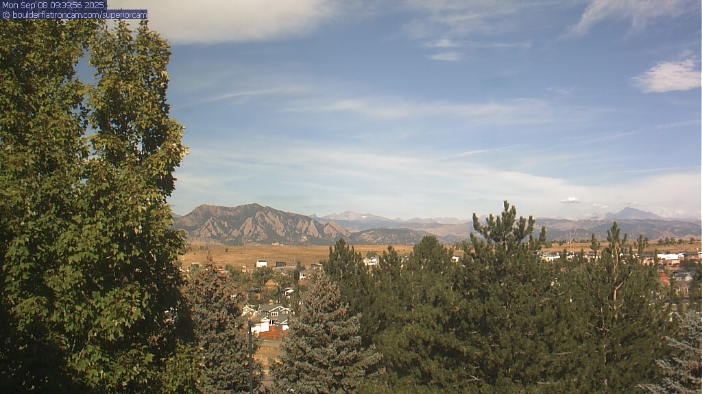 The Superior cam has a great view to the northwest over Boulder, the Flatirons, Indian Peaks and Long’s Peak.   The Coal Creek trail is visible in the foreground with old town Superior.  Thanks to Aweida Venture Partners management for the great view.