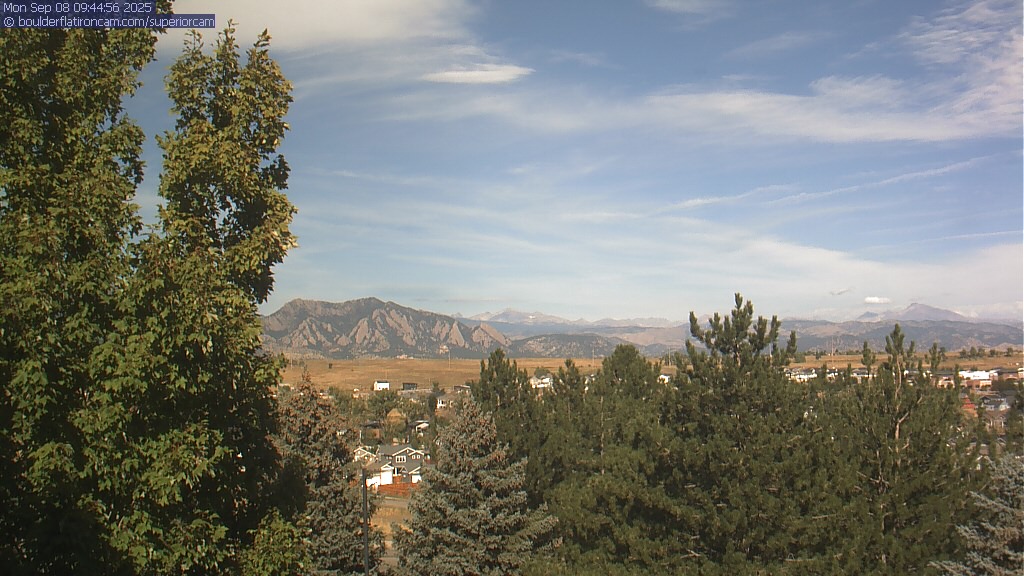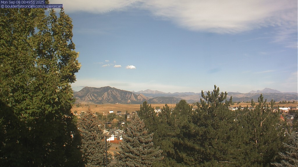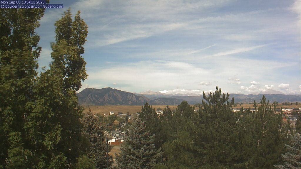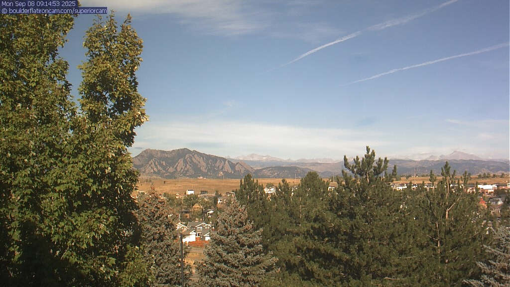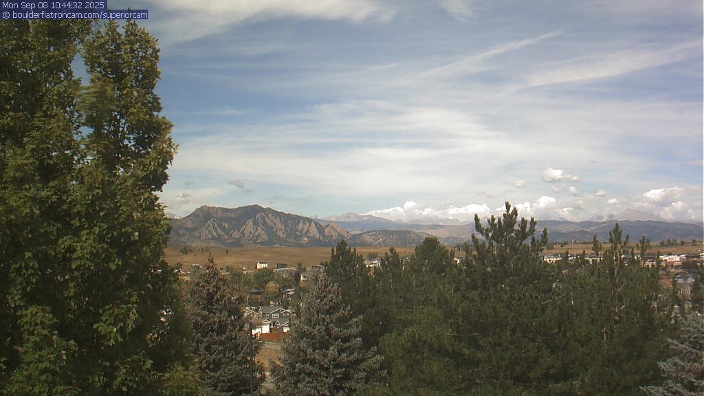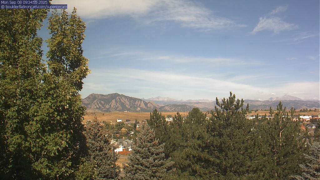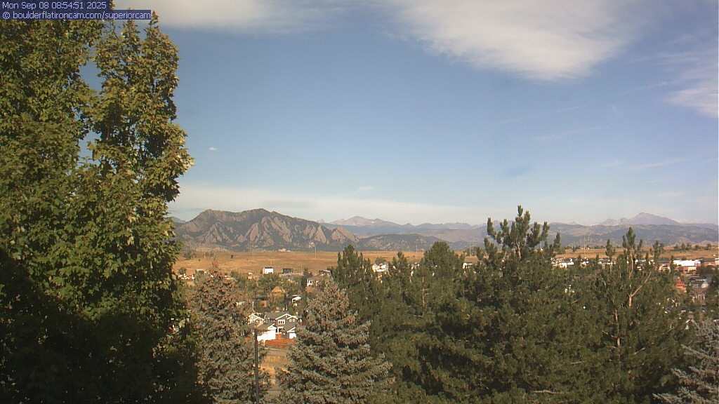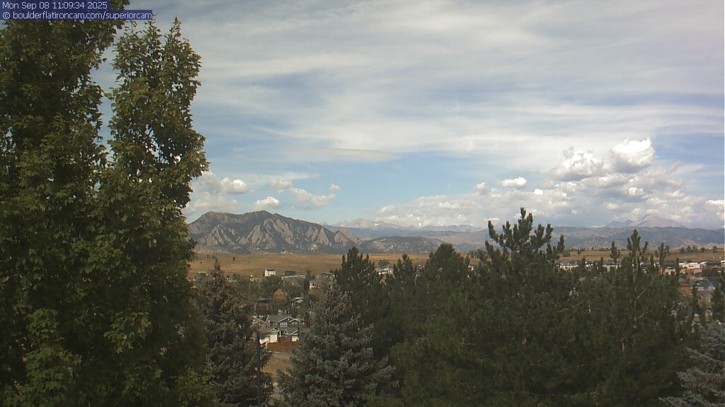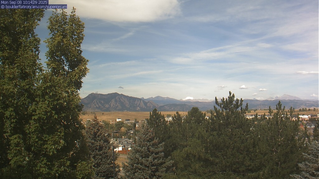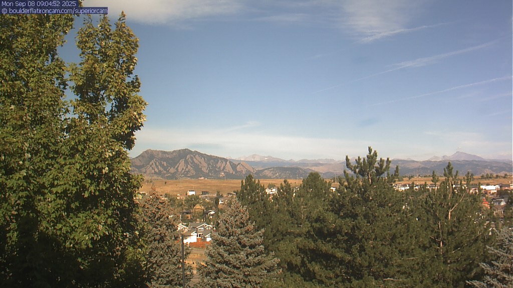 The Superior cam has a great view to the northwest over Boulder, the Flatirons, Indian Peaks and Long’s Peak.   The Coal Creek trail is visible in the foreground with old town Superior.  Thanks to Aweida Venture Partners management for the great view.