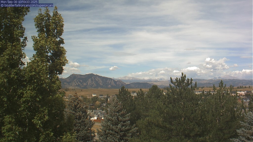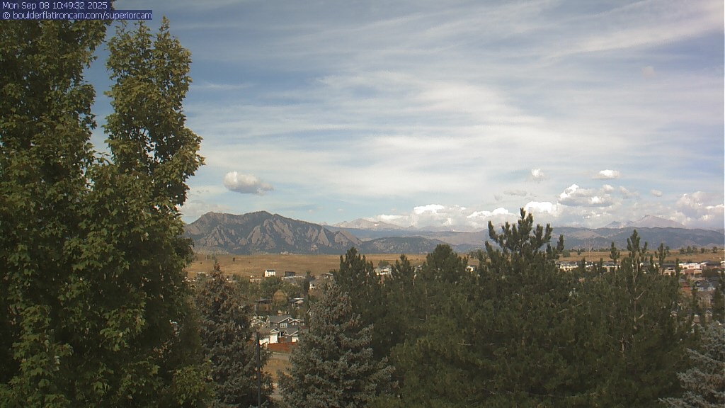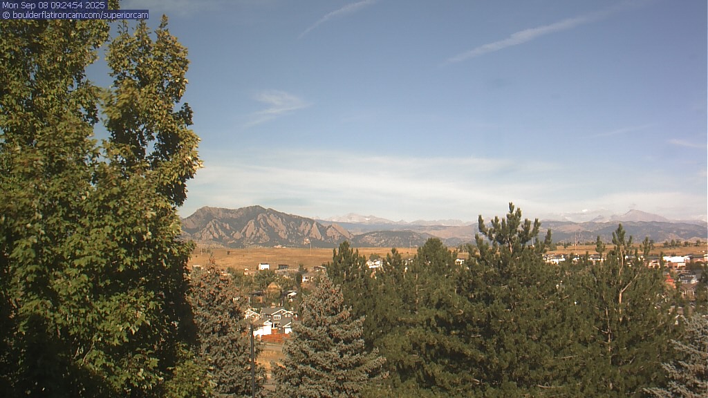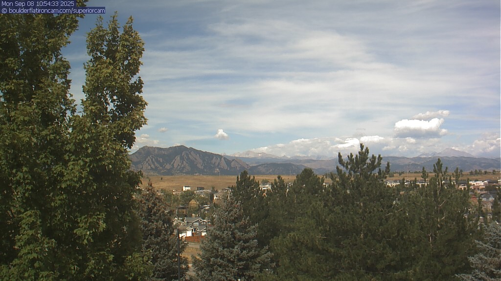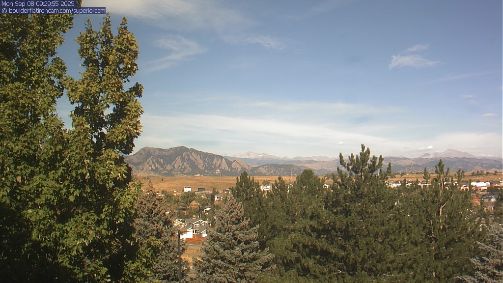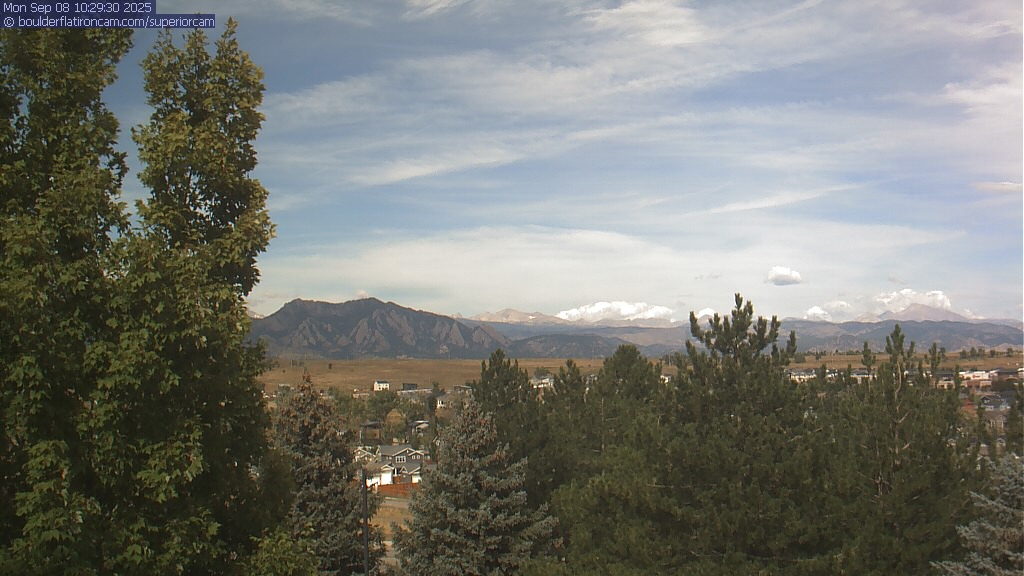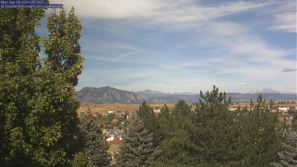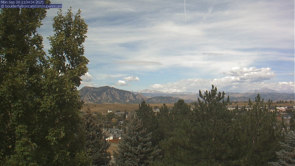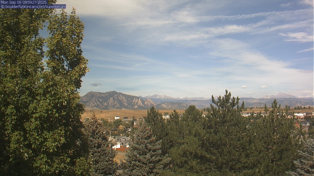 The Superior cam has a great view to the northwest over Boulder, the Flatirons, Indian Peaks and Long’s Peak.   The Coal Creek trail is visible in the foreground with old town Superior.  Thanks to Aweida Venture Partners management for the great view.