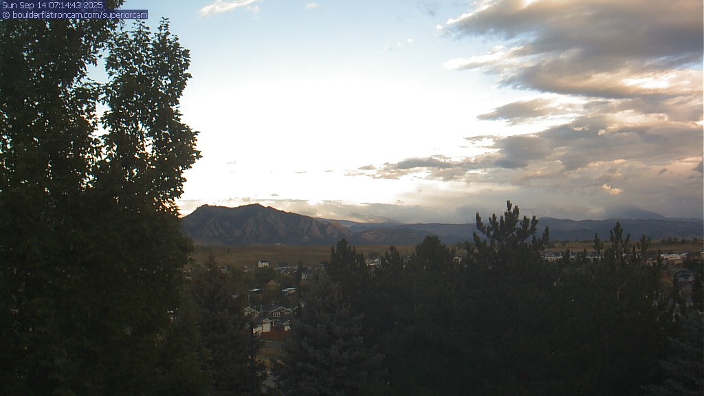The Superior cam has a great view to the northwest over Boulder, the Flatirons, Indian Peaks and Long’s Peak.   The Coal Creek trail is visible in the foreground with old town Superior.  Thanks to Aweida Venture Partners management for the great view.