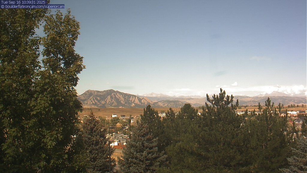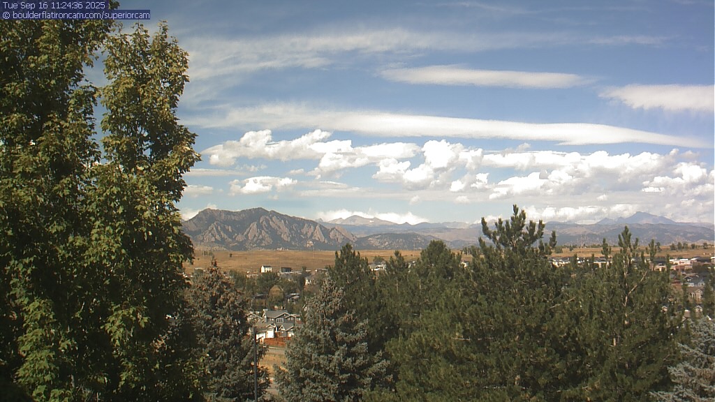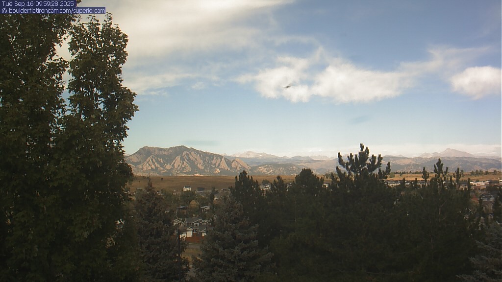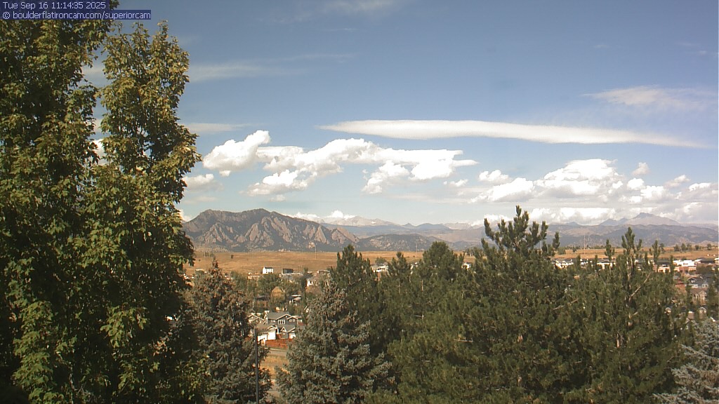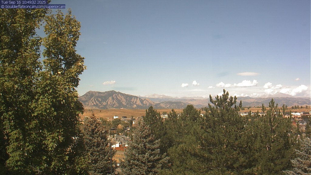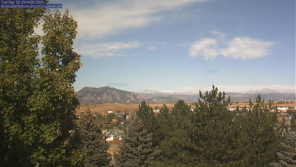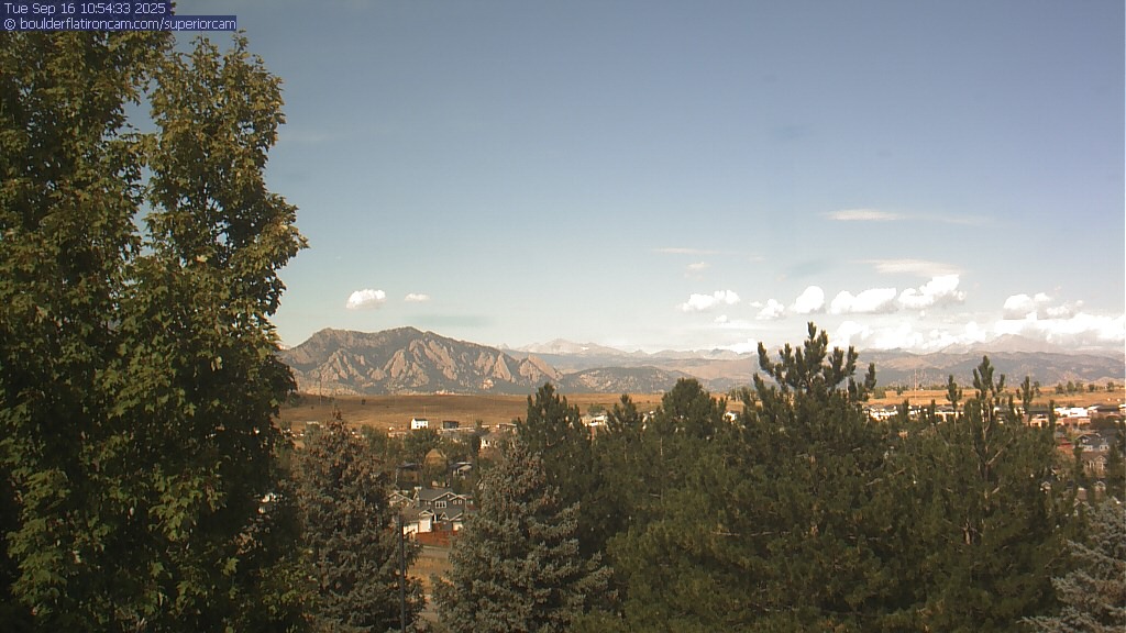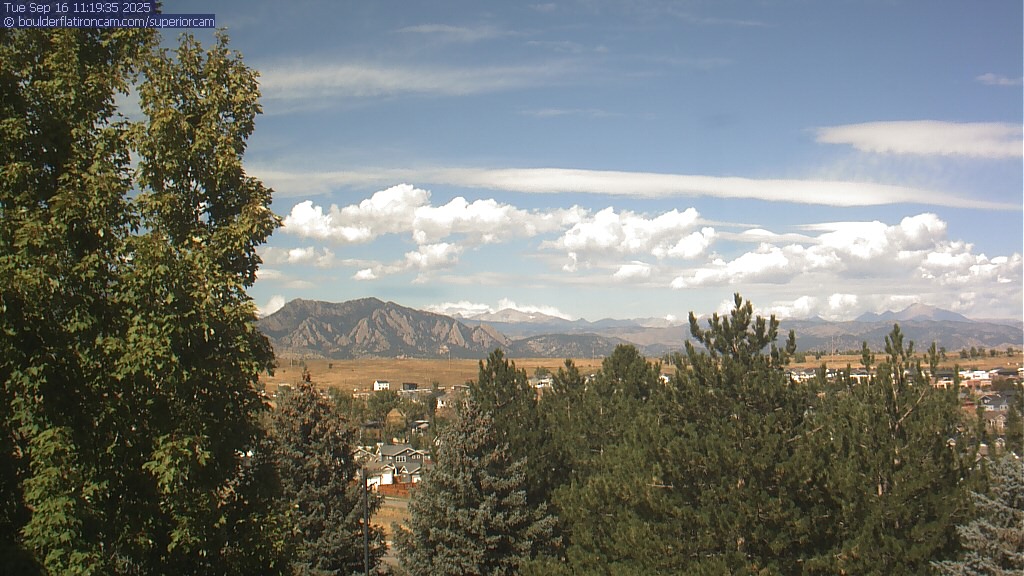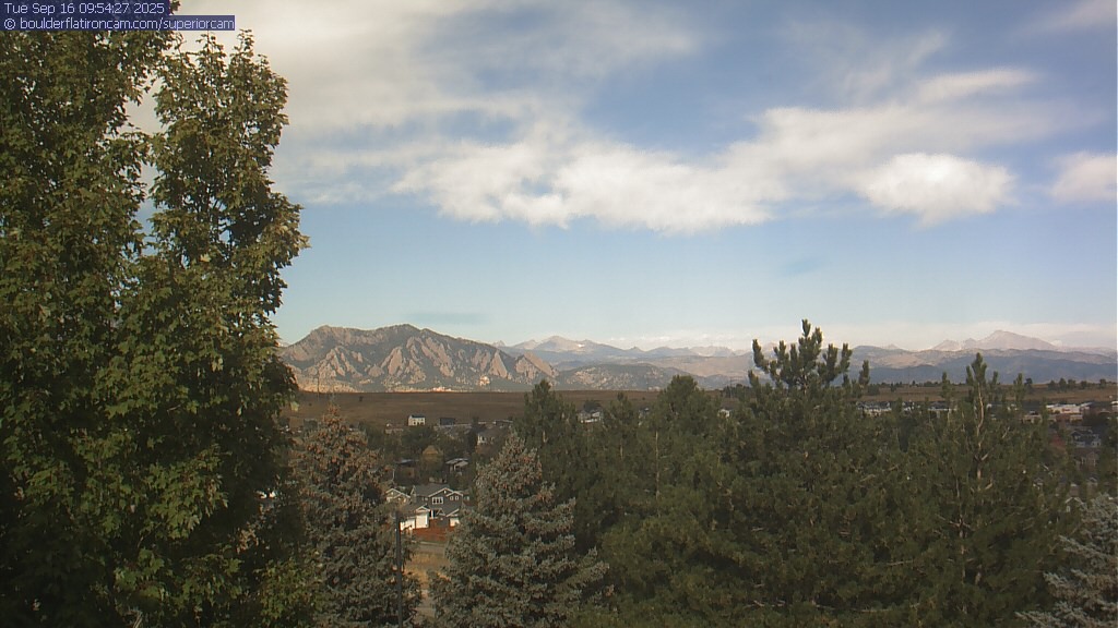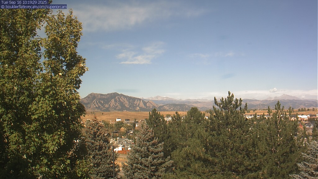 The Superior cam has a great view to the northwest over Boulder, the Flatirons, Indian Peaks and Long’s Peak.   The Coal Creek trail is visible in the foreground with old town Superior.  Thanks to Aweida Venture Partners management for the great view.