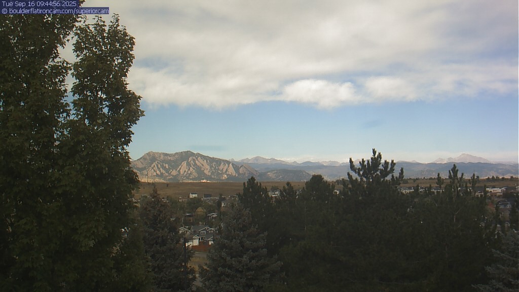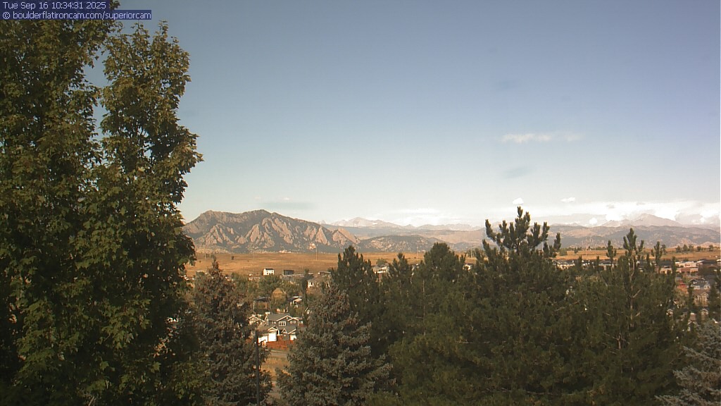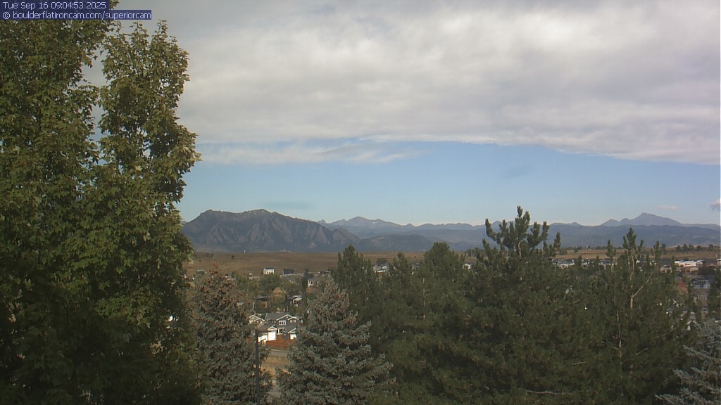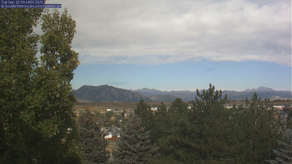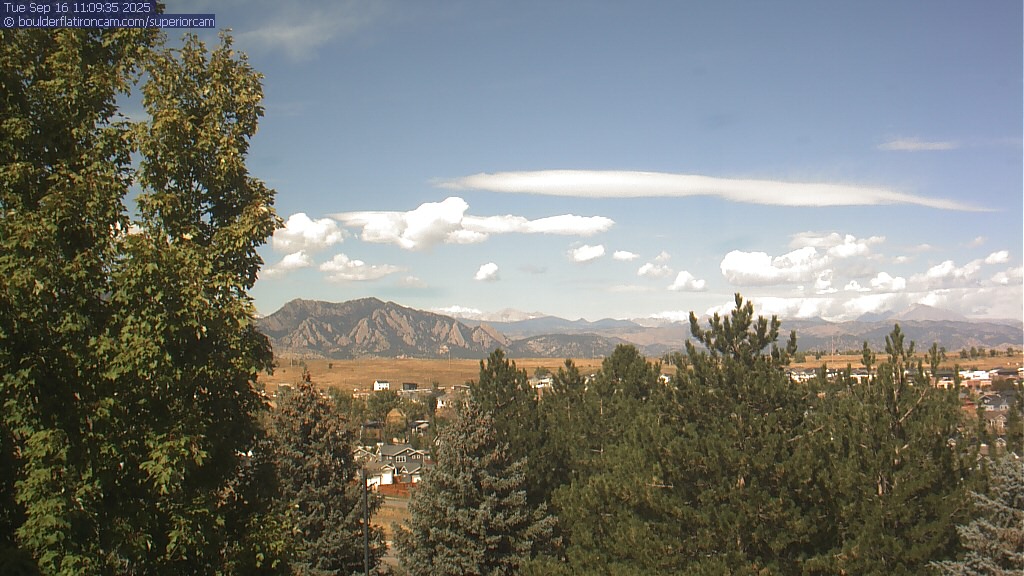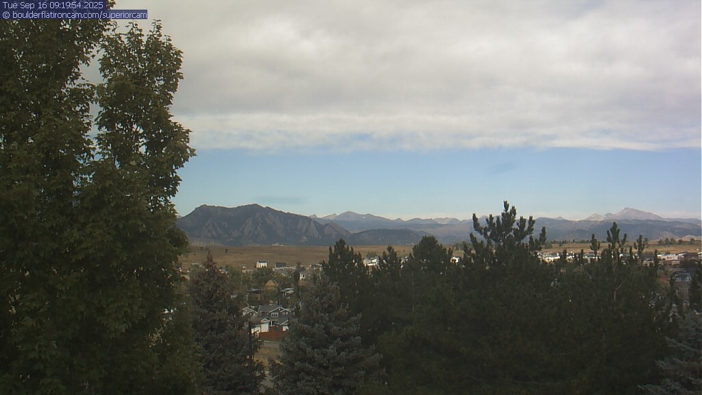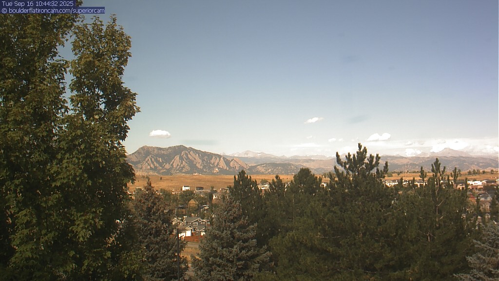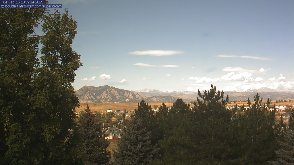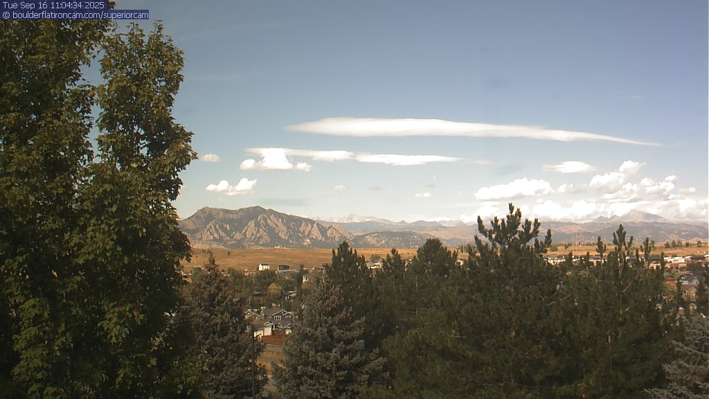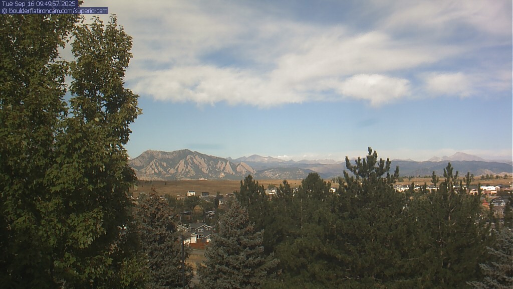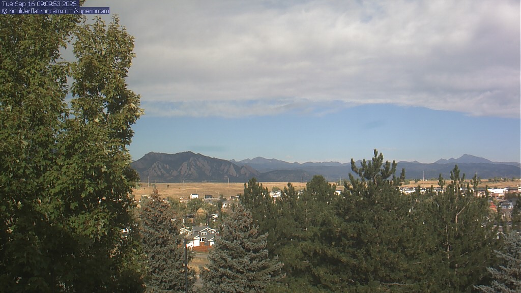 The Superior cam has a great view to the northwest over Boulder, the Flatirons, Indian Peaks and Long’s Peak.   The Coal Creek trail is visible in the foreground with old town Superior.  Thanks to Aweida Venture Partners management for the great view.