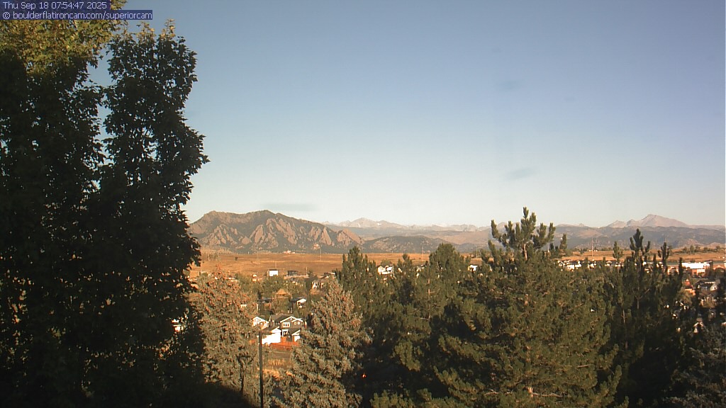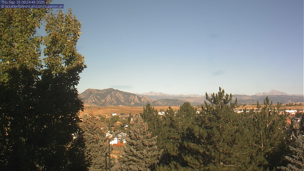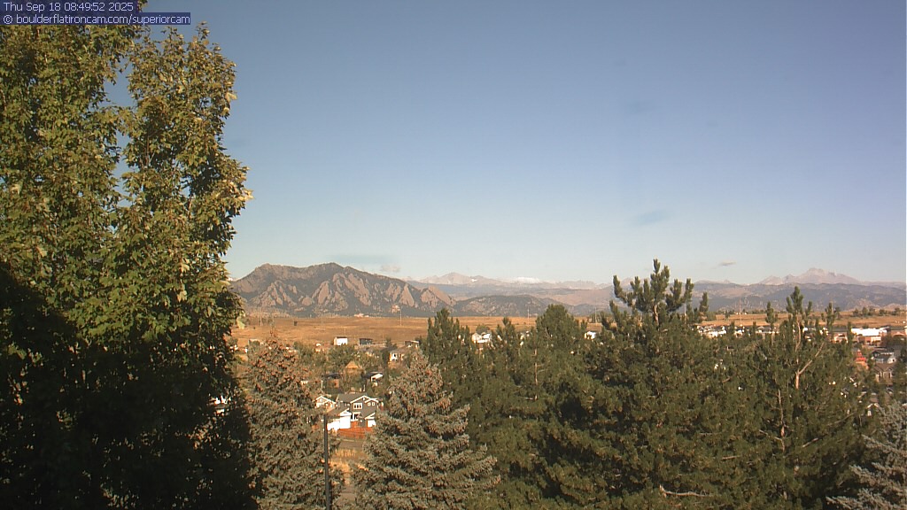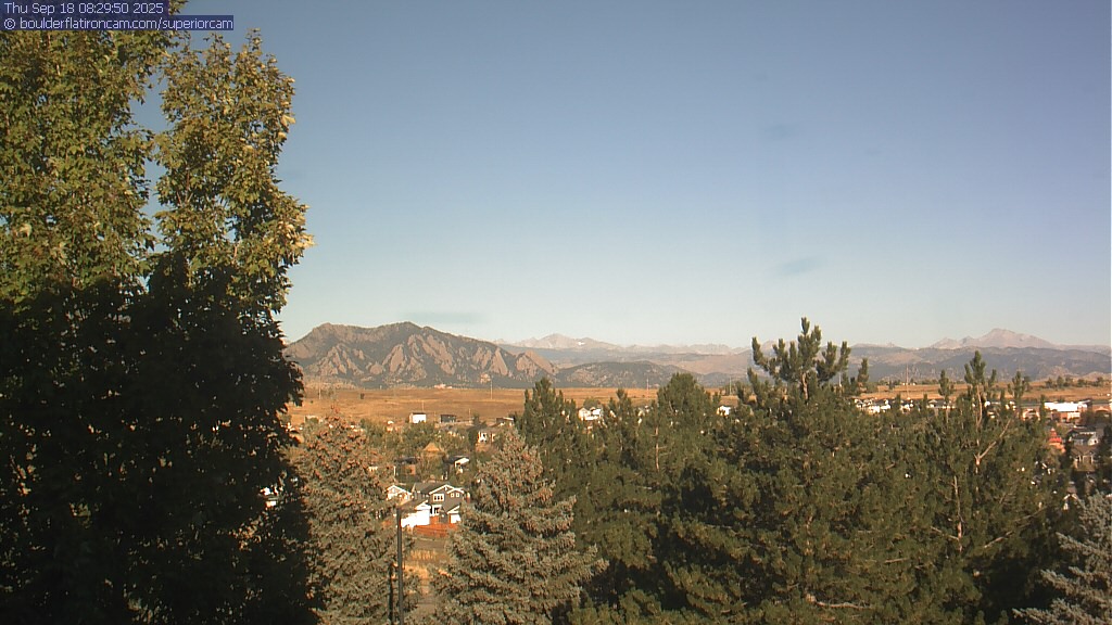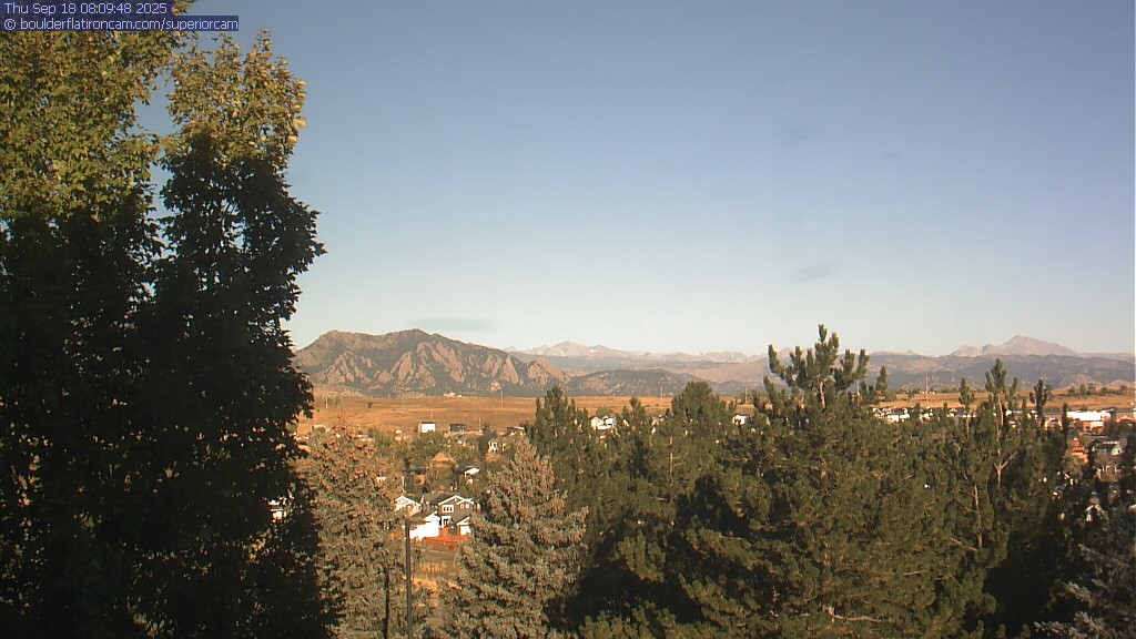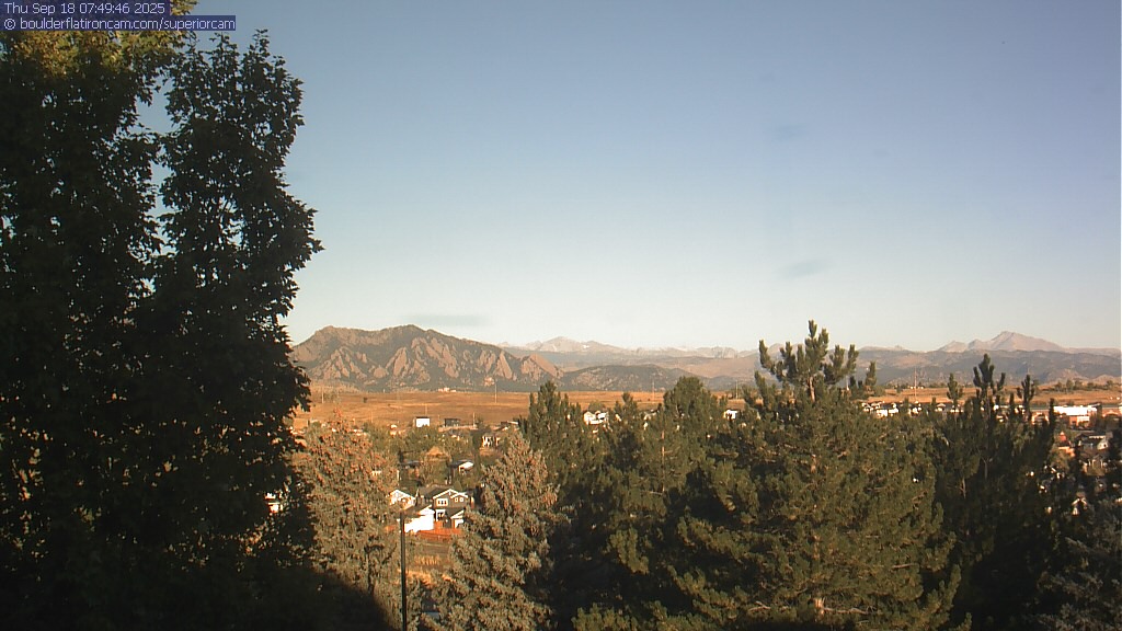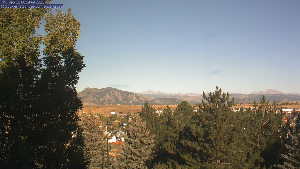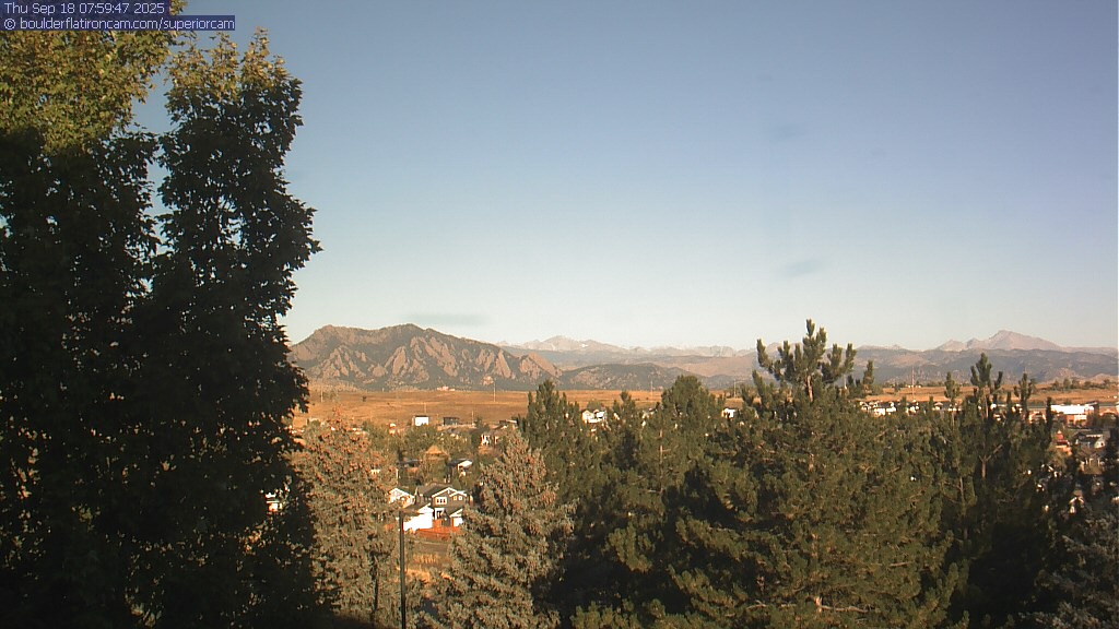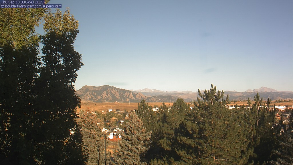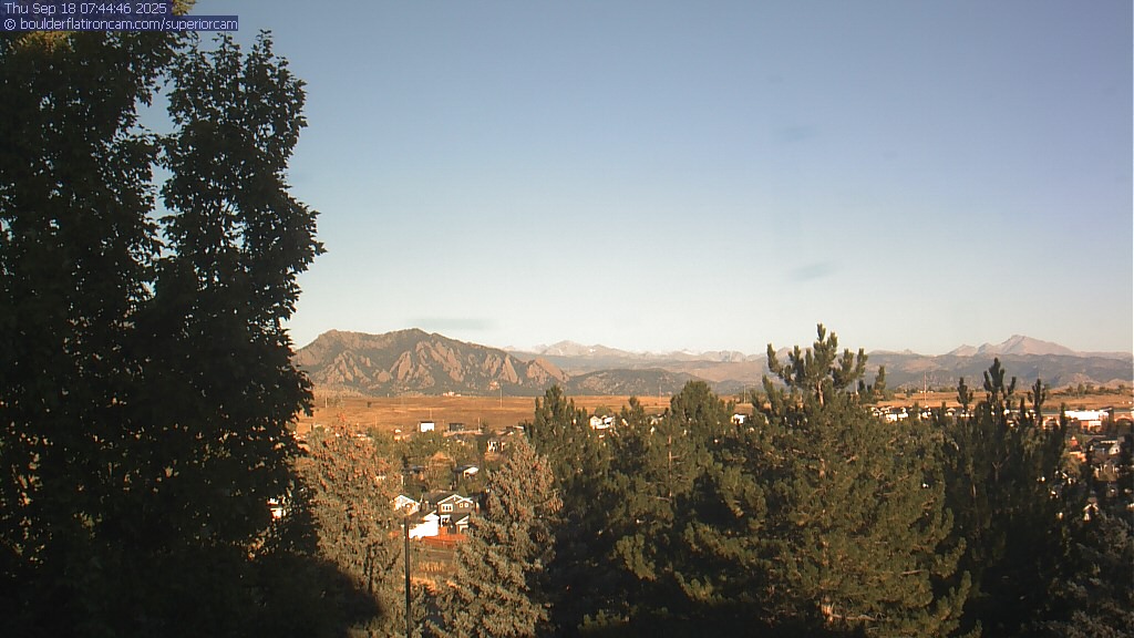 The Superior cam has a great view to the northwest over Boulder, the Flatirons, Indian Peaks and Long’s Peak.   The Coal Creek trail is visible in the foreground with old town Superior.  Thanks to Aweida Venture Partners management for the great view.