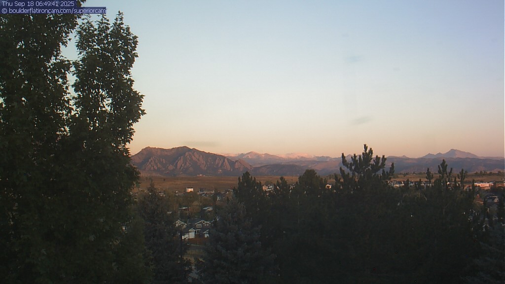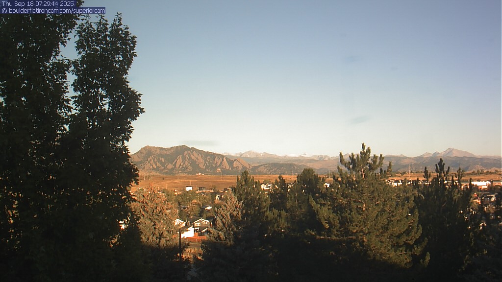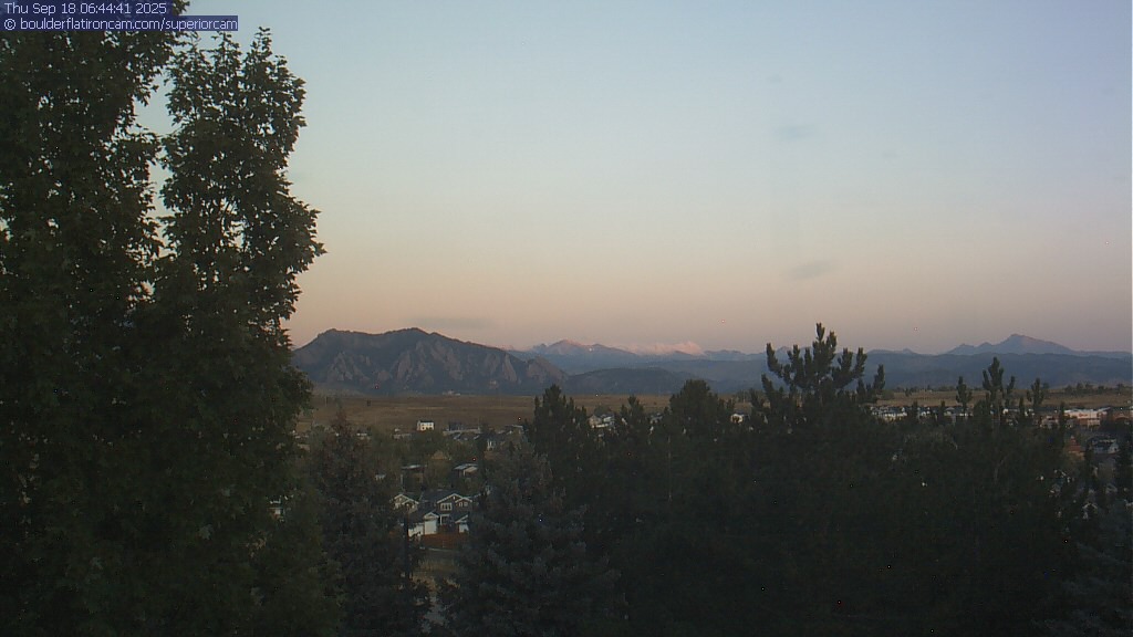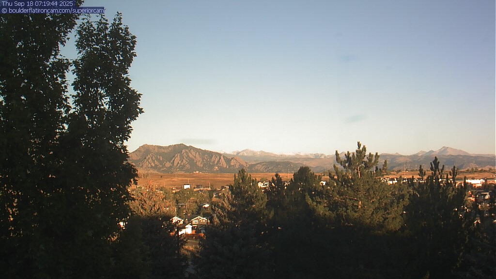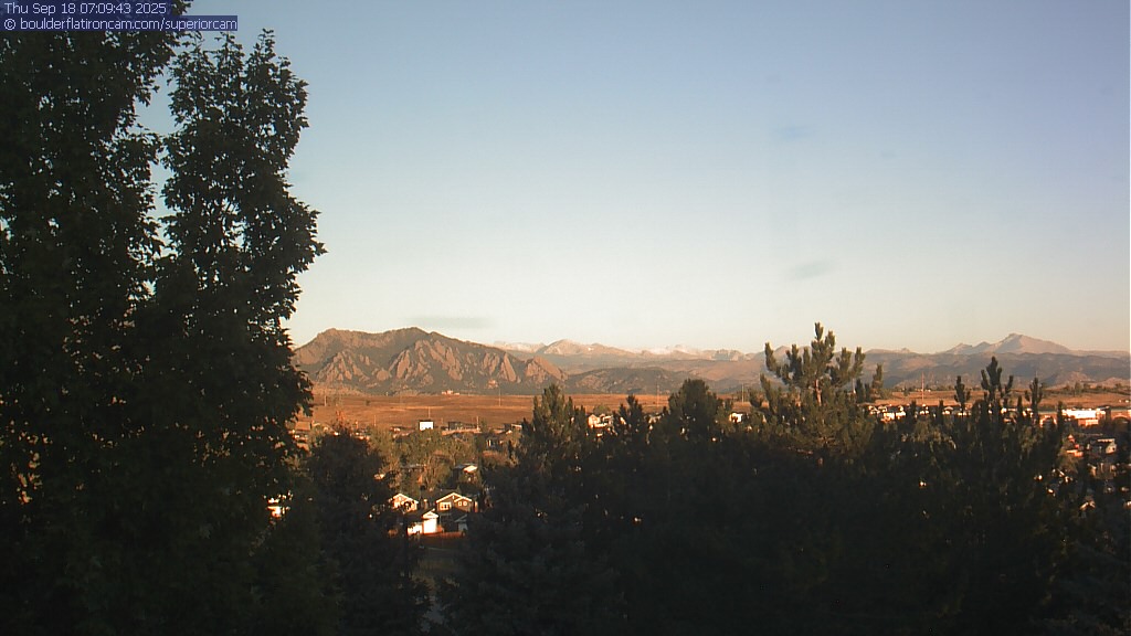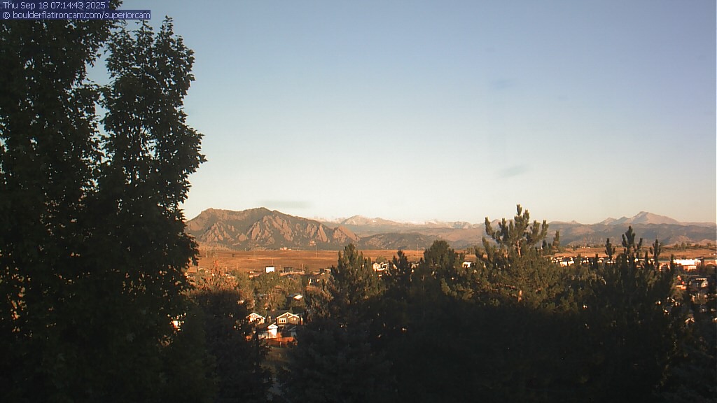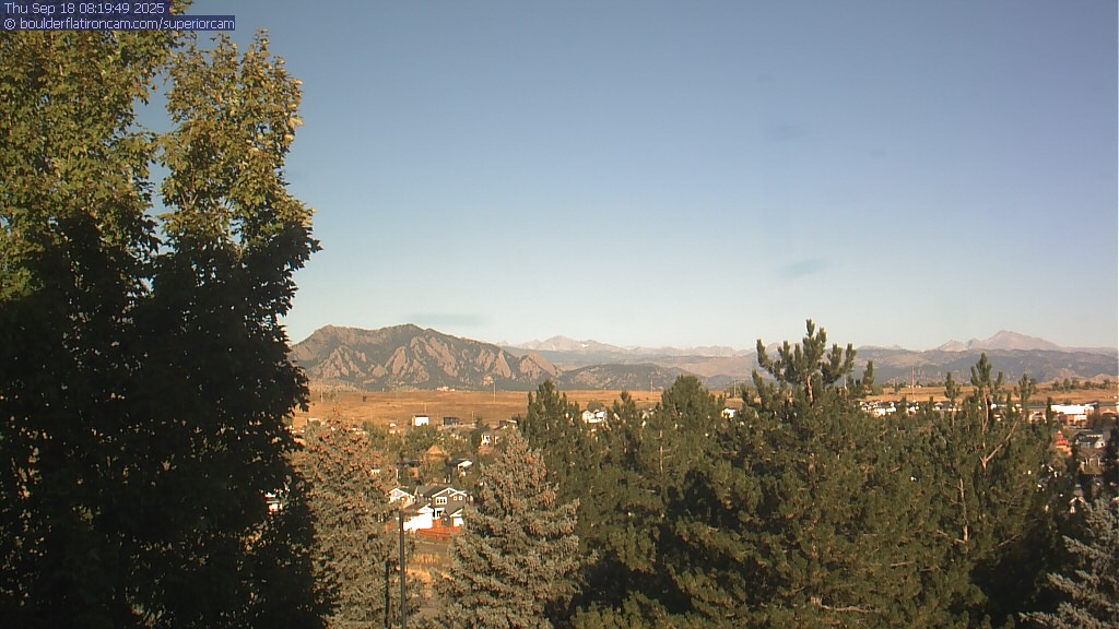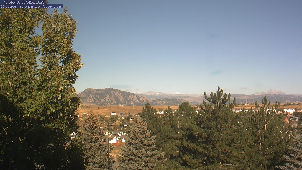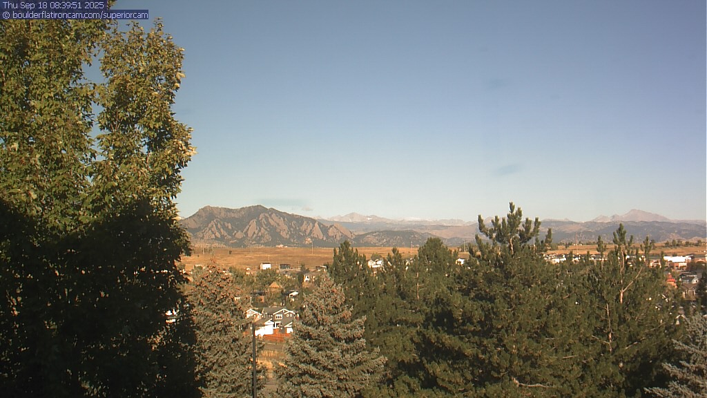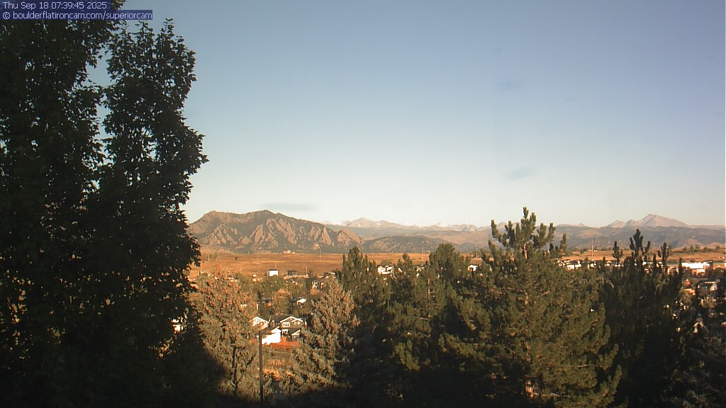 The Superior cam has a great view to the northwest over Boulder, the Flatirons, Indian Peaks and Long’s Peak.   The Coal Creek trail is visible in the foreground with old town Superior.  Thanks to Aweida Venture Partners management for the great view.