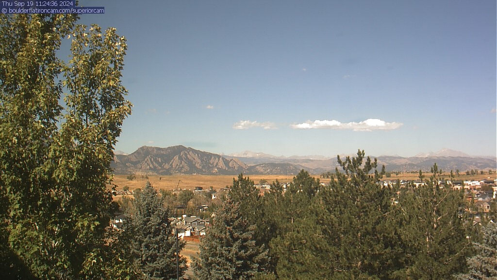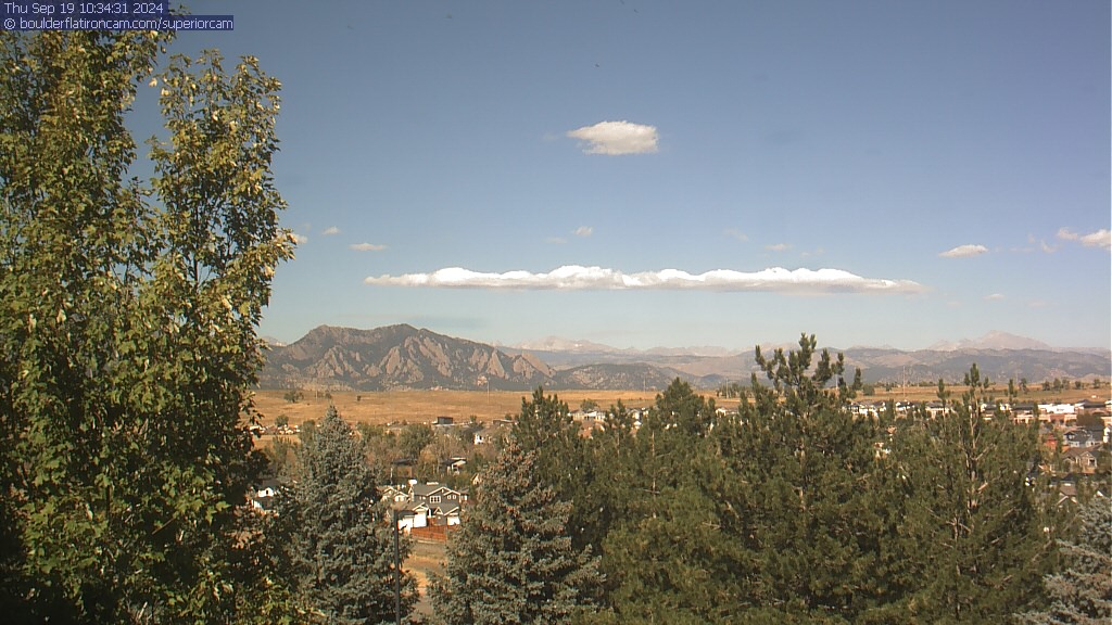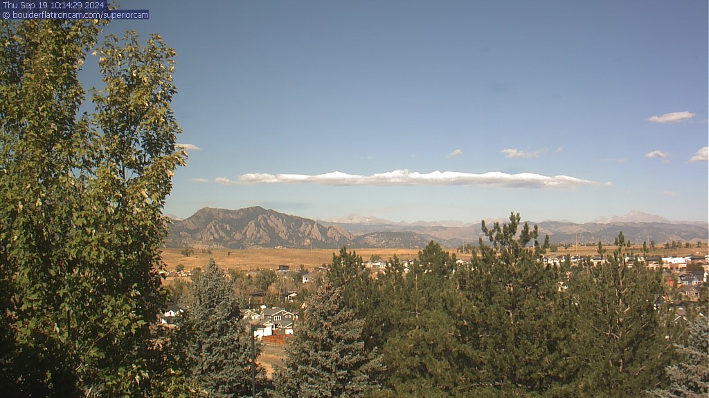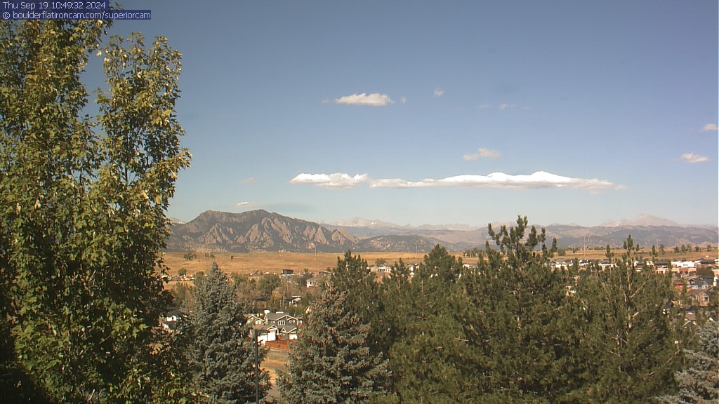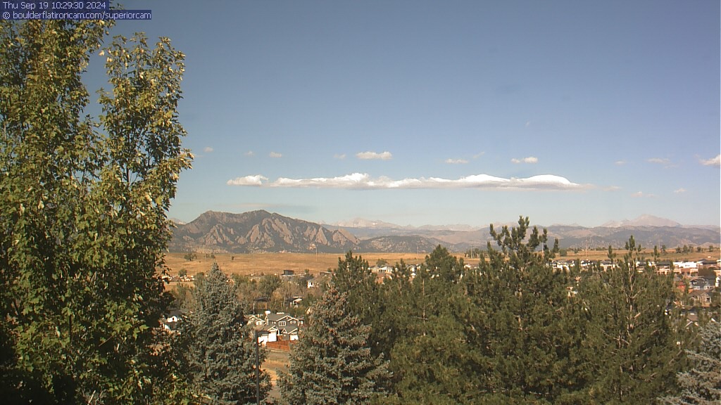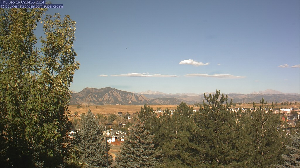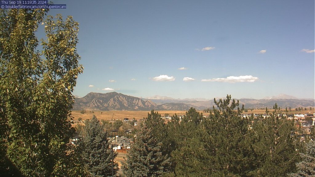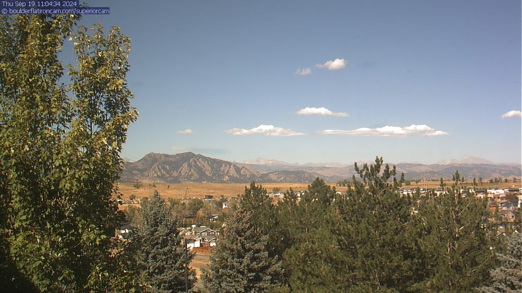 The Superior cam has a great view to the northwest over Boulder, the Flatirons, Indian Peaks and Long’s Peak.   The Coal Creek trail is visible in the foreground with old town Superior.  Thanks to Aweida Venture Partners management for the great view.