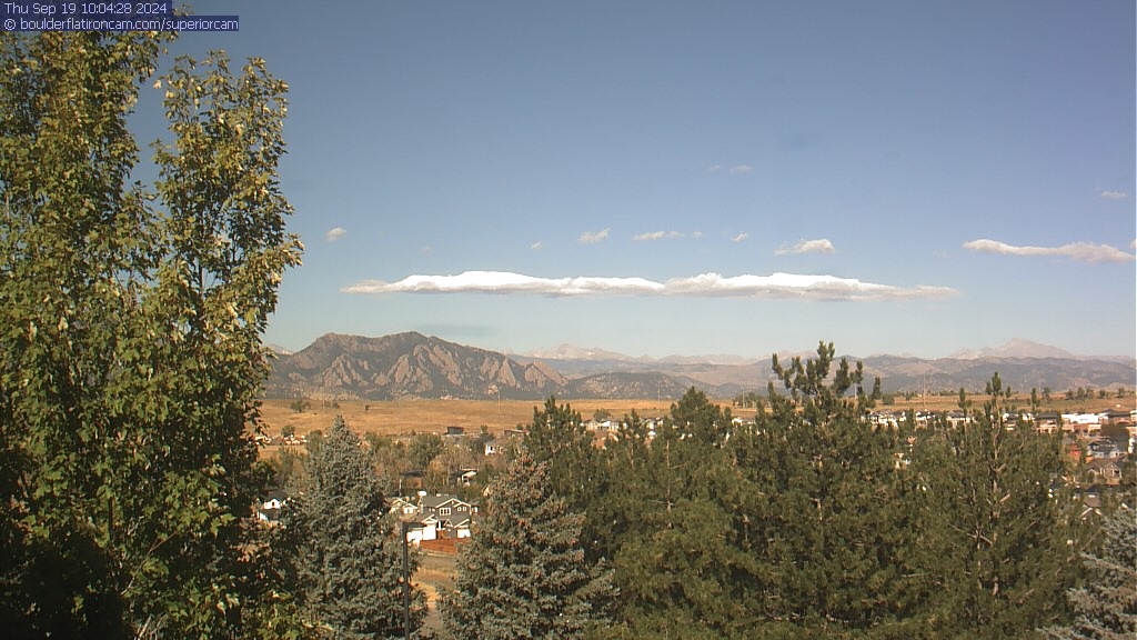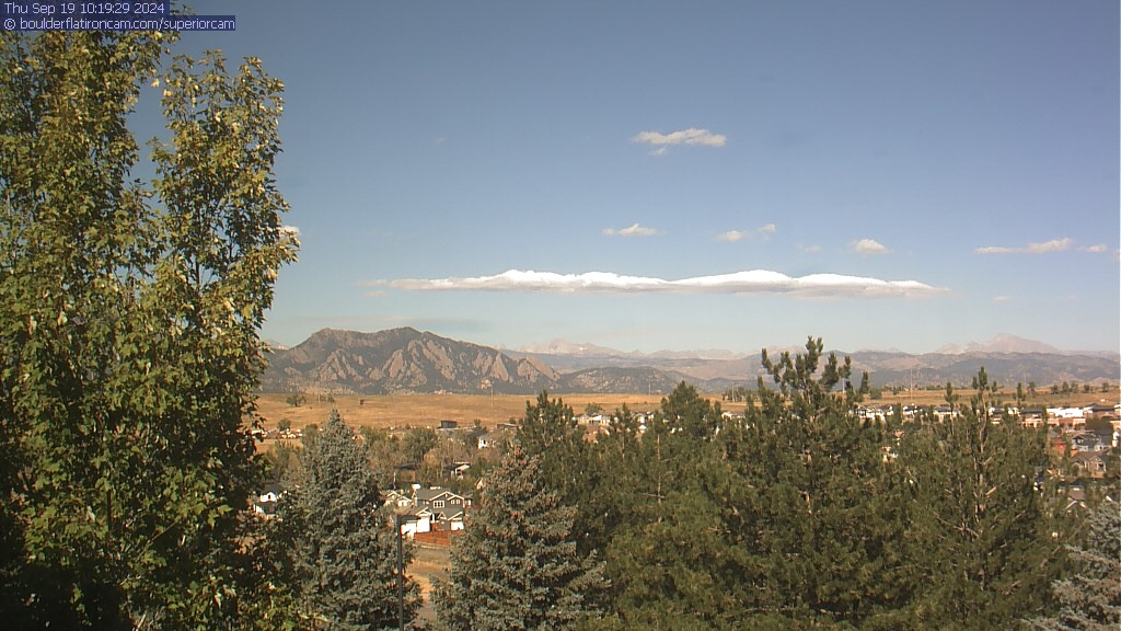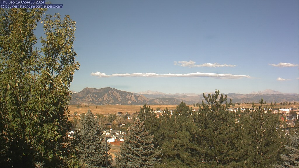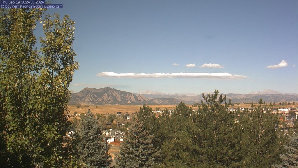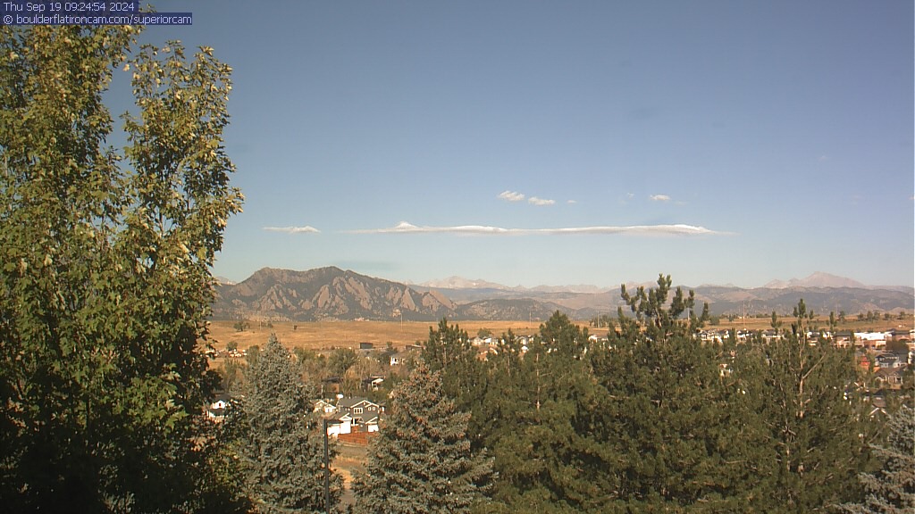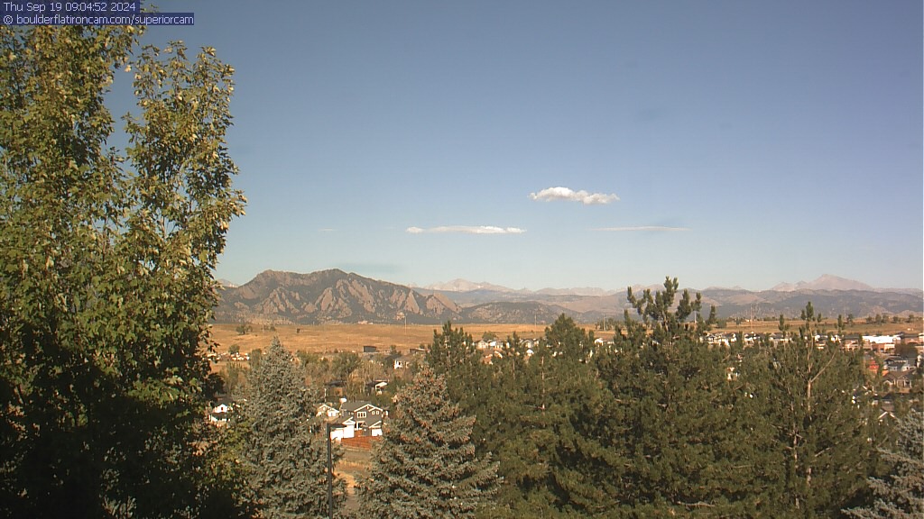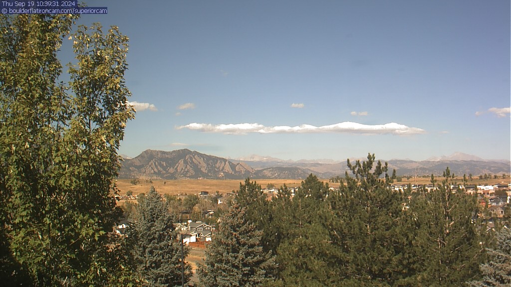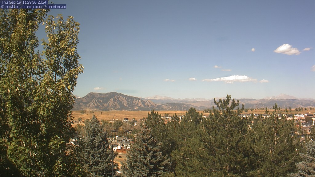 The Superior cam has a great view to the northwest over Boulder, the Flatirons, Indian Peaks and Long’s Peak.   The Coal Creek trail is visible in the foreground with old town Superior.  Thanks to Aweida Venture Partners management for the great view.