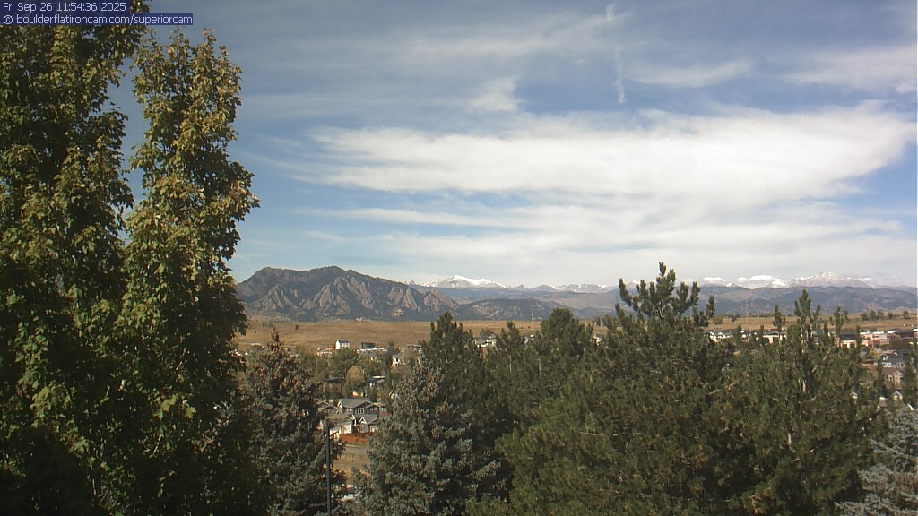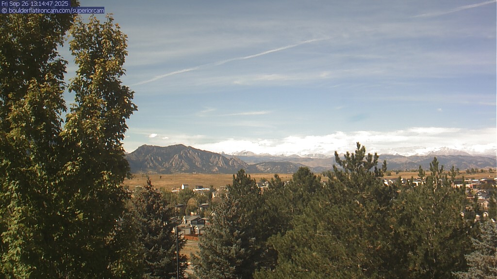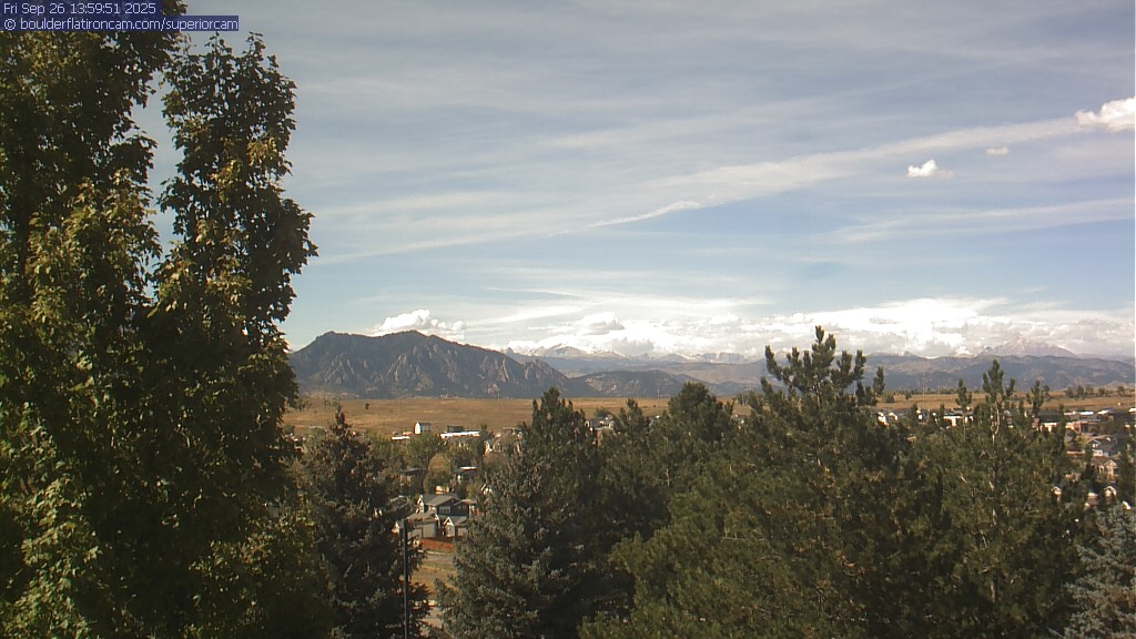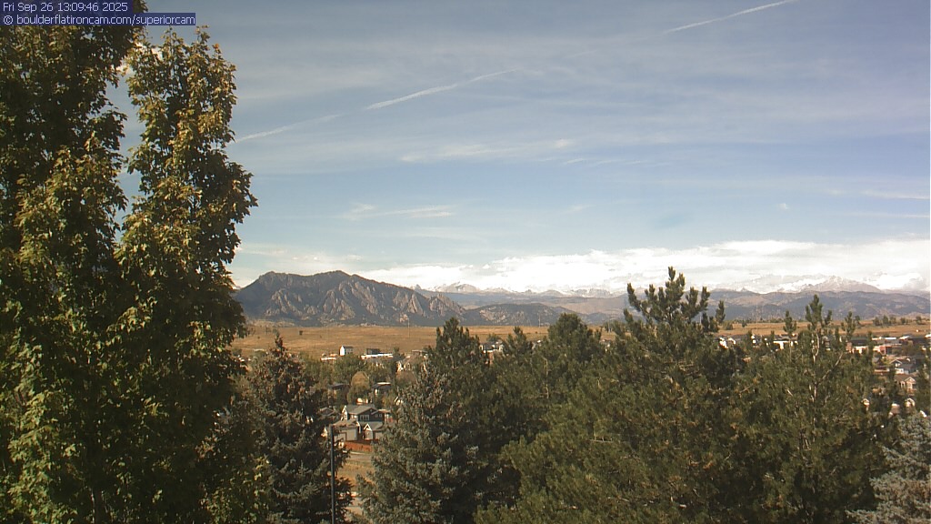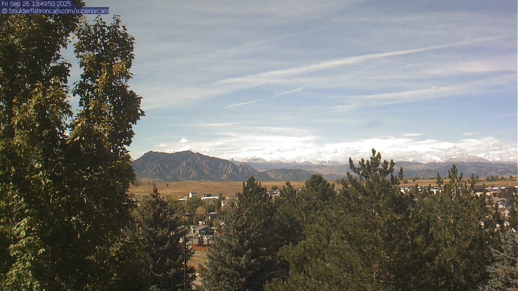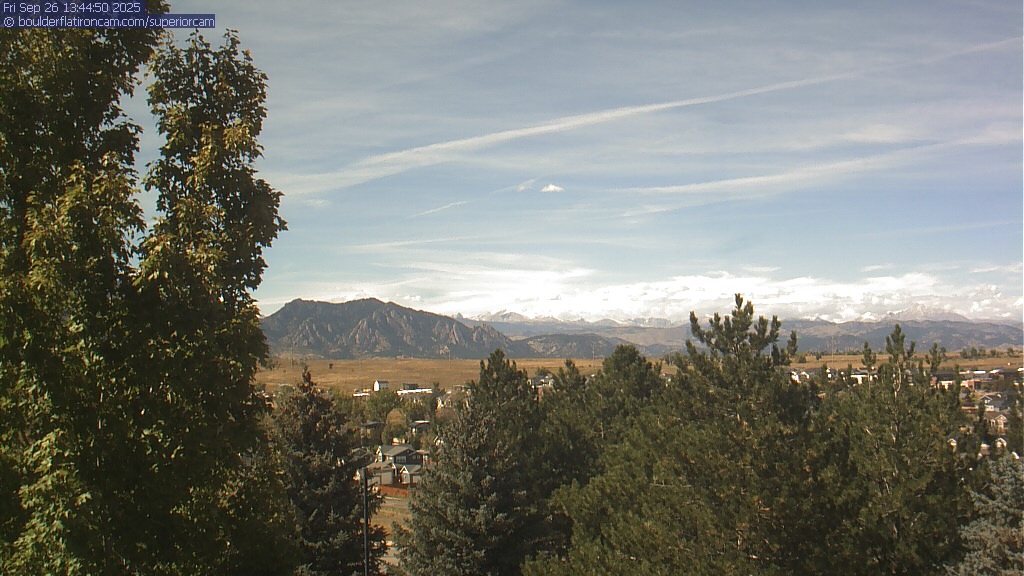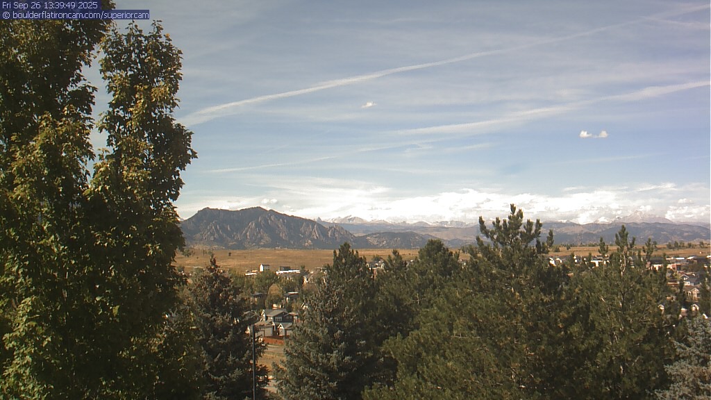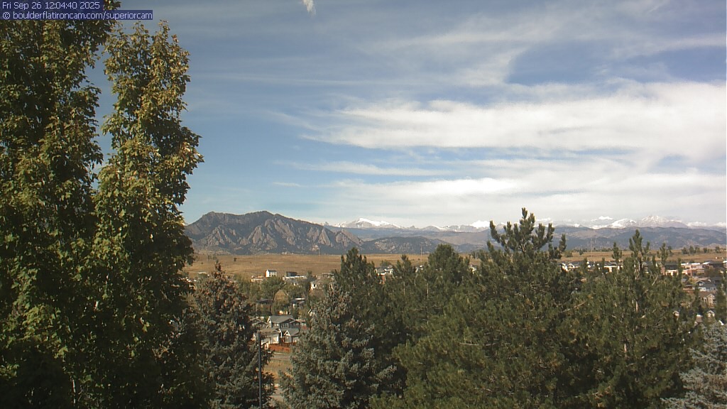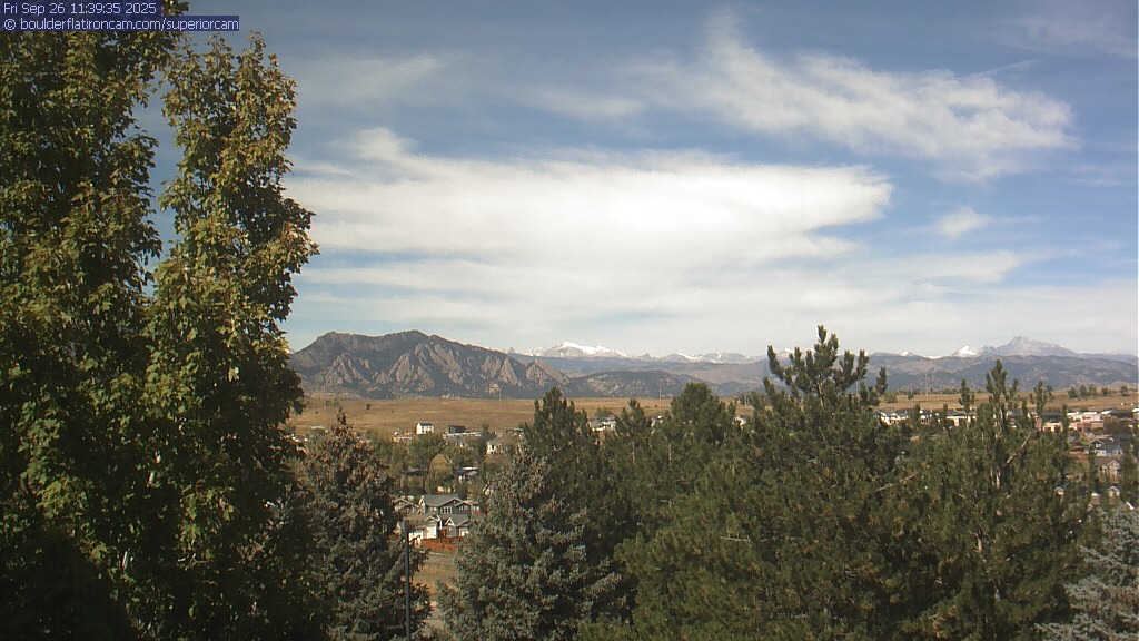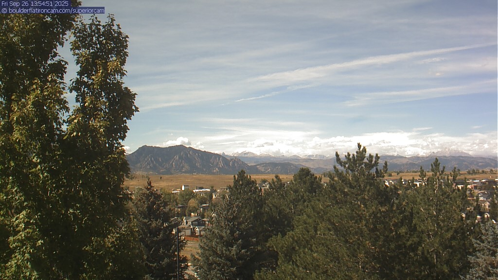 The Superior cam has a great view to the northwest over Boulder, the Flatirons, Indian Peaks and Long’s Peak.   The Coal Creek trail is visible in the foreground with old town Superior.  Thanks to Aweida Venture Partners management for the great view.