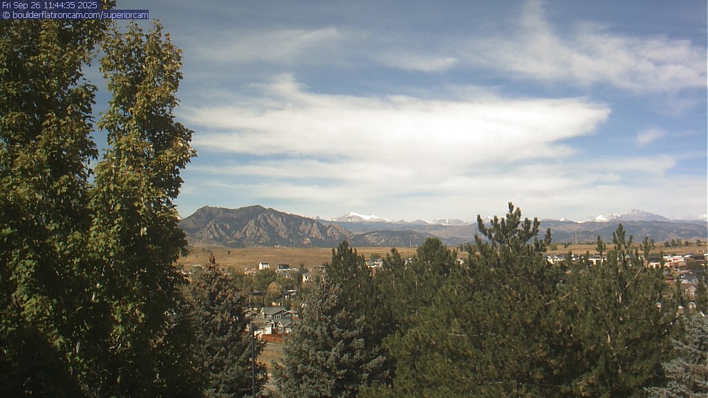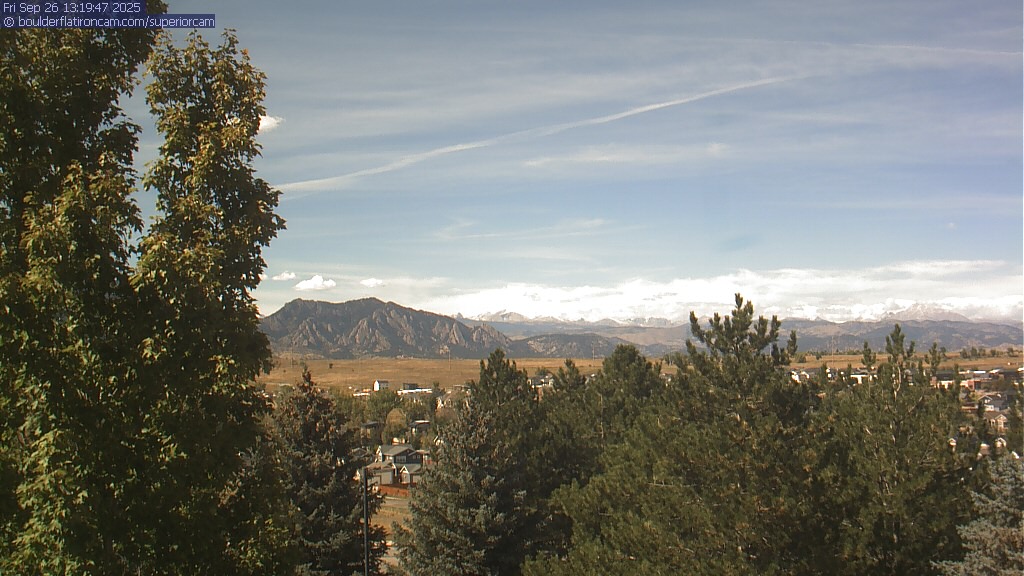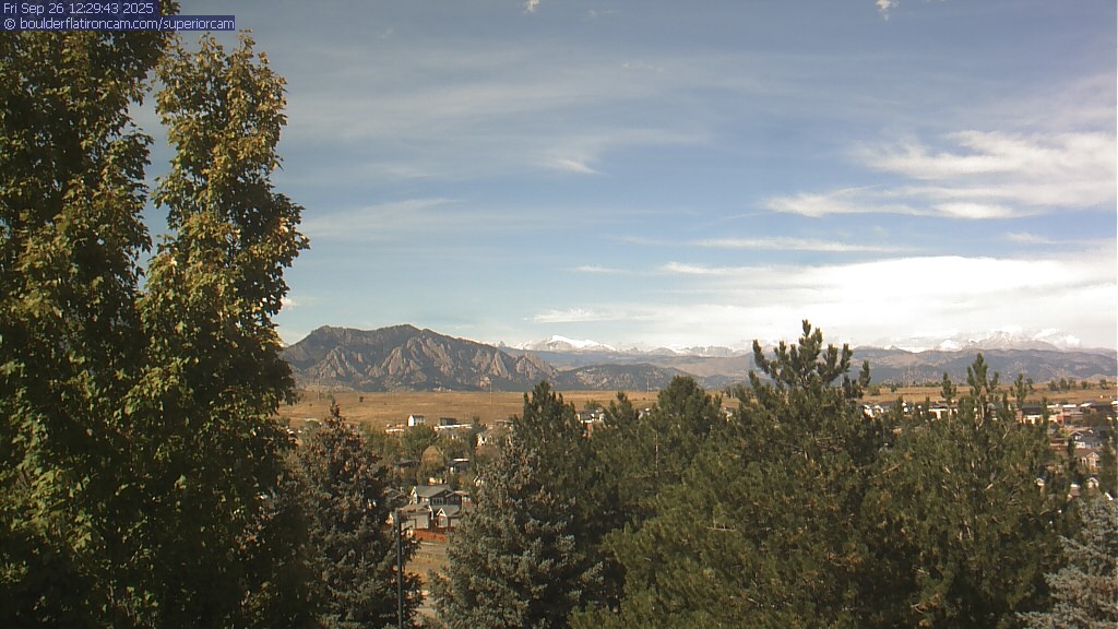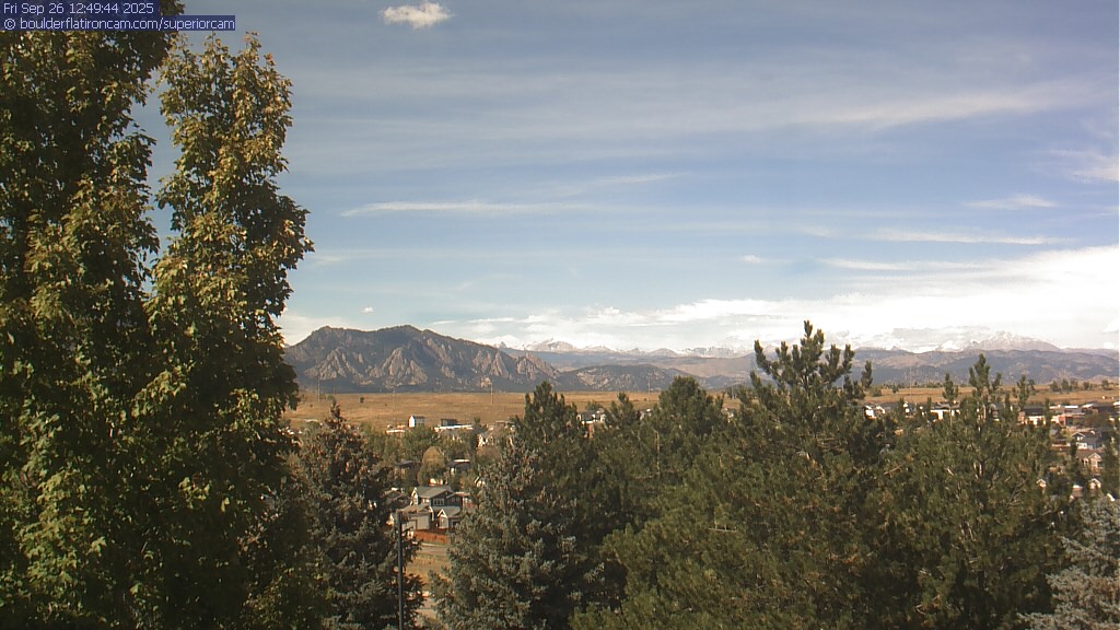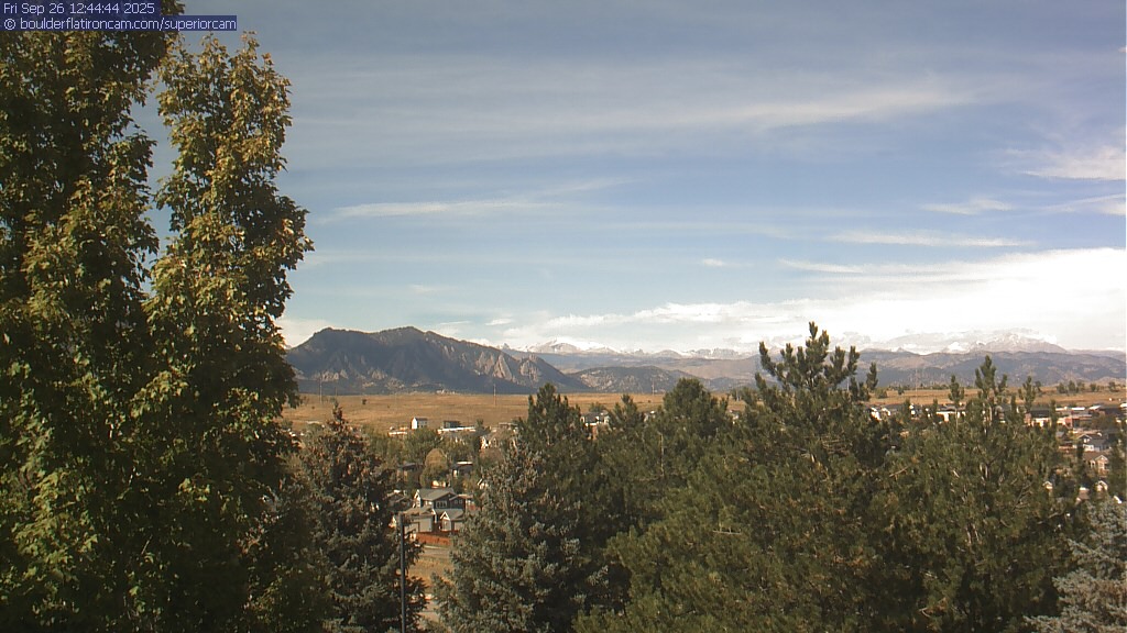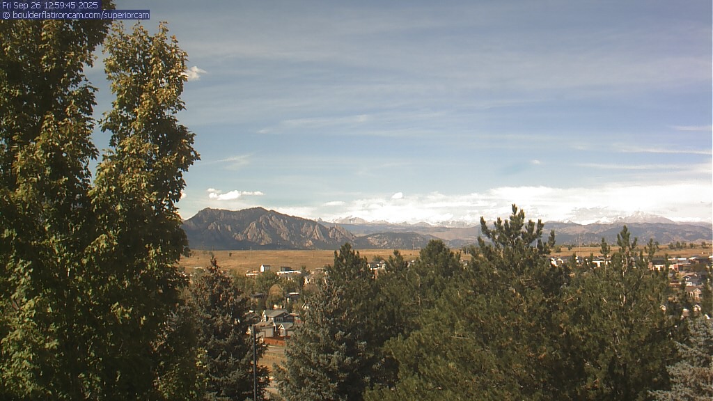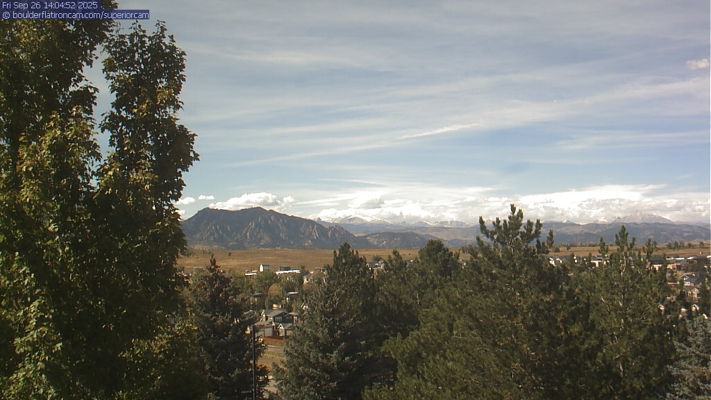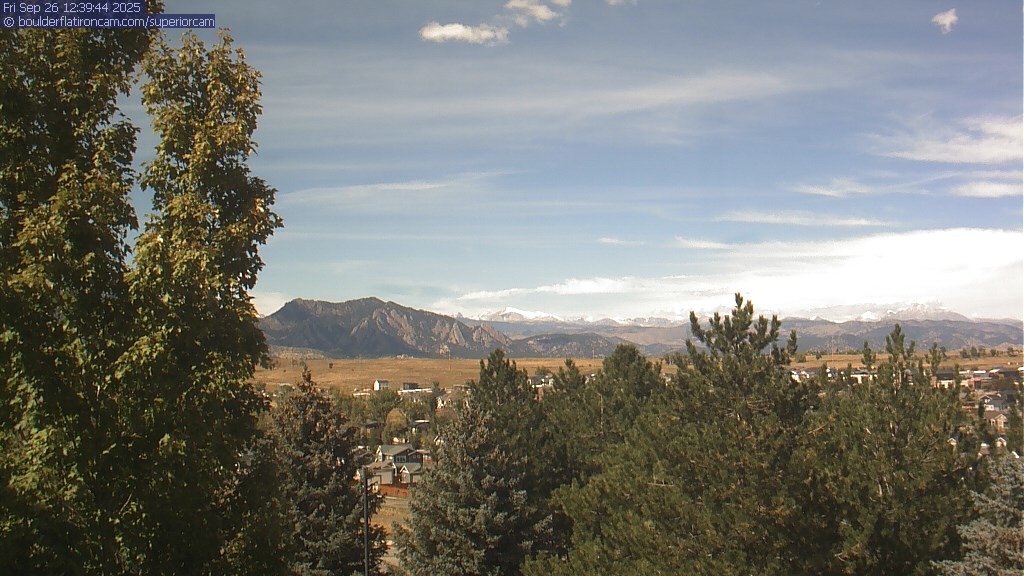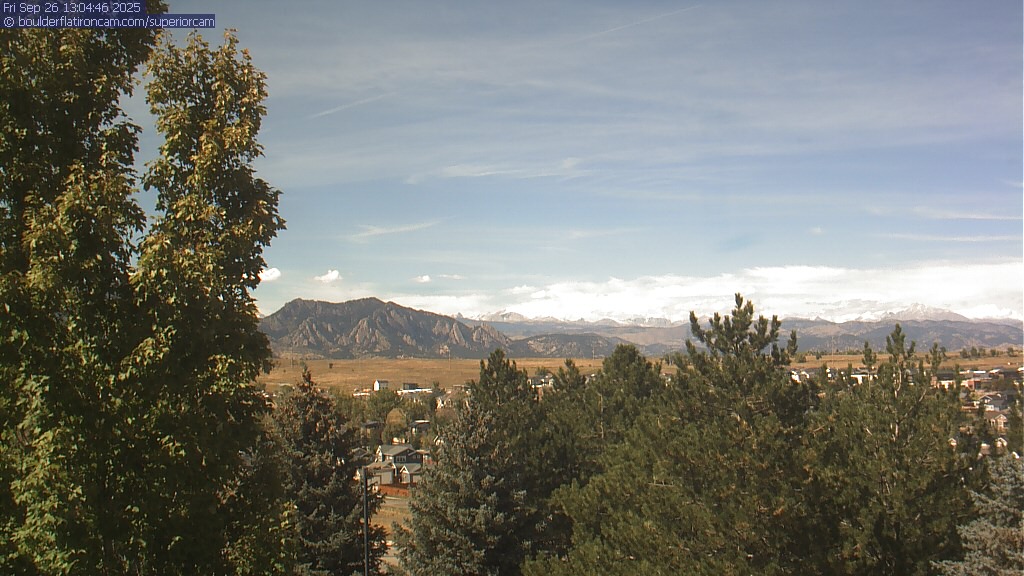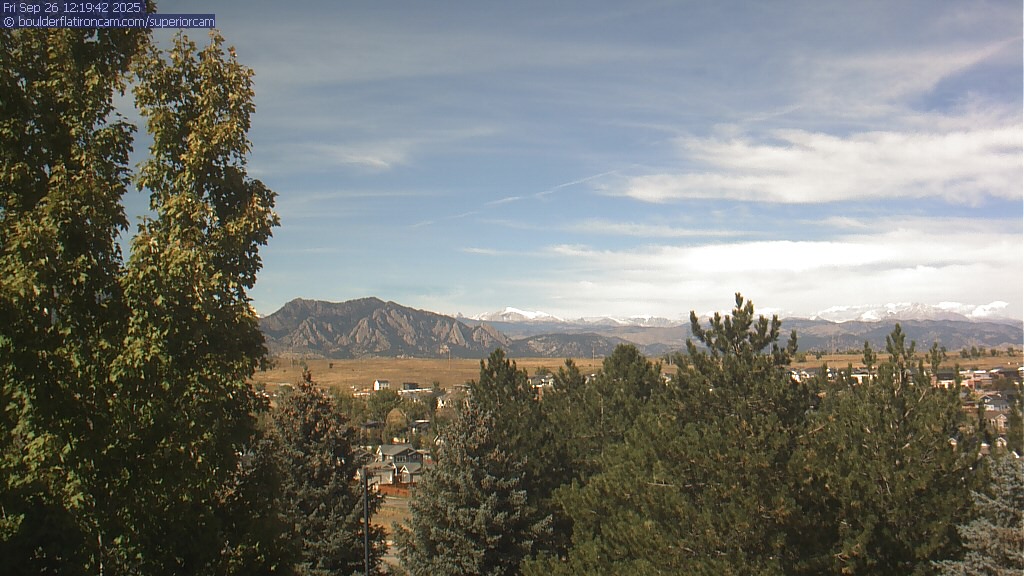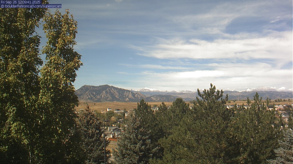 The Superior cam has a great view to the northwest over Boulder, the Flatirons, Indian Peaks and Long’s Peak.   The Coal Creek trail is visible in the foreground with old town Superior.  Thanks to Aweida Venture Partners management for the great view.