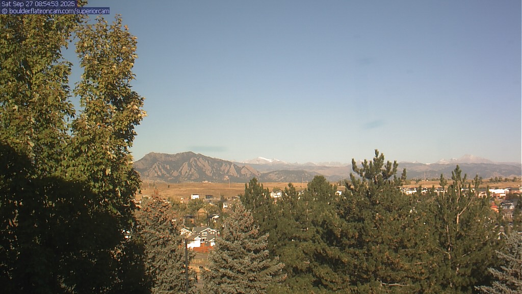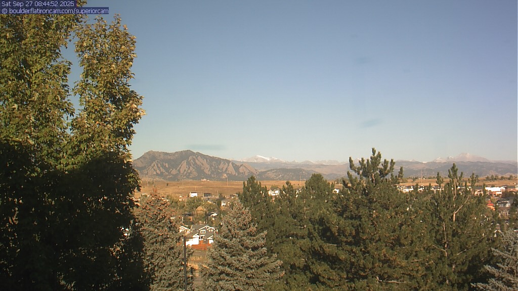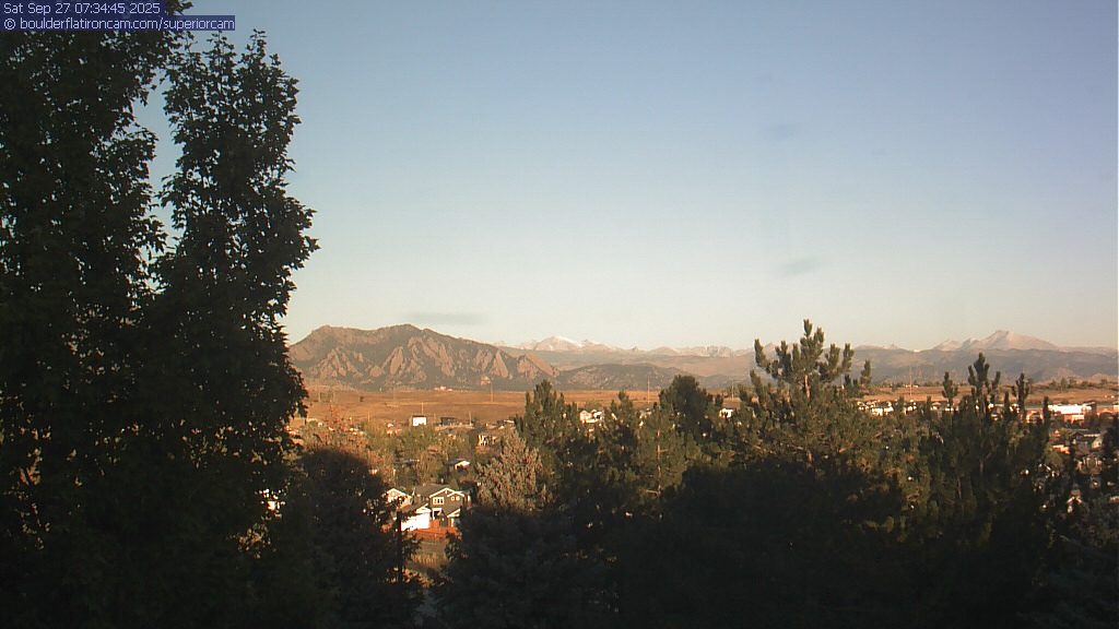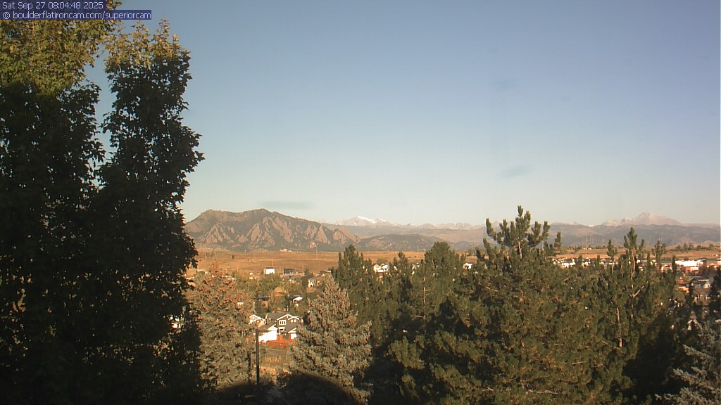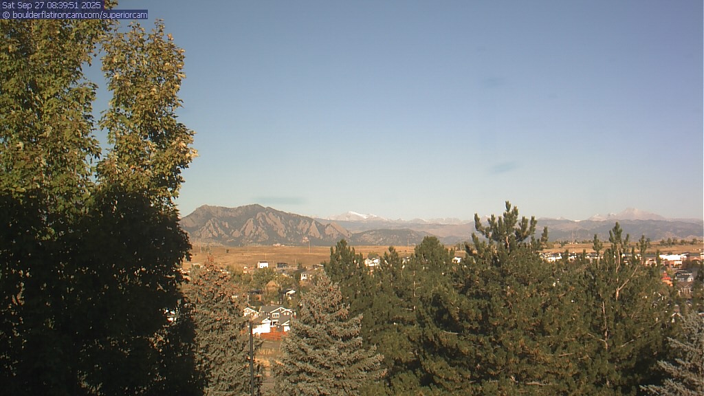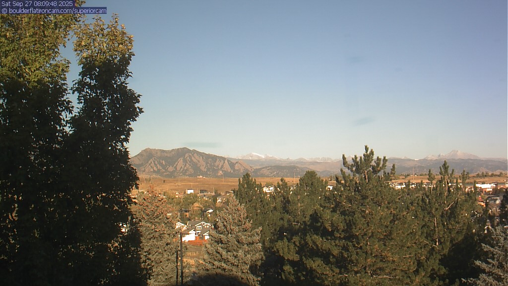 The Superior cam has a great view to the northwest over Boulder, the Flatirons, Indian Peaks and Long’s Peak.   The Coal Creek trail is visible in the foreground with old town Superior.  Thanks to Aweida Venture Partners management for the great view.