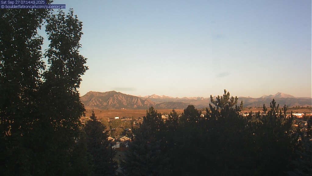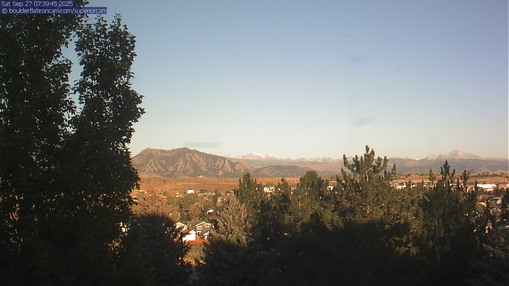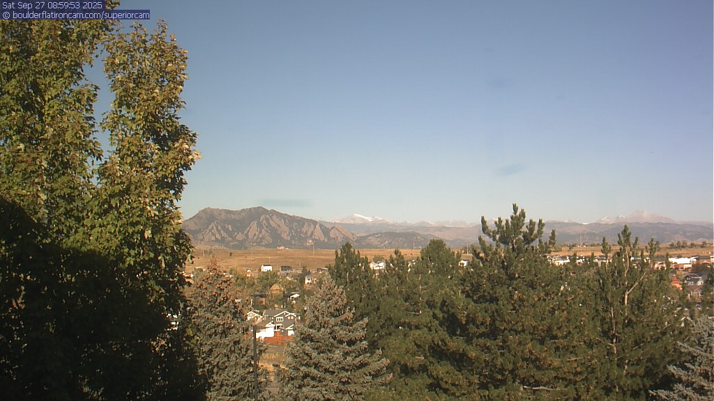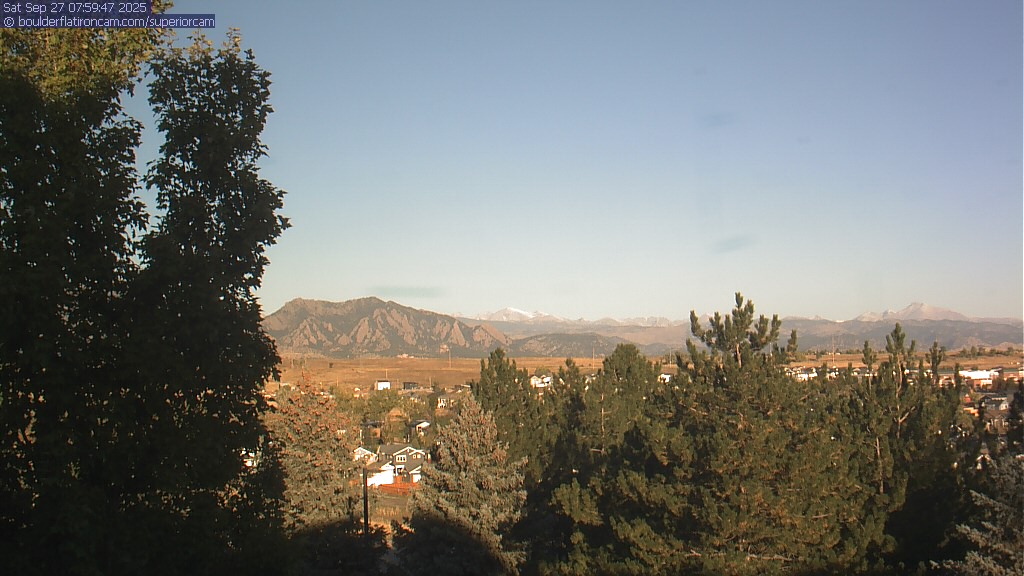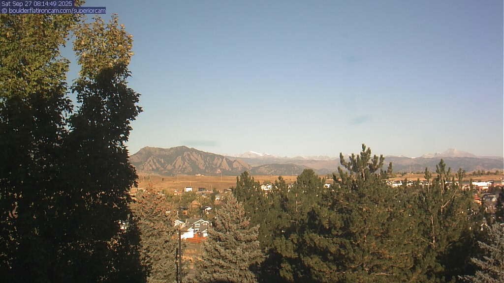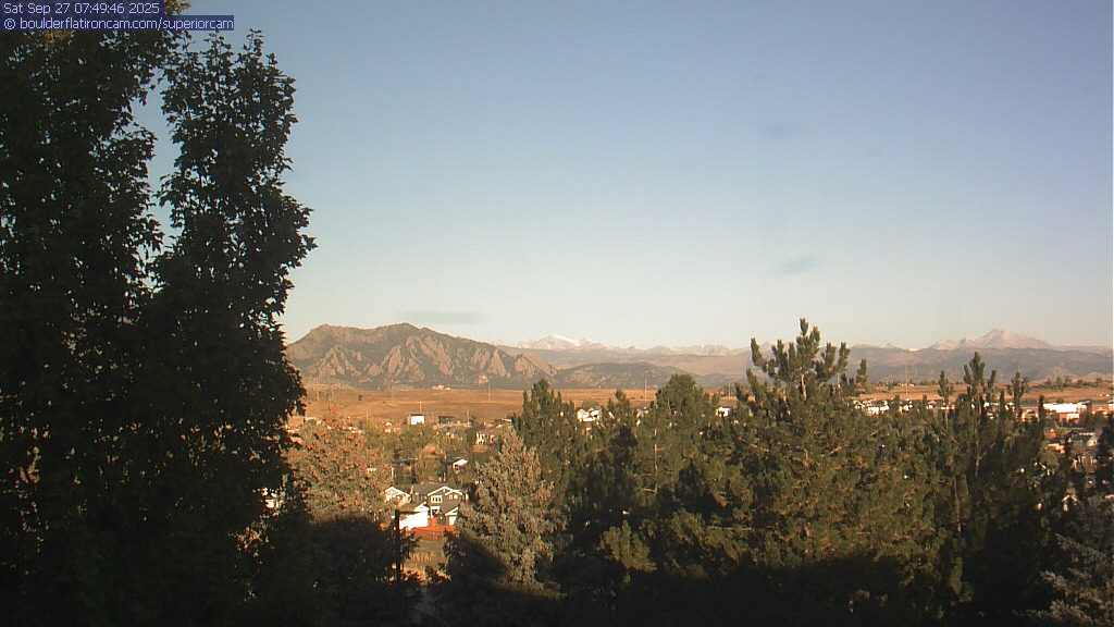 The Superior cam has a great view to the northwest over Boulder, the Flatirons, Indian Peaks and Long’s Peak.   The Coal Creek trail is visible in the foreground with old town Superior.  Thanks to Aweida Venture Partners management for the great view.