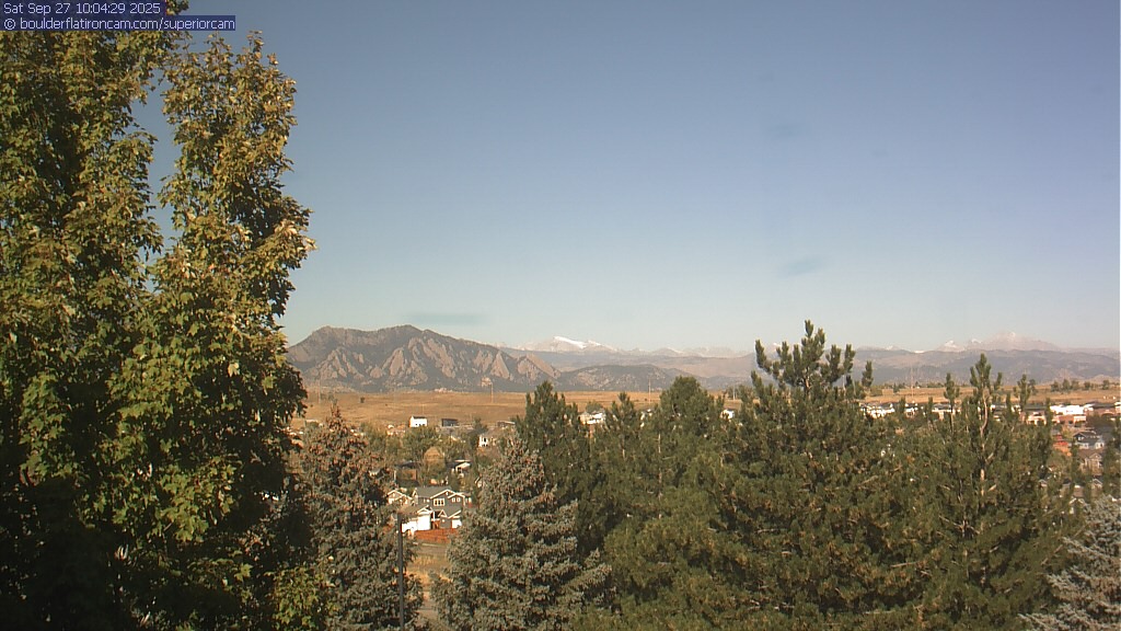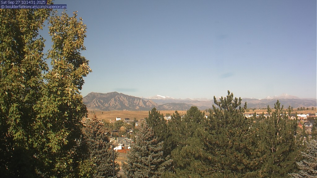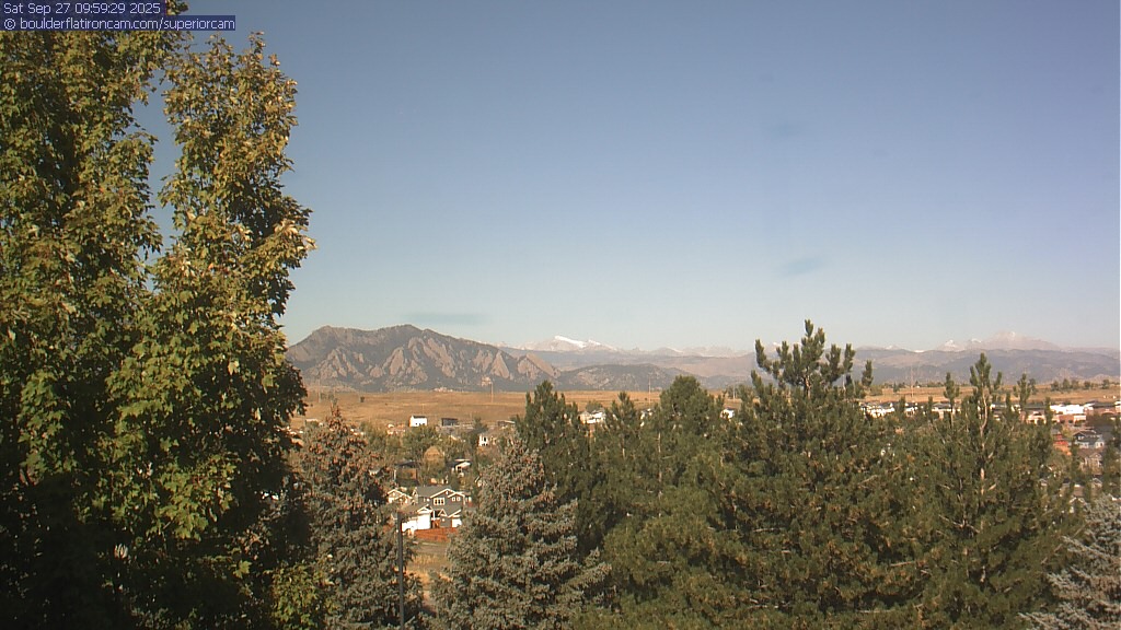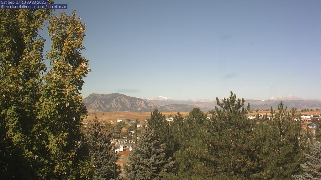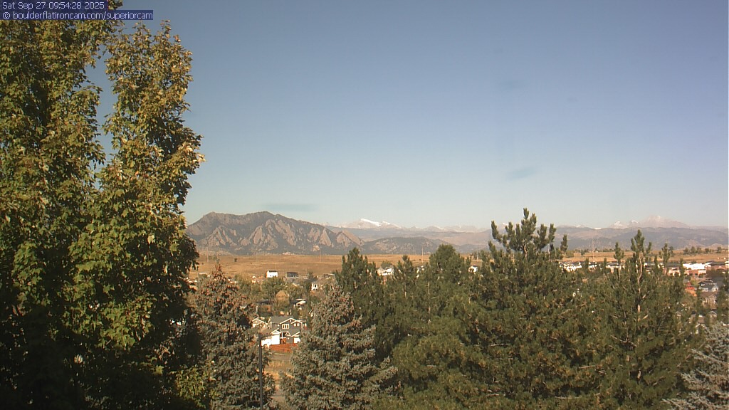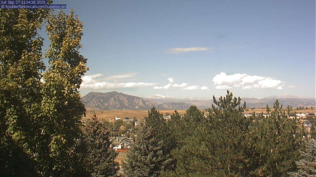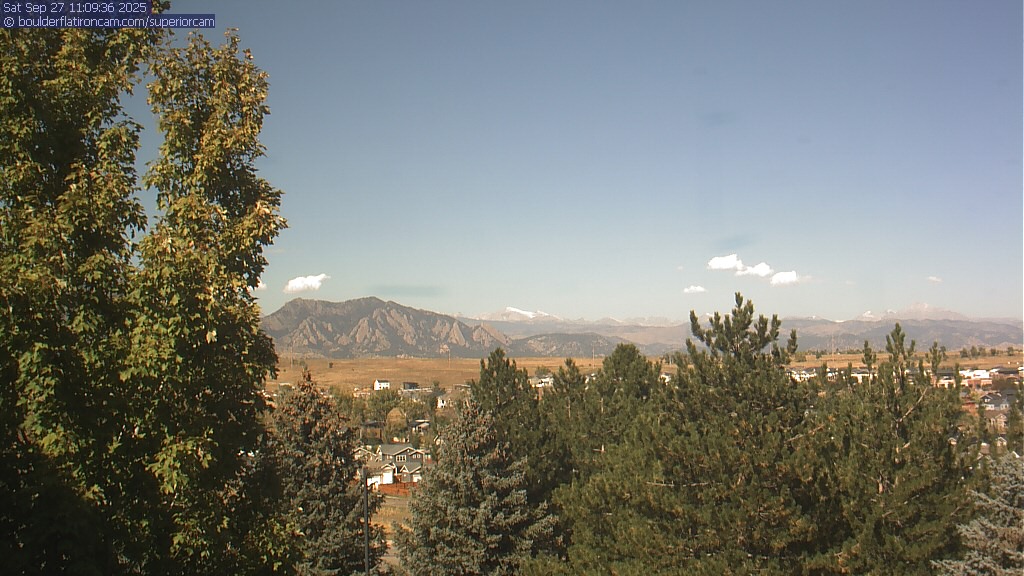 The Superior cam has a great view to the northwest over Boulder, the Flatirons, Indian Peaks and Long’s Peak.   The Coal Creek trail is visible in the foreground with old town Superior.  Thanks to Aweida Venture Partners management for the great view.