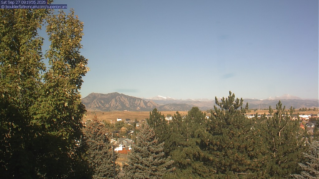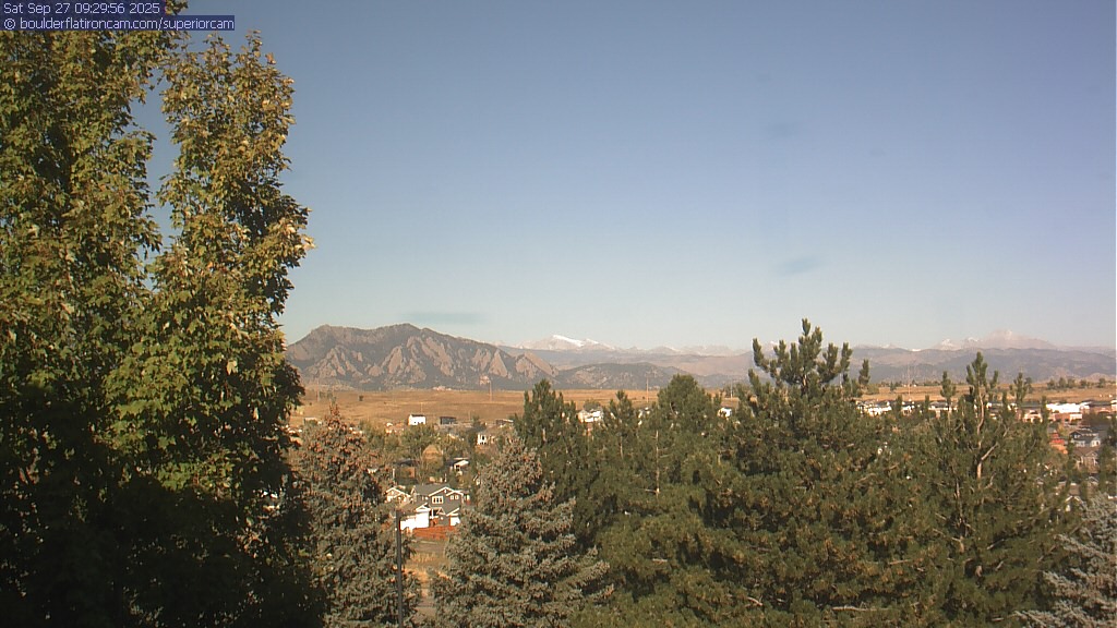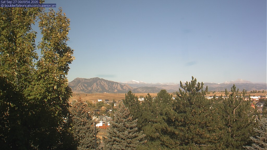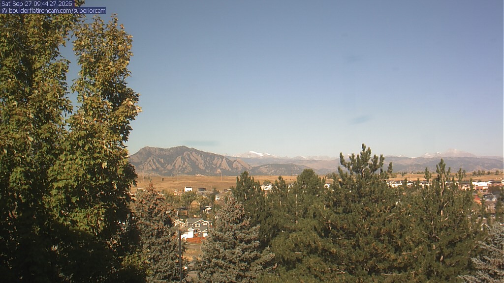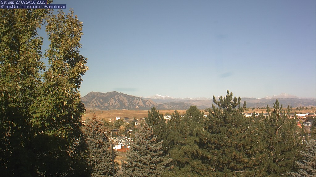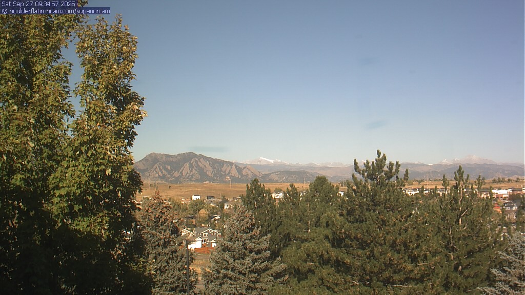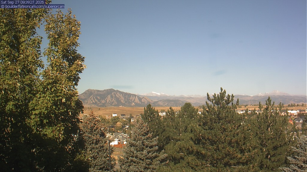 The Superior cam has a great view to the northwest over Boulder, the Flatirons, Indian Peaks and Long’s Peak.   The Coal Creek trail is visible in the foreground with old town Superior.  Thanks to Aweida Venture Partners management for the great view.