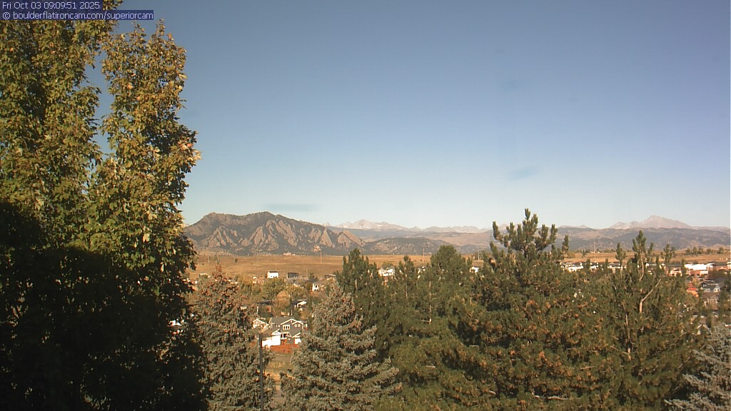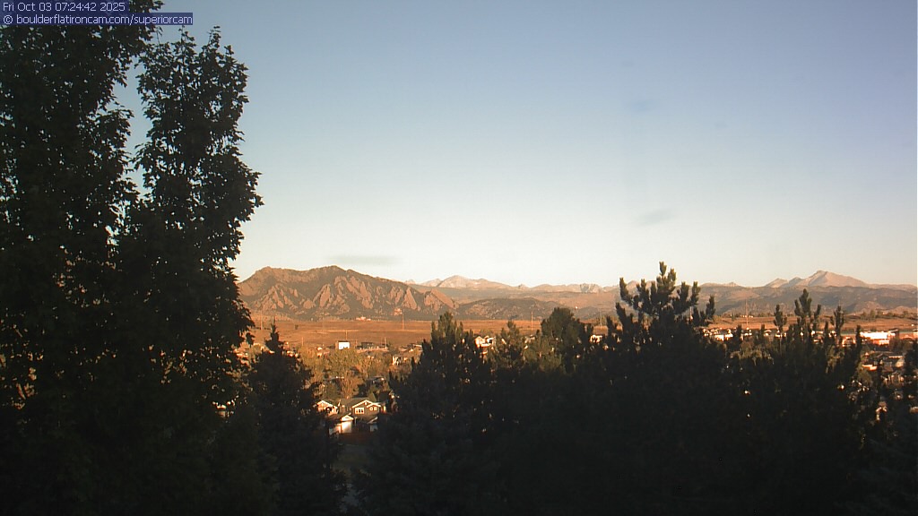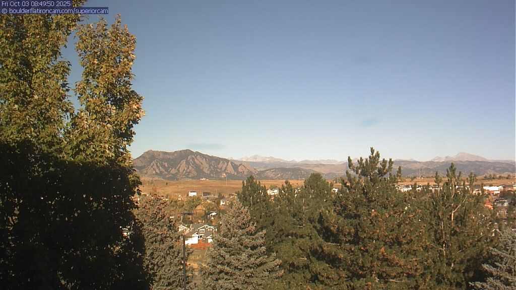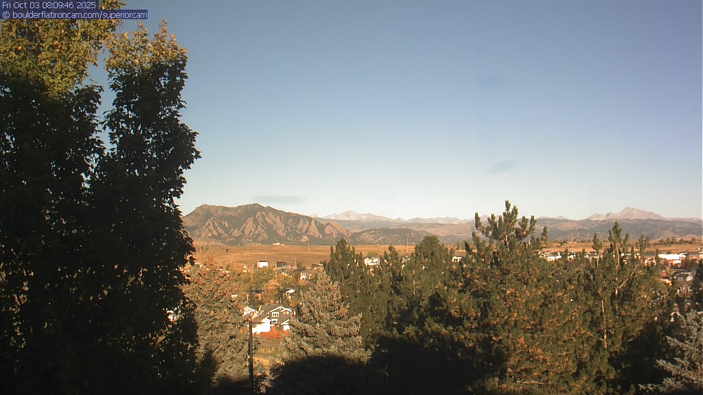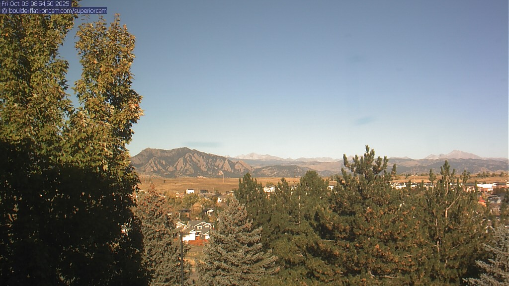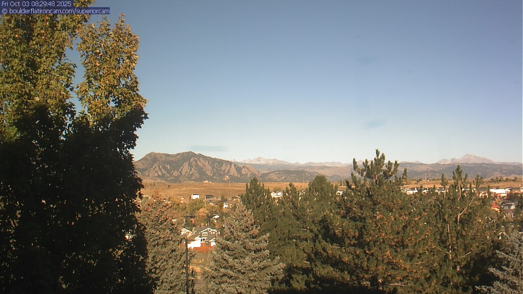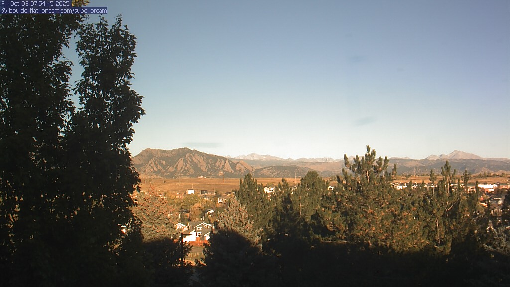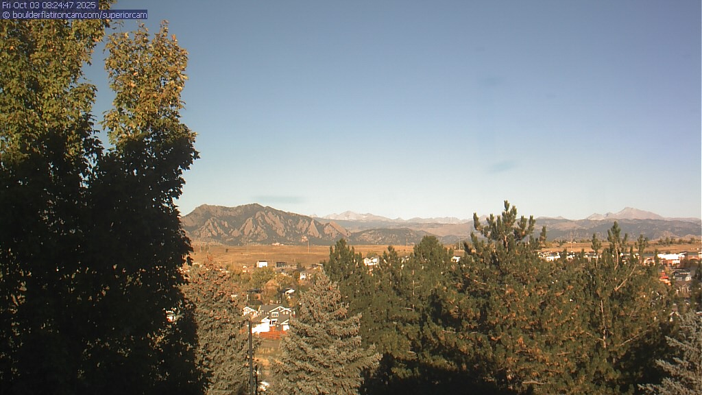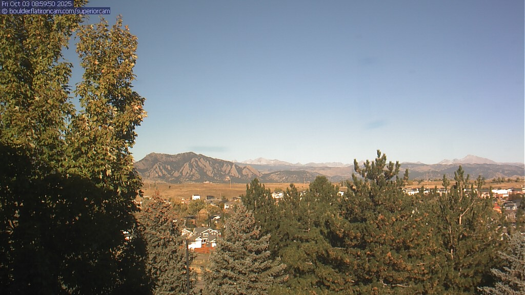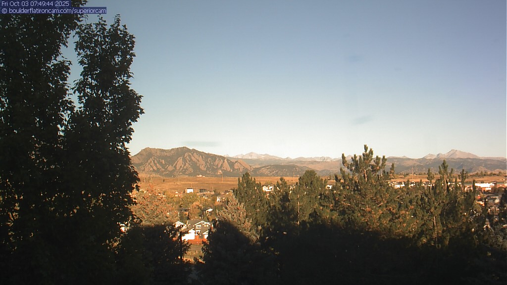 The Superior cam has a great view to the northwest over Boulder, the Flatirons, Indian Peaks and Long’s Peak.   The Coal Creek trail is visible in the foreground with old town Superior.  Thanks to Aweida Venture Partners management for the great view.
