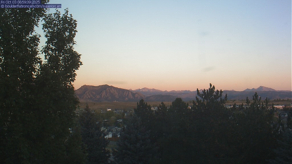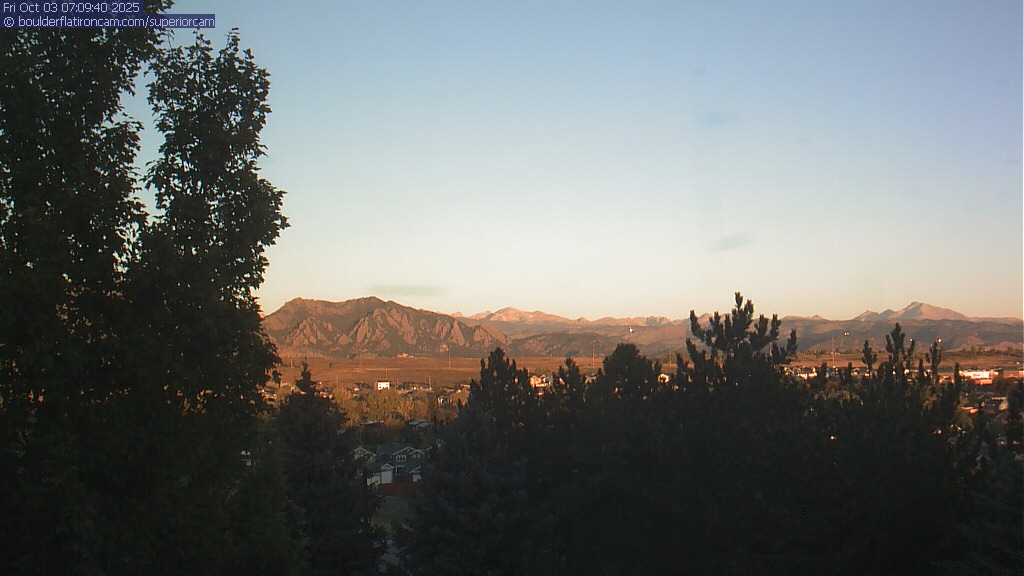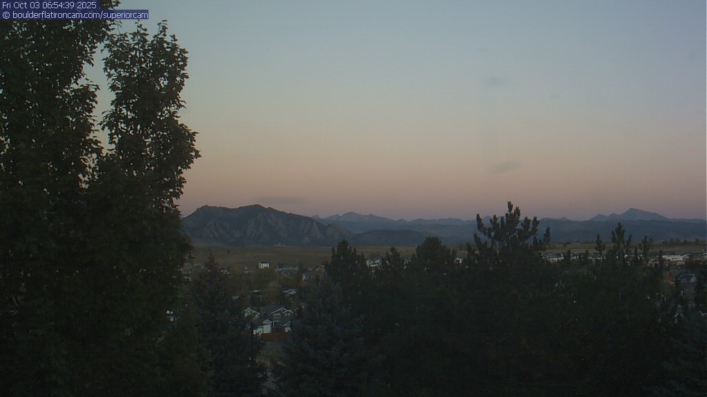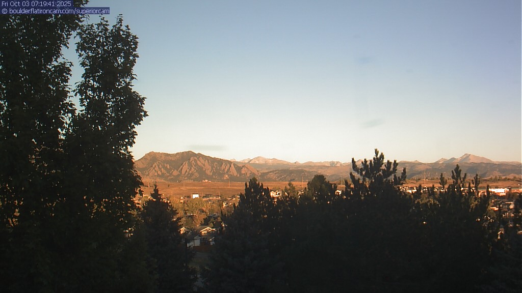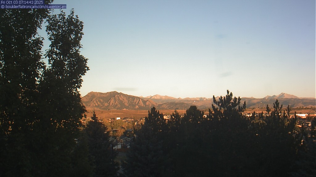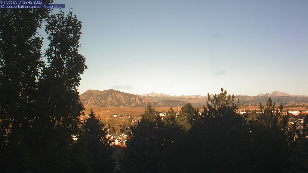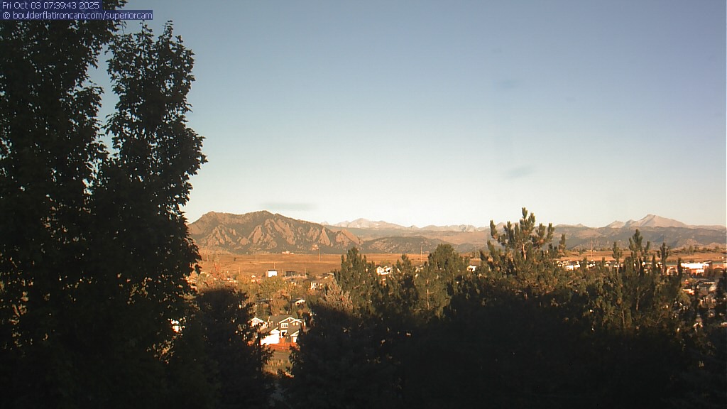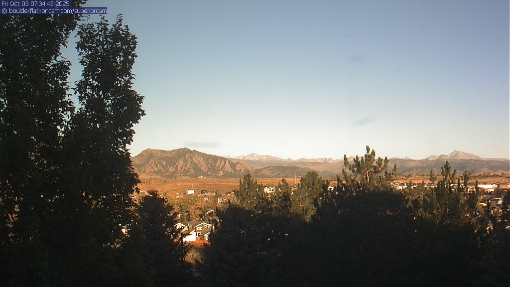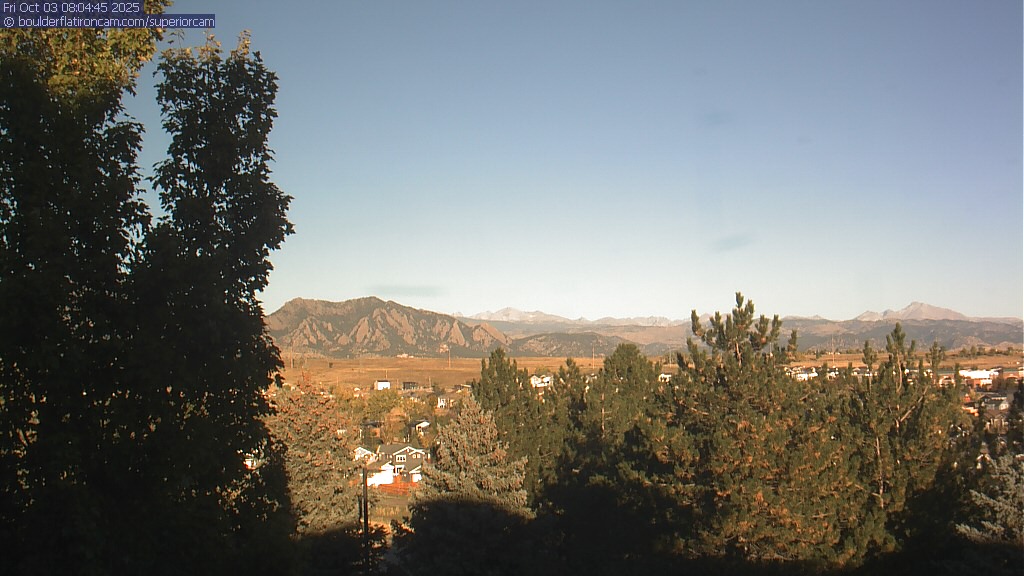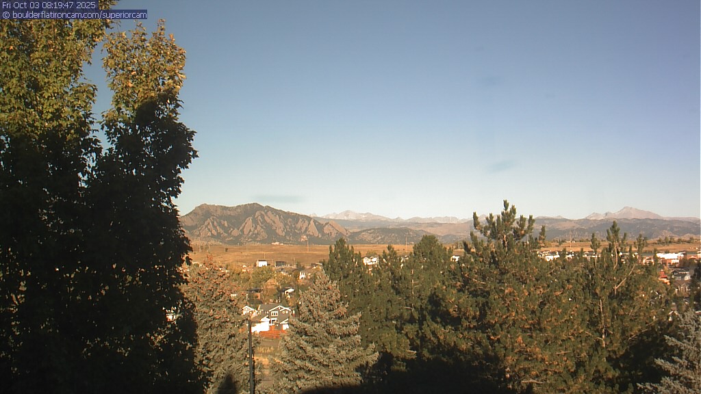 The Superior cam has a great view to the northwest over Boulder, the Flatirons, Indian Peaks and Long’s Peak.   The Coal Creek trail is visible in the foreground with old town Superior.  Thanks to Aweida Venture Partners management for the great view.