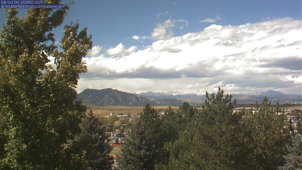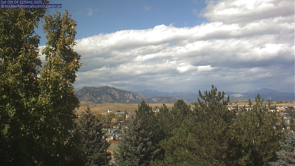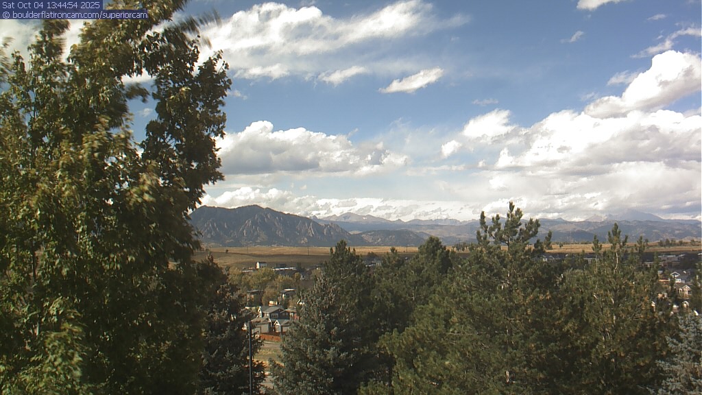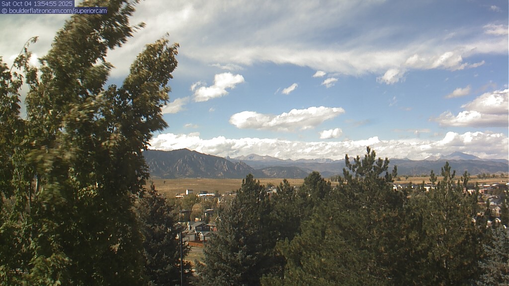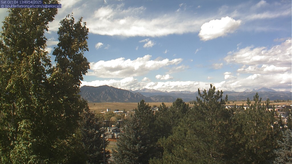 The Superior cam has a great view to the northwest over Boulder, the Flatirons, Indian Peaks and Long’s Peak.   The Coal Creek trail is visible in the foreground with old town Superior.  Thanks to Aweida Venture Partners management for the great view.