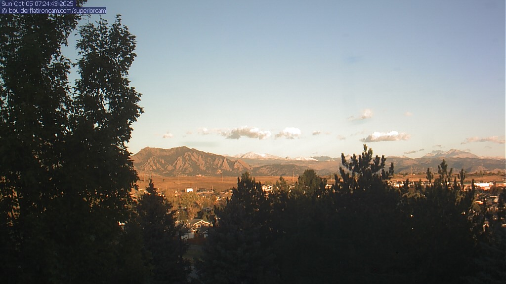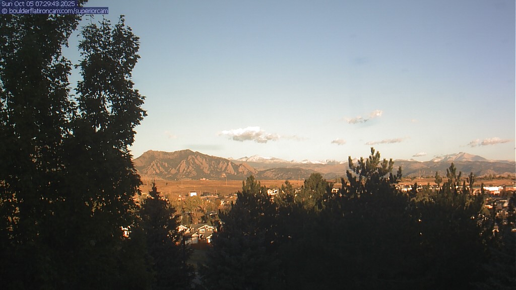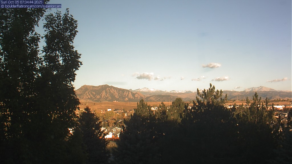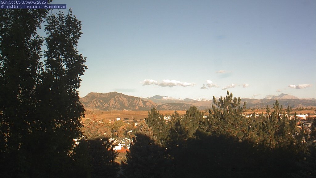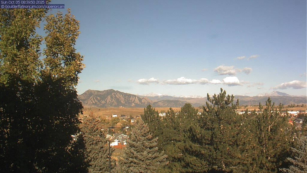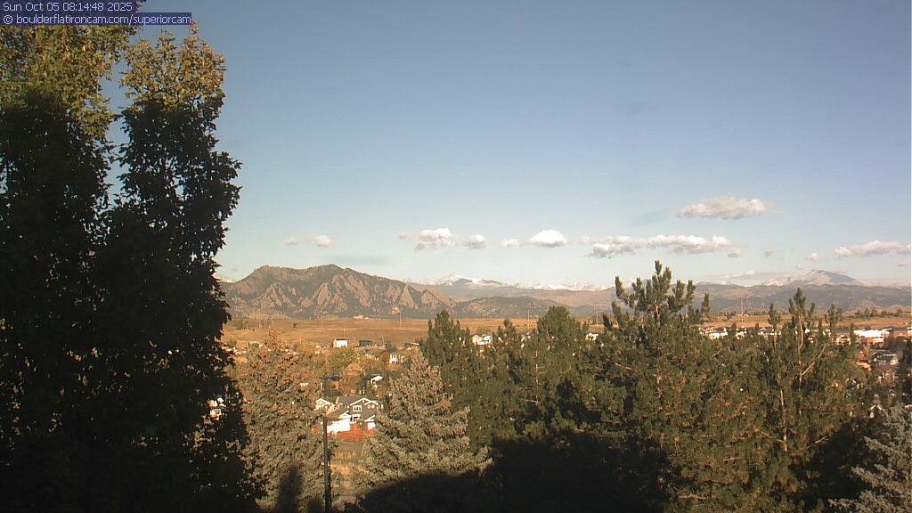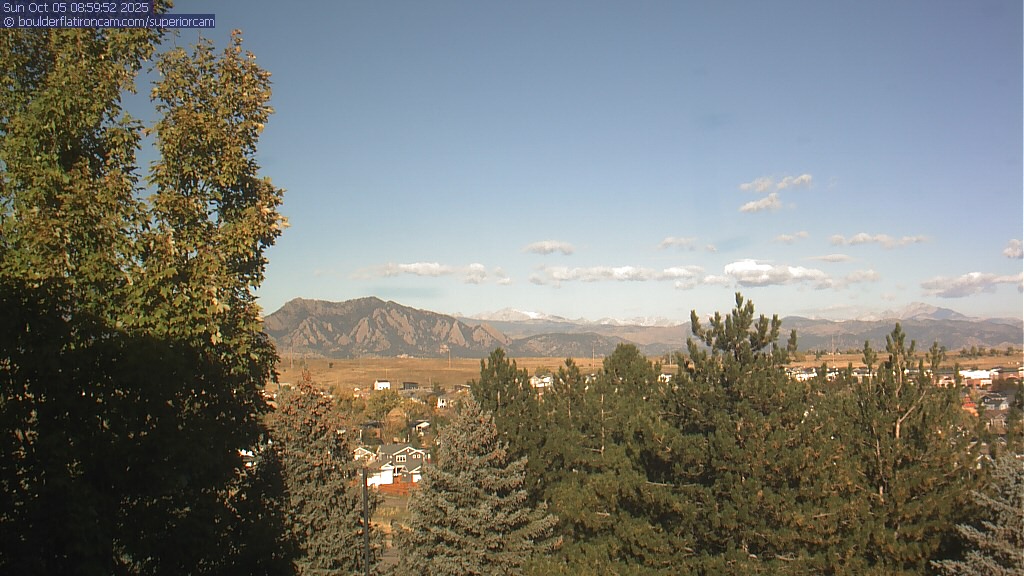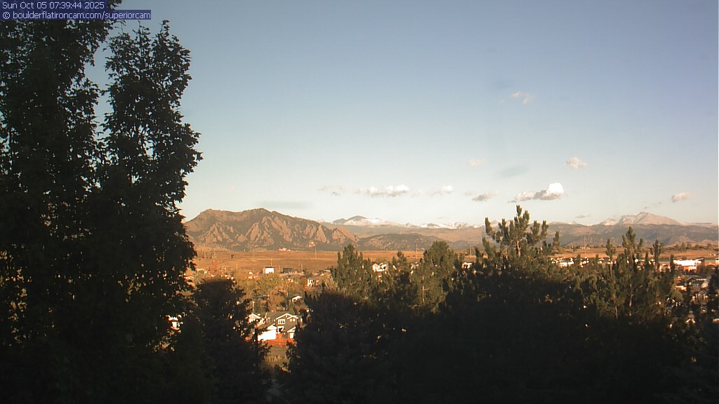 The Superior cam has a great view to the northwest over Boulder, the Flatirons, Indian Peaks and Long’s Peak.   The Coal Creek trail is visible in the foreground with old town Superior.  Thanks to Aweida Venture Partners management for the great view.