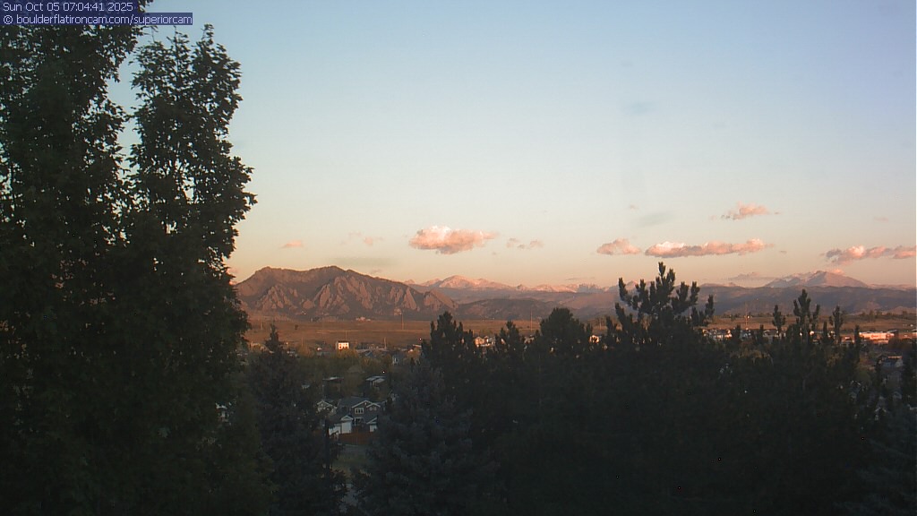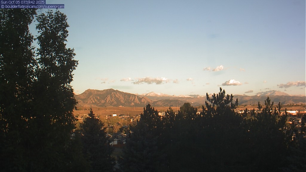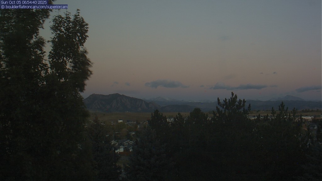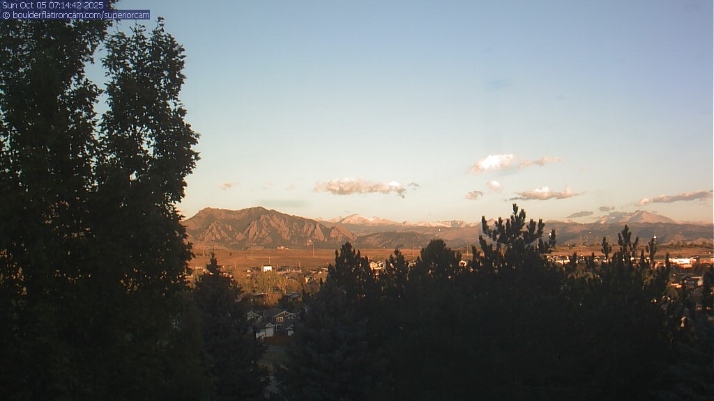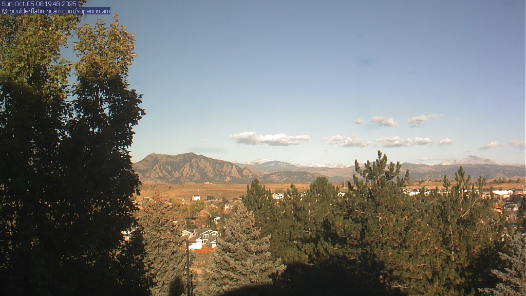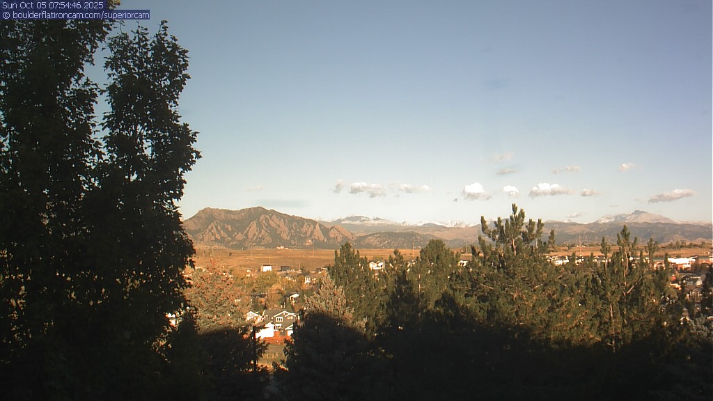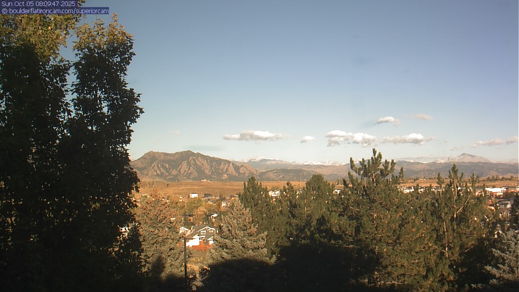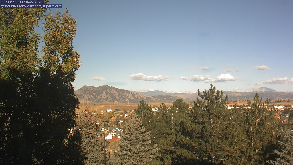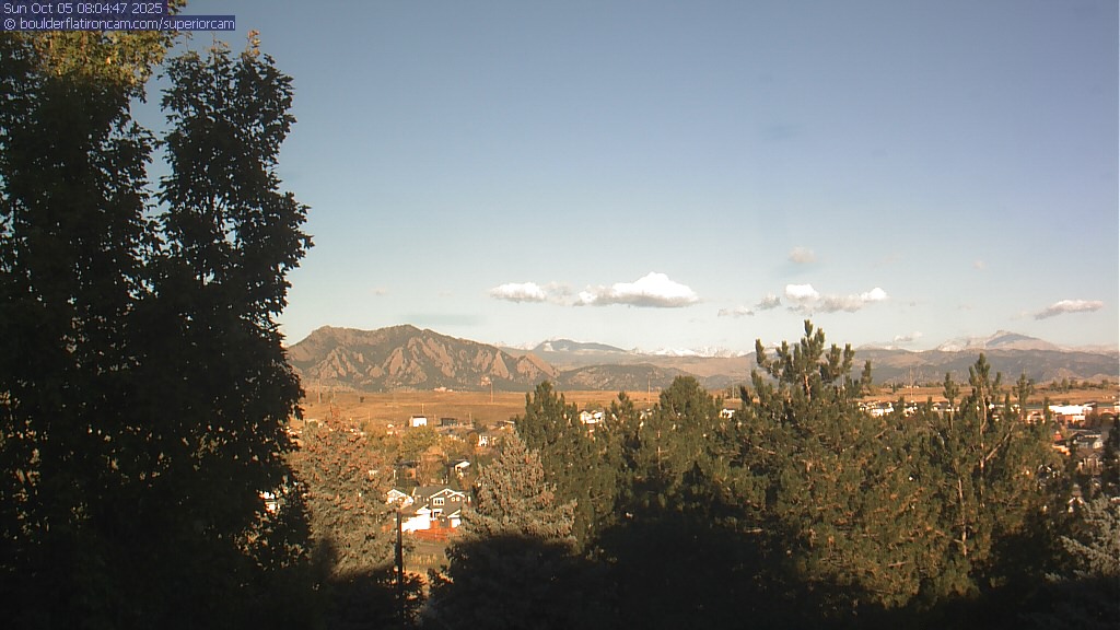 The Superior cam has a great view to the northwest over Boulder, the Flatirons, Indian Peaks and Long’s Peak.   The Coal Creek trail is visible in the foreground with old town Superior.  Thanks to Aweida Venture Partners management for the great view.