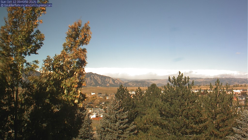 The Superior cam has a great view to the northwest over Boulder, the Flatirons, Indian Peaks and Long’s Peak.   The Coal Creek trail is visible in the foreground with old town Superior.  Thanks to Aweida Venture Partners management for the great view.