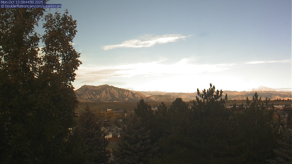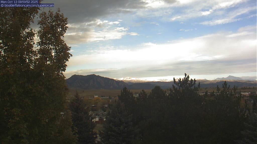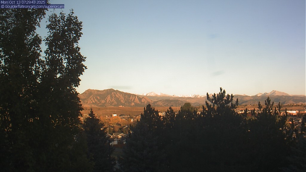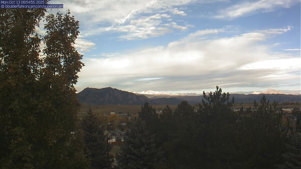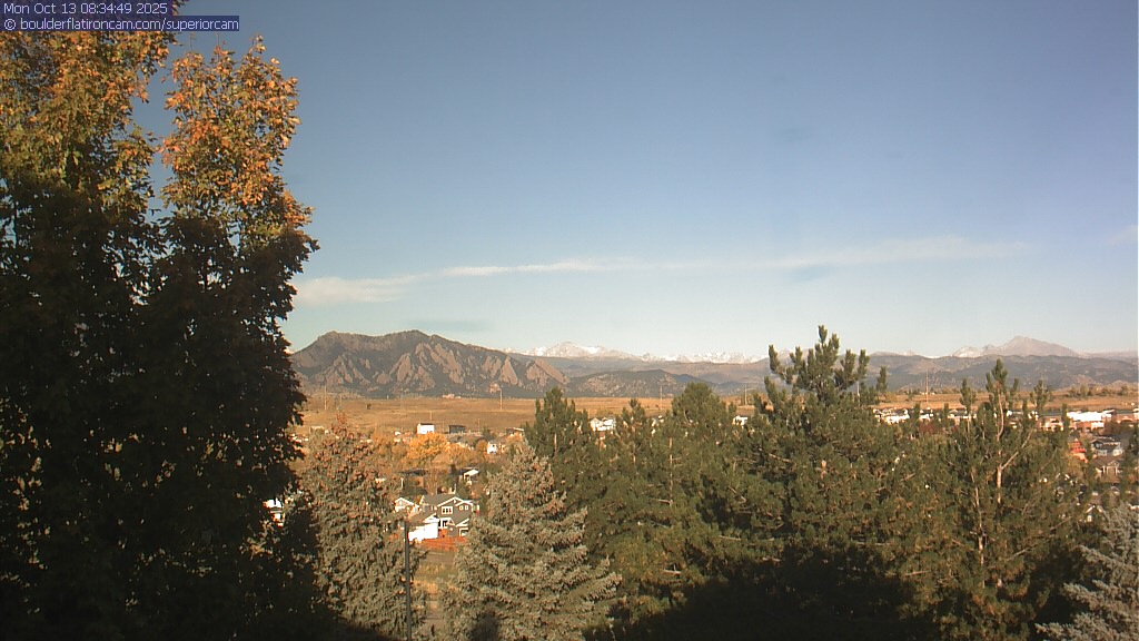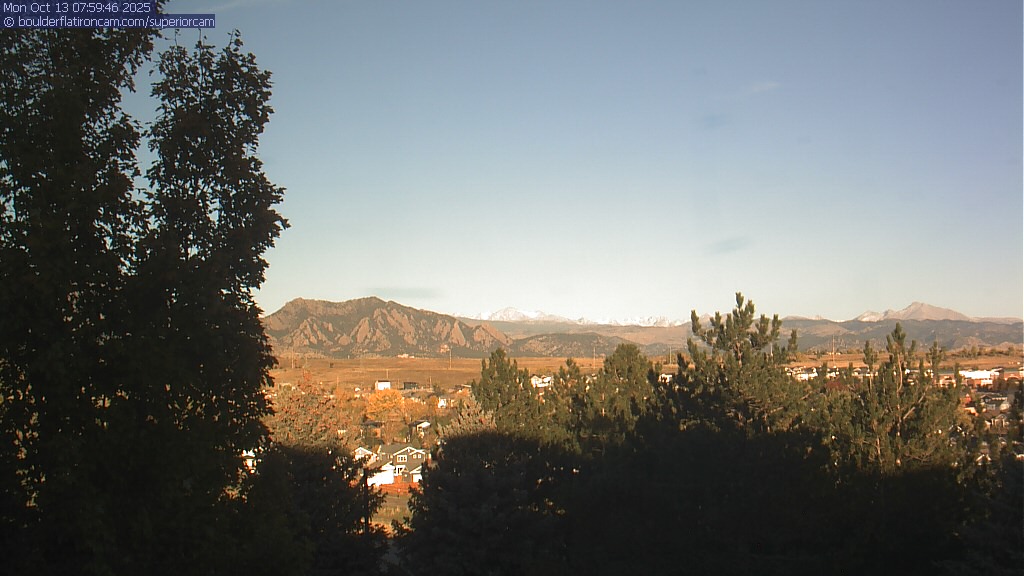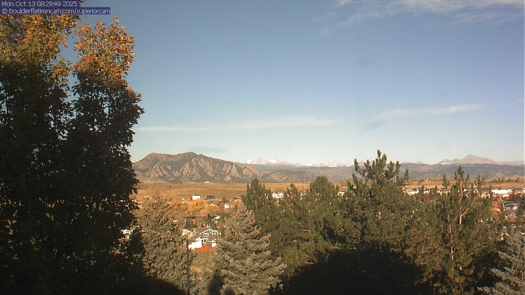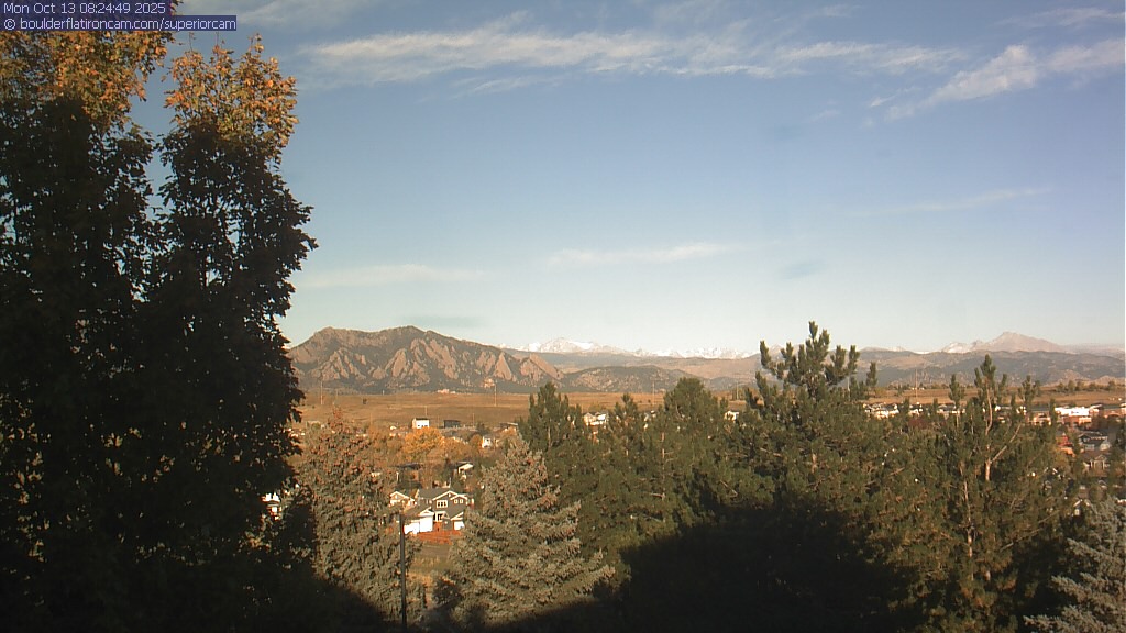 The Superior cam has a great view to the northwest over Boulder, the Flatirons, Indian Peaks and Long’s Peak.   The Coal Creek trail is visible in the foreground with old town Superior.  Thanks to Aweida Venture Partners management for the great view.
