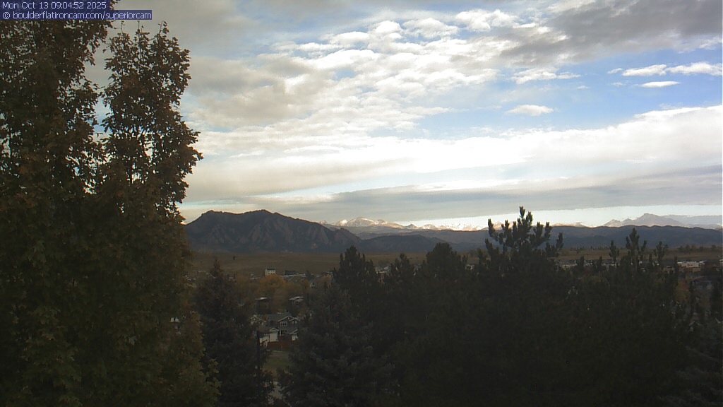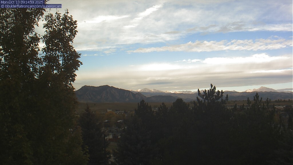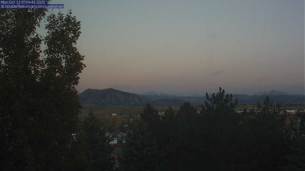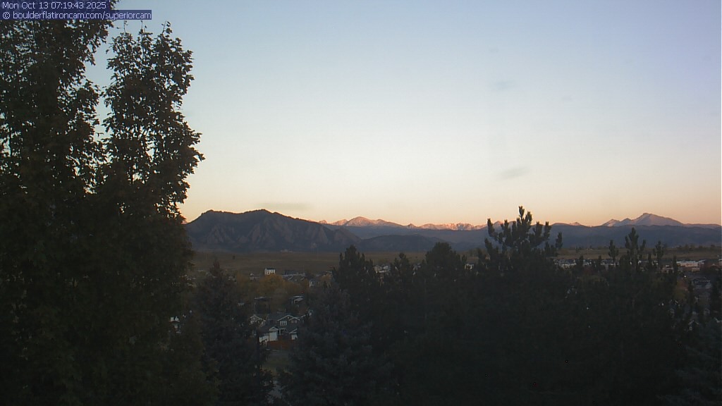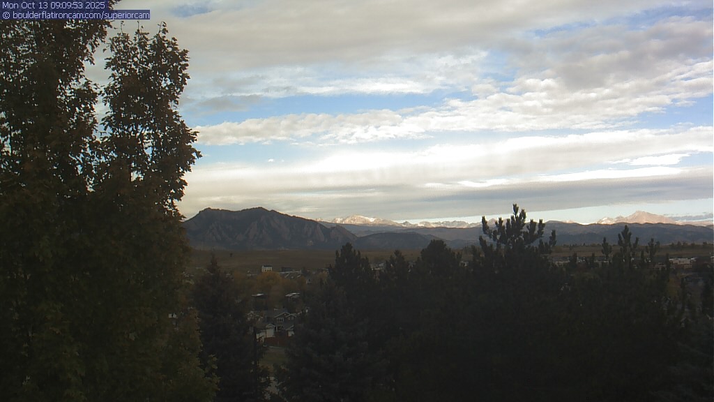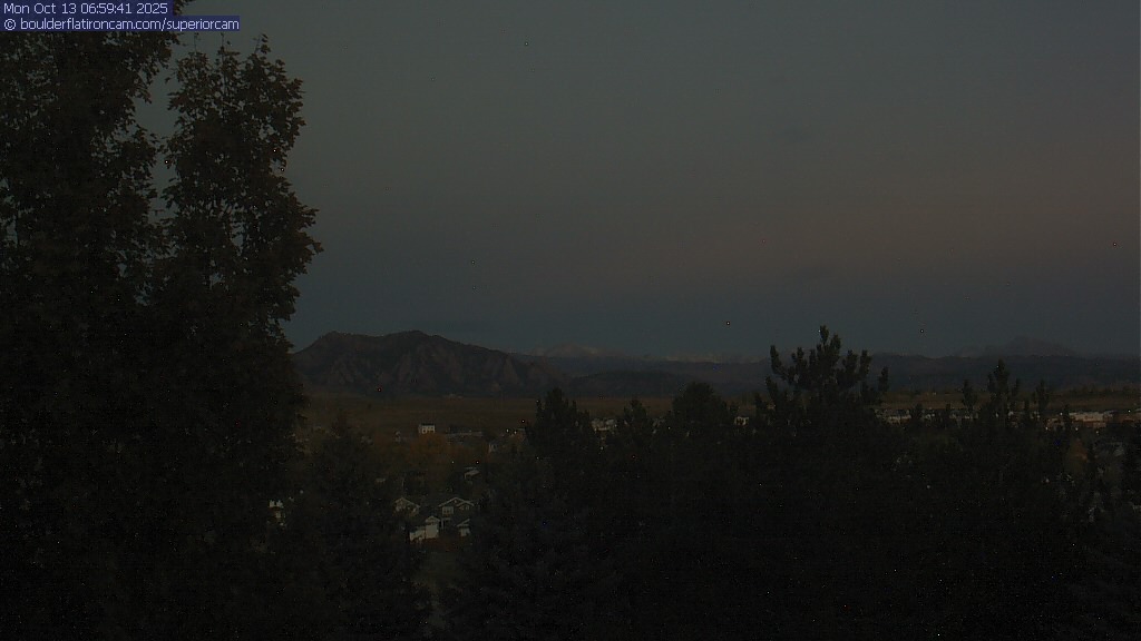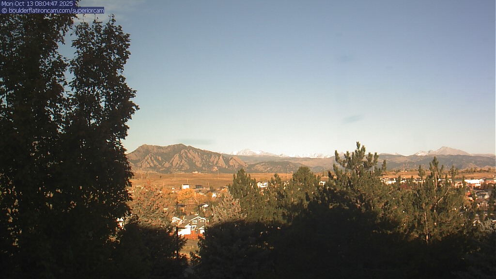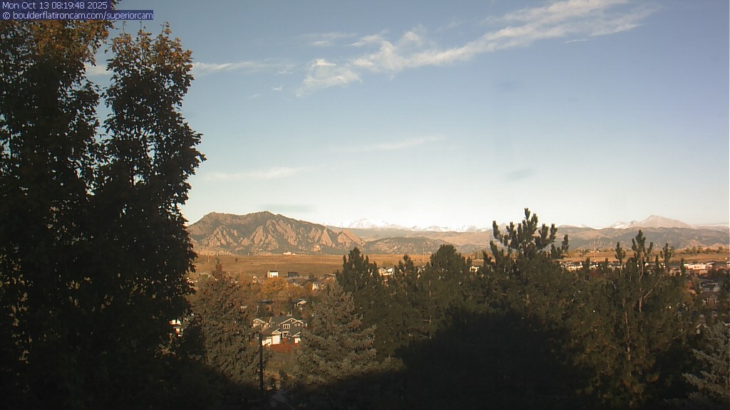 The Superior cam has a great view to the northwest over Boulder, the Flatirons, Indian Peaks and Long’s Peak.   The Coal Creek trail is visible in the foreground with old town Superior.  Thanks to Aweida Venture Partners management for the great view.