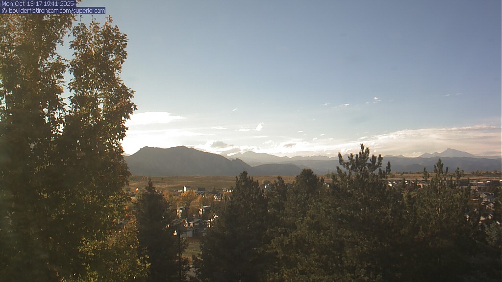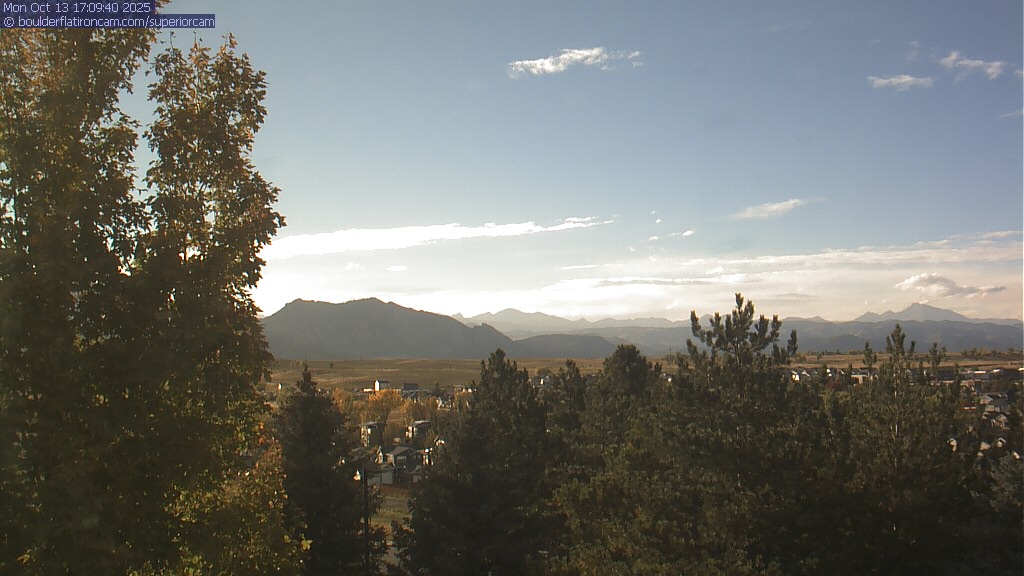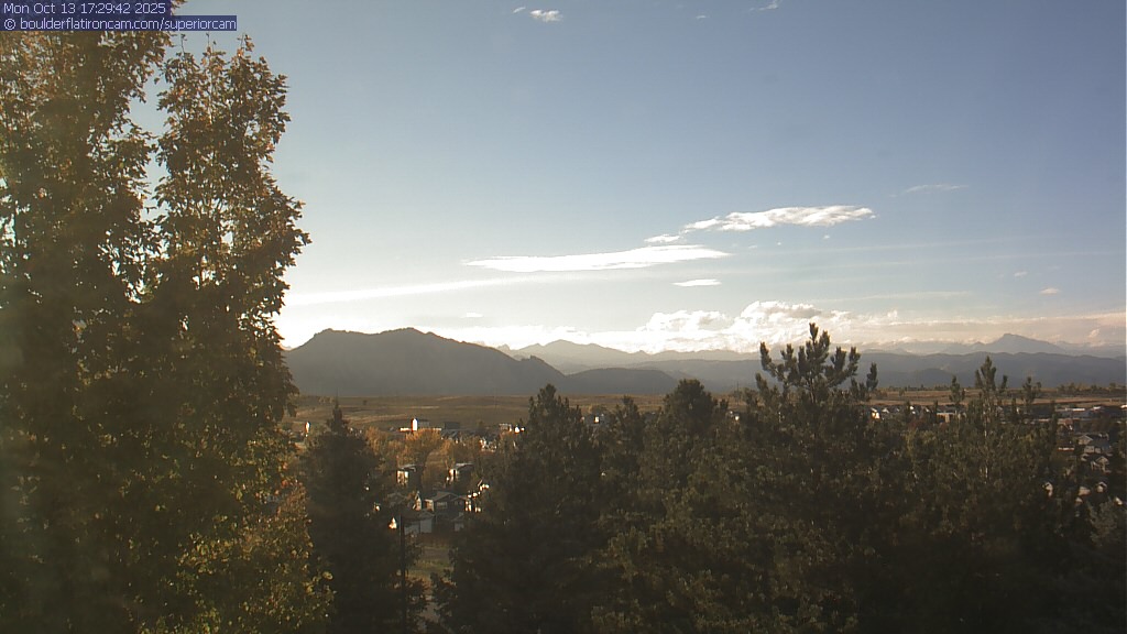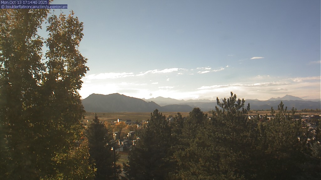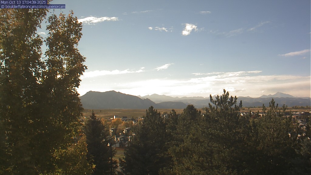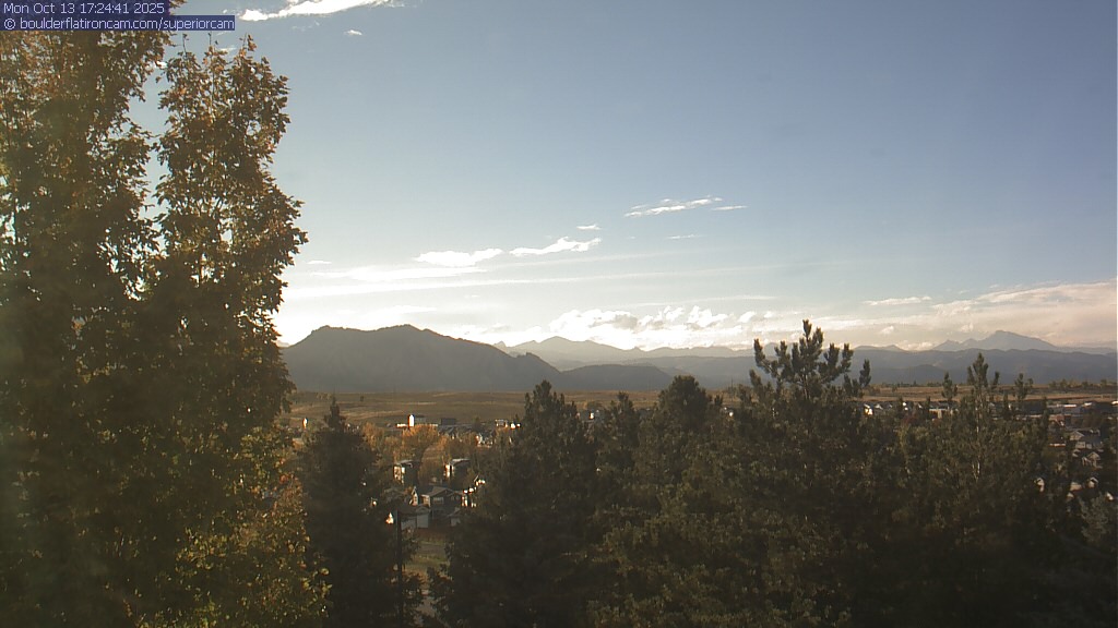 The Superior cam has a great view to the northwest over Boulder, the Flatirons, Indian Peaks and Long’s Peak.   The Coal Creek trail is visible in the foreground with old town Superior.  Thanks to Aweida Venture Partners management for the great view.