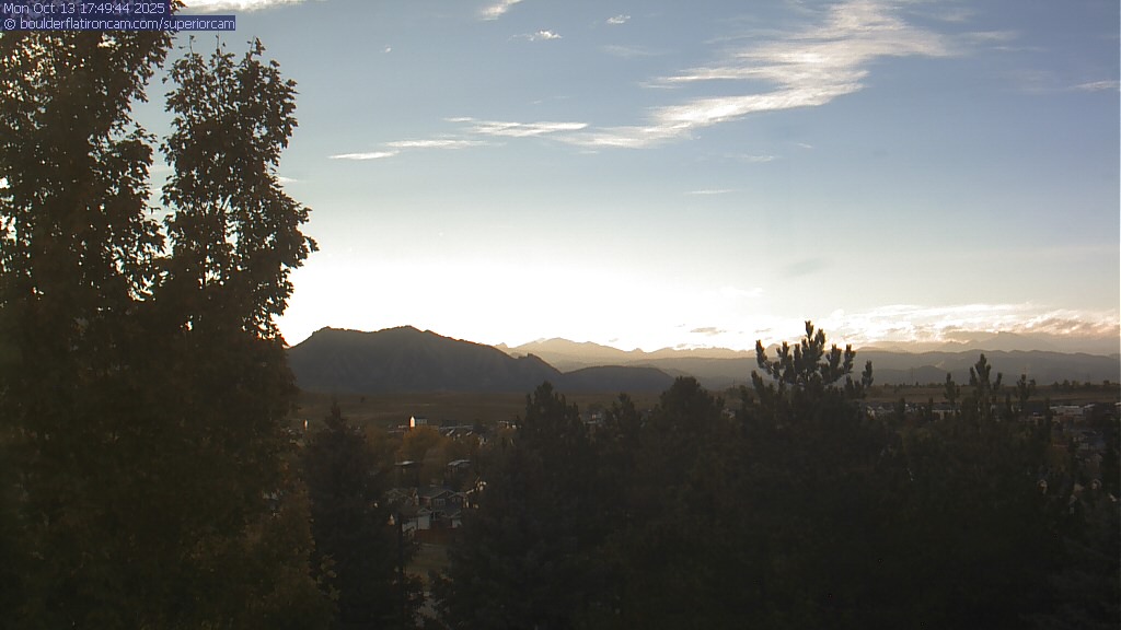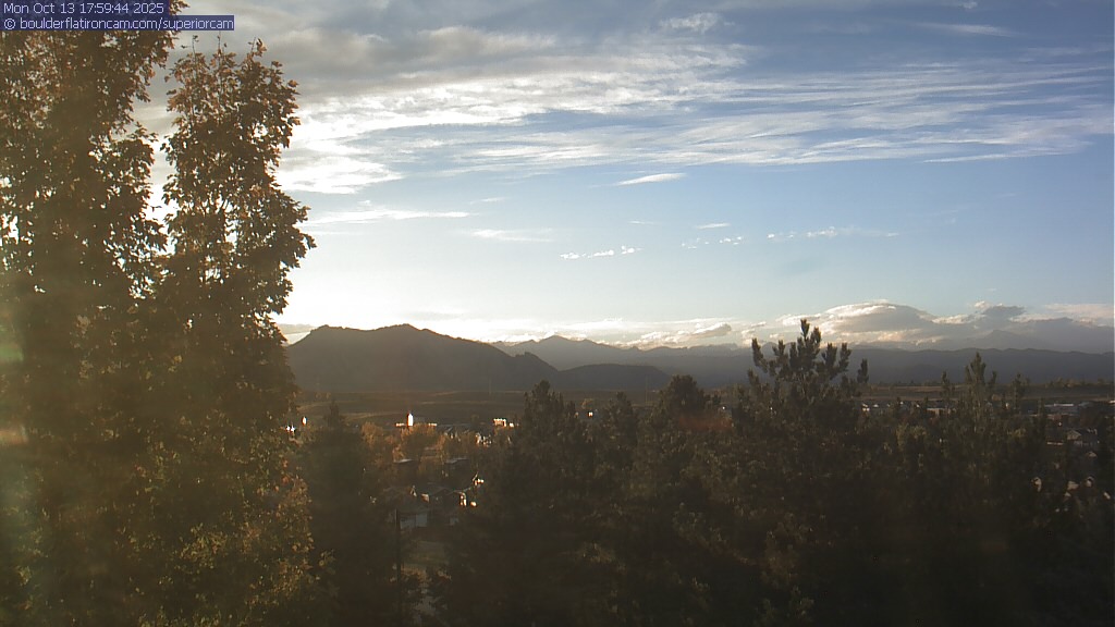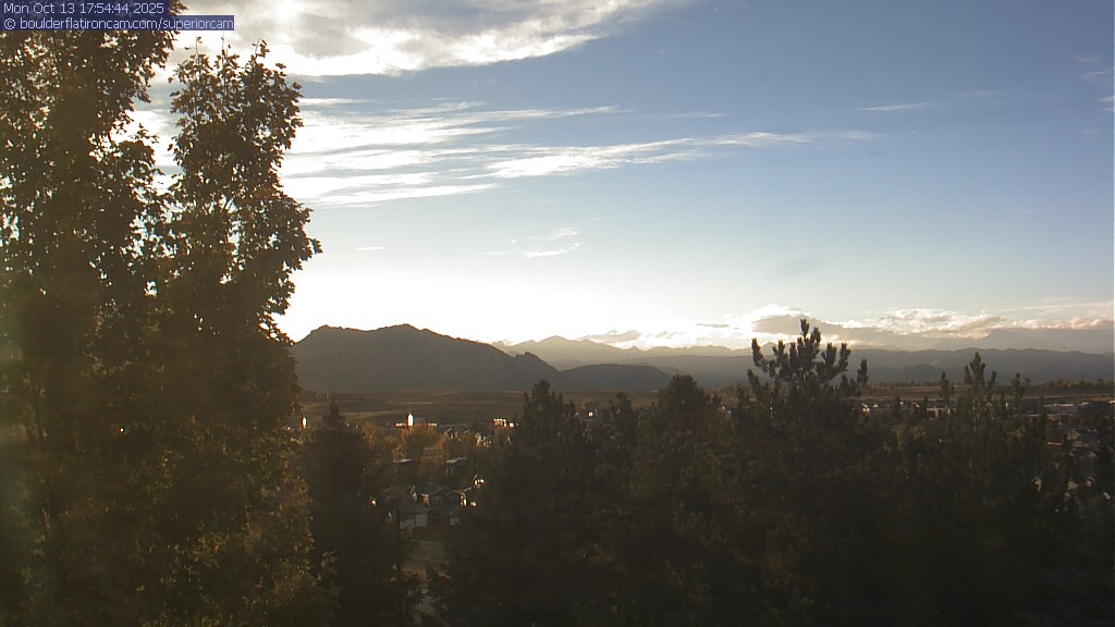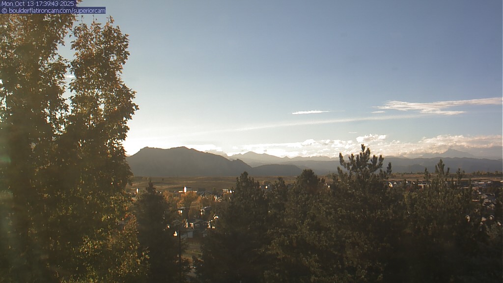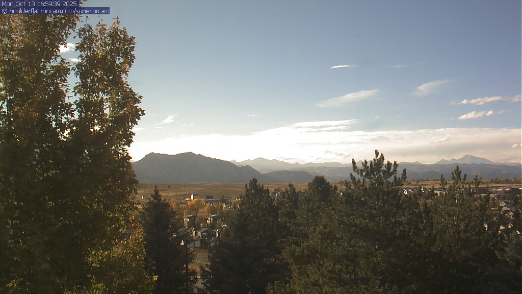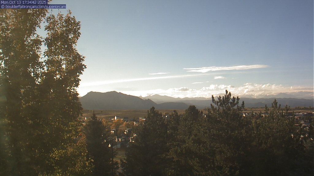 The Superior cam has a great view to the northwest over Boulder, the Flatirons, Indian Peaks and Long’s Peak.   The Coal Creek trail is visible in the foreground with old town Superior.  Thanks to Aweida Venture Partners management for the great view.